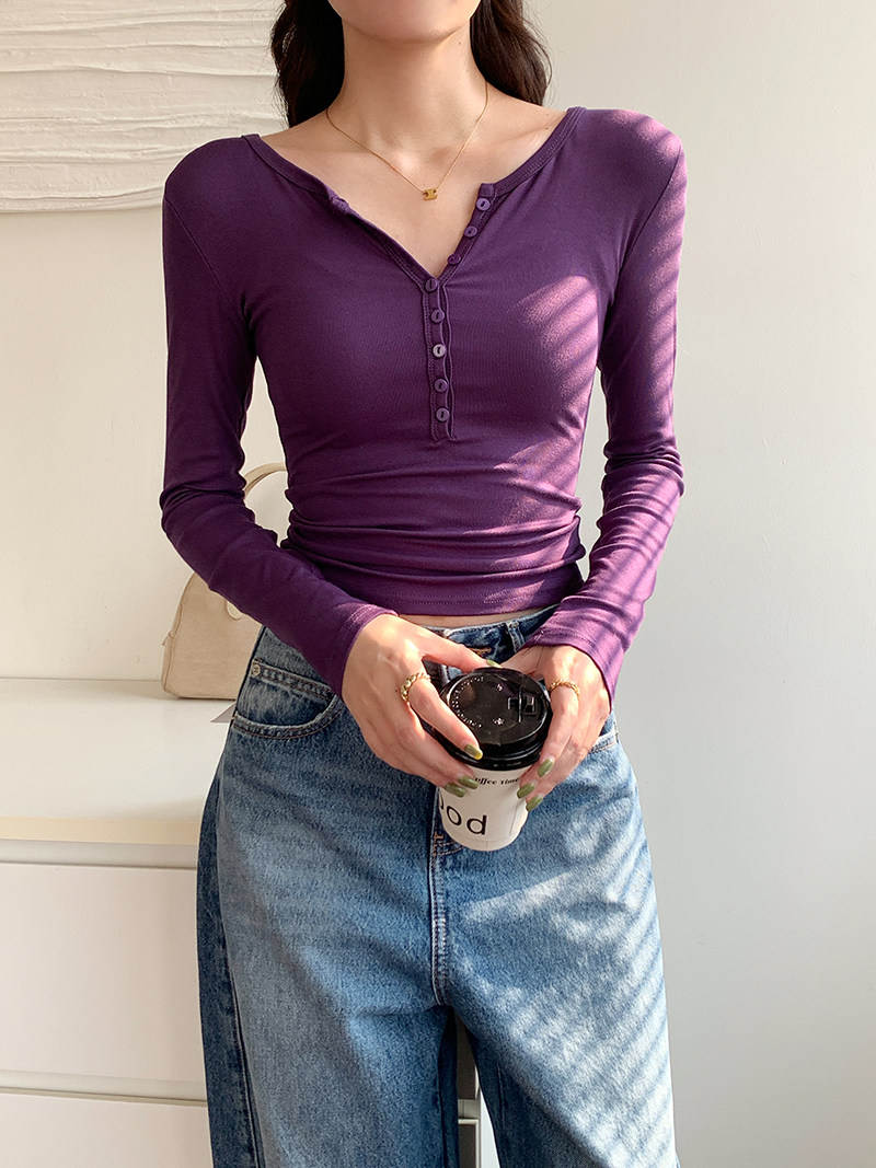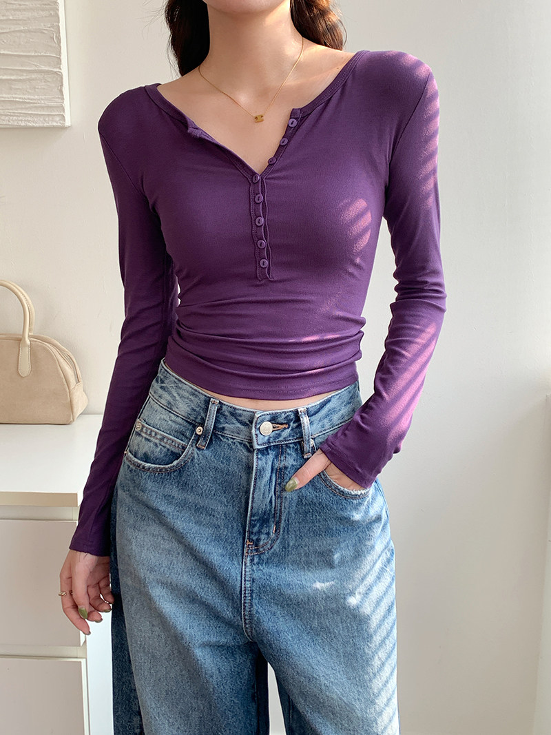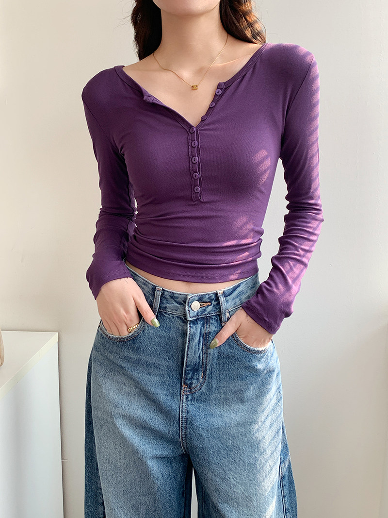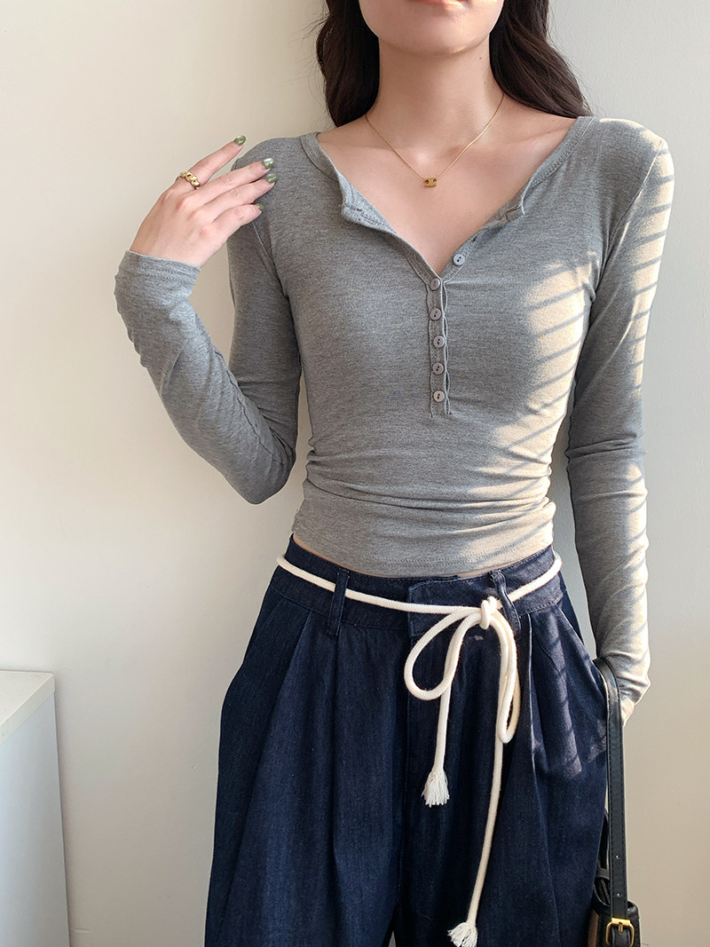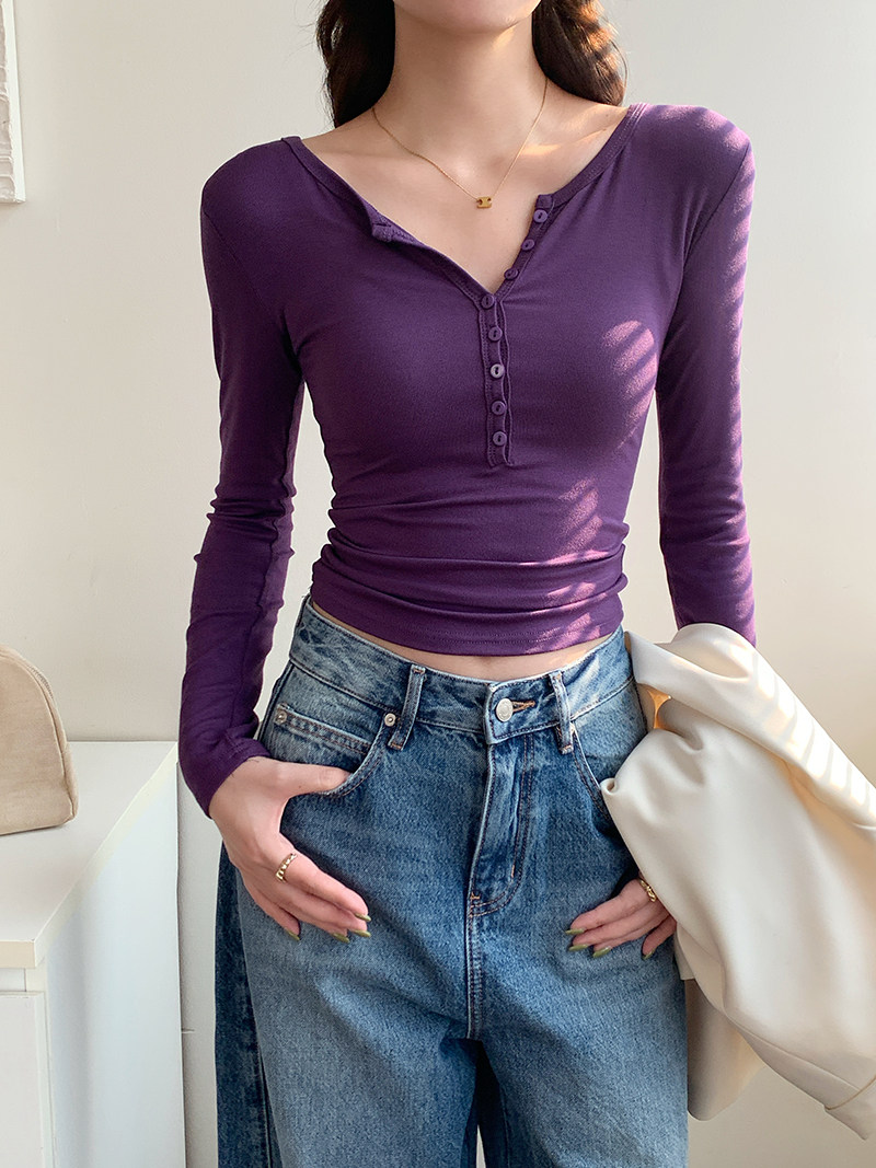Tight-Fitting, Slimming Base Shirt in a Hot Girl Style, Autumn and Winter American Retro Style, Unique Shoulder Design, Slim Fit, Long-Sleeved Top for Layering