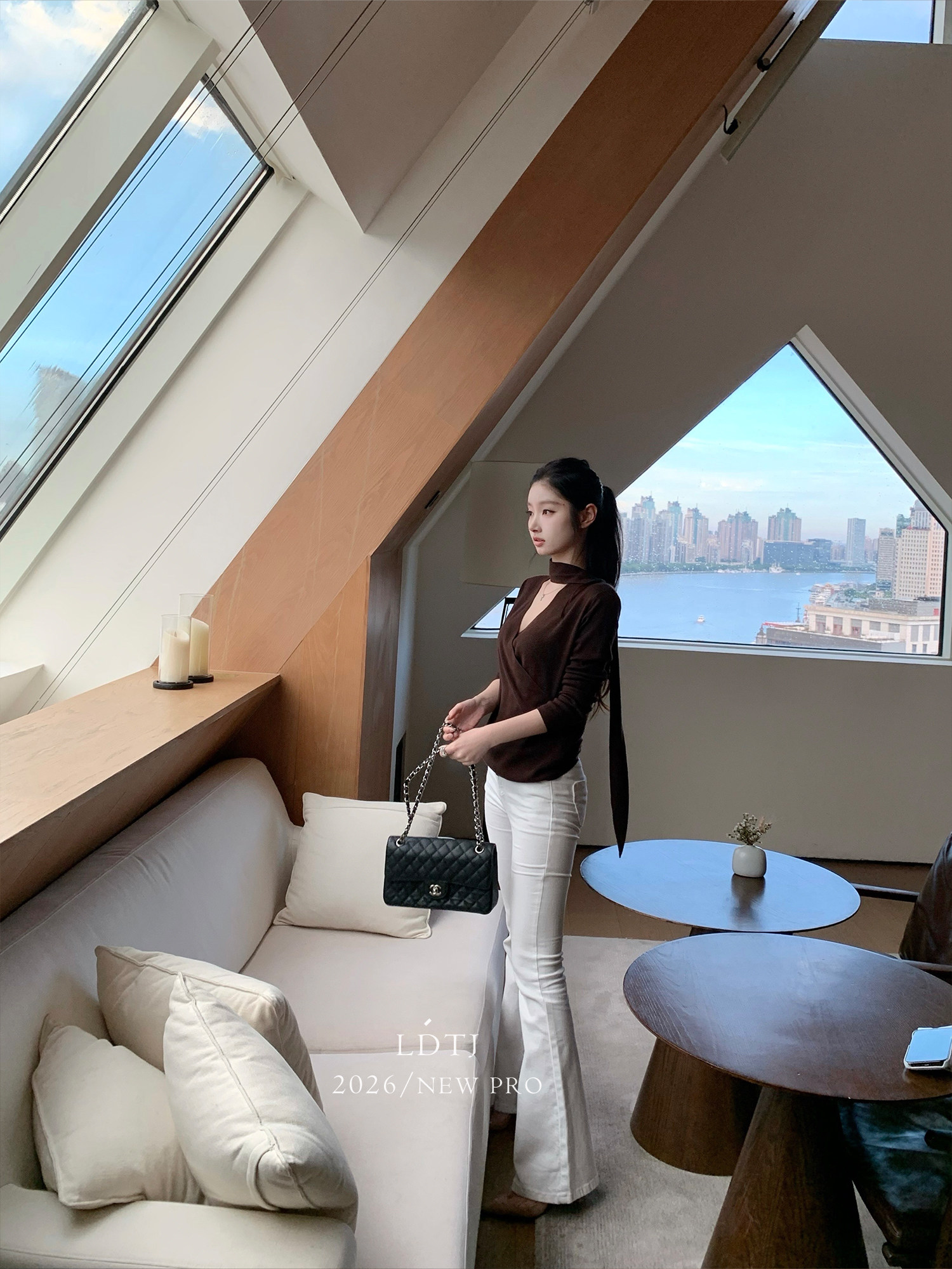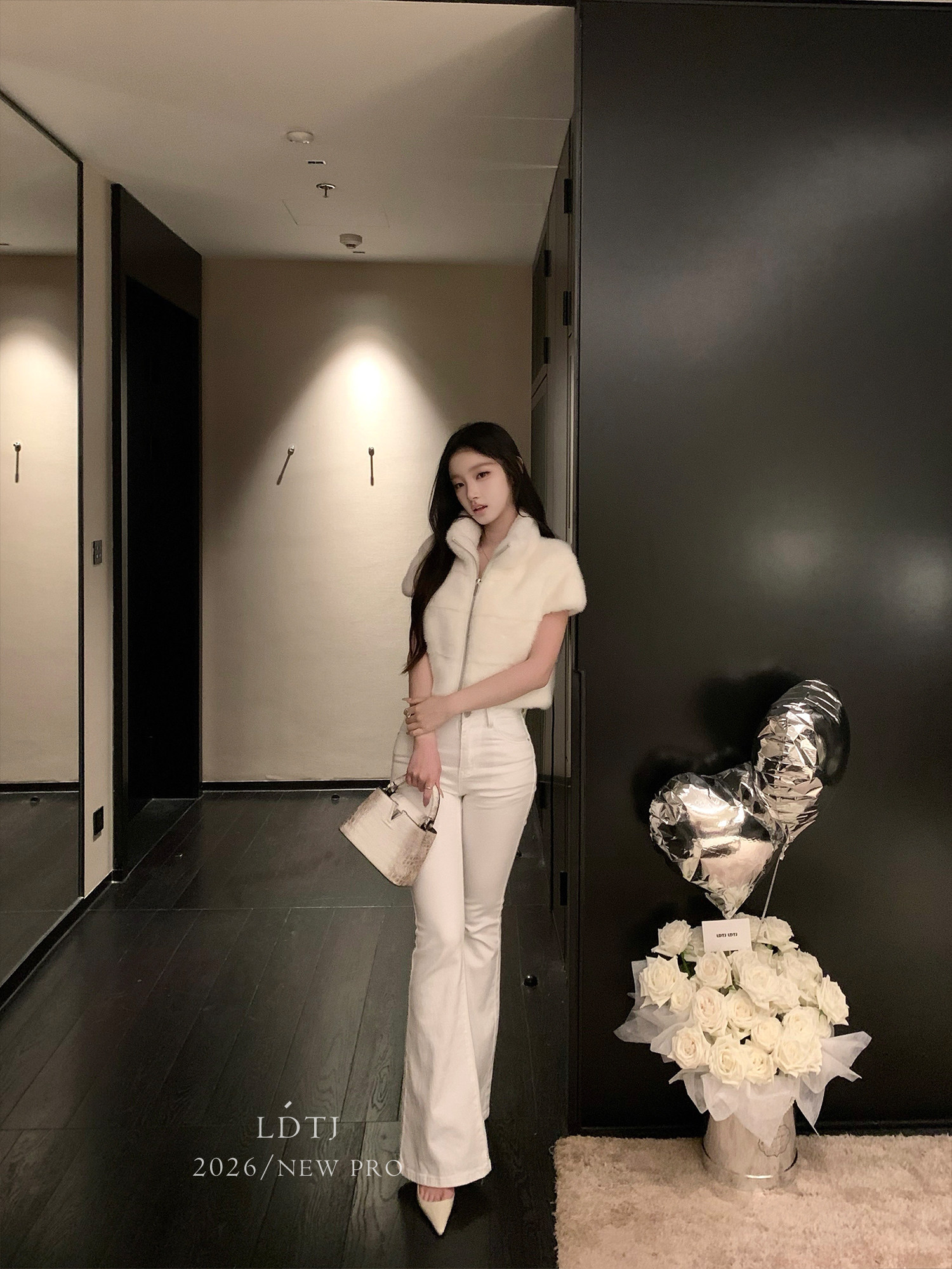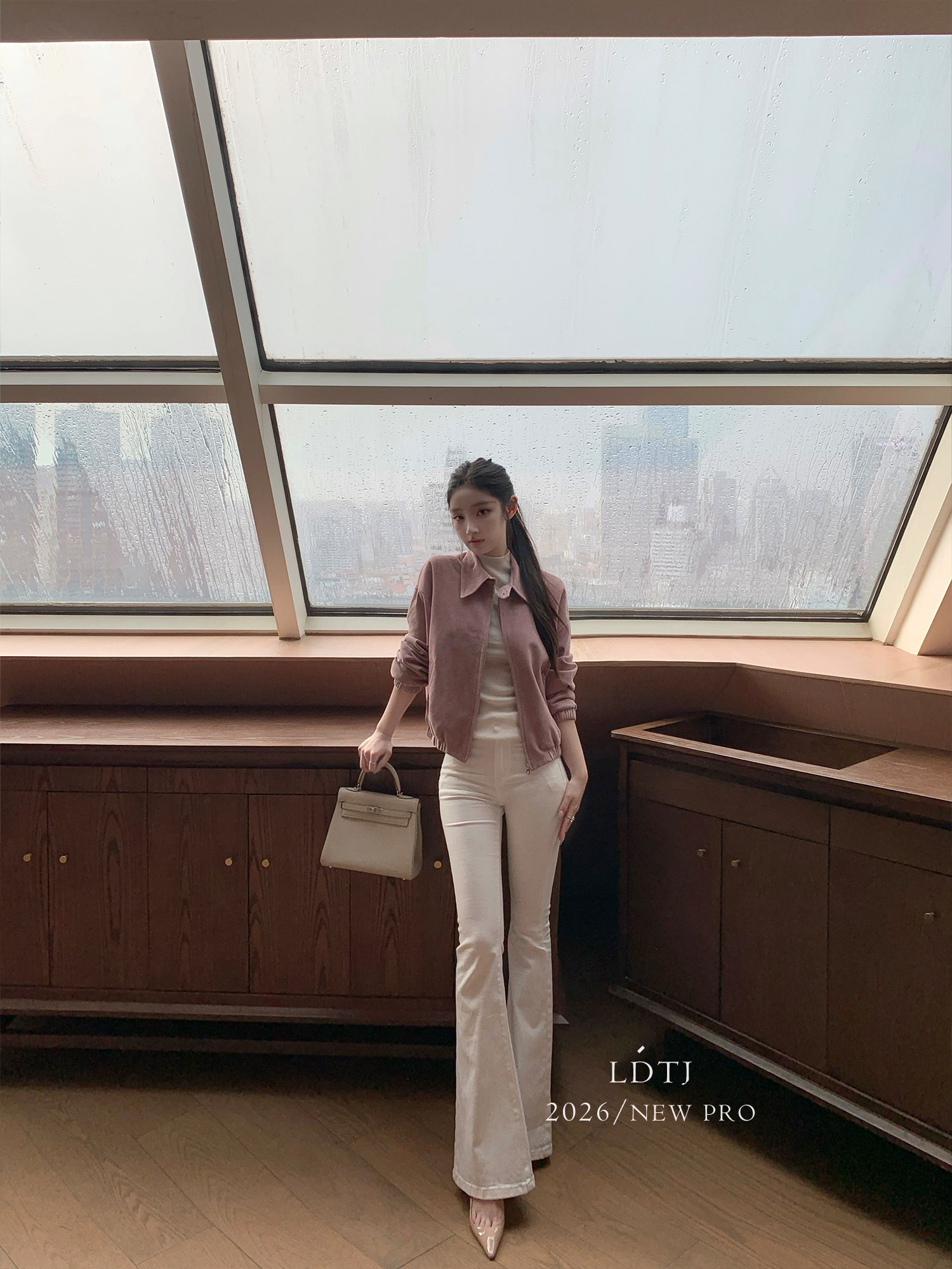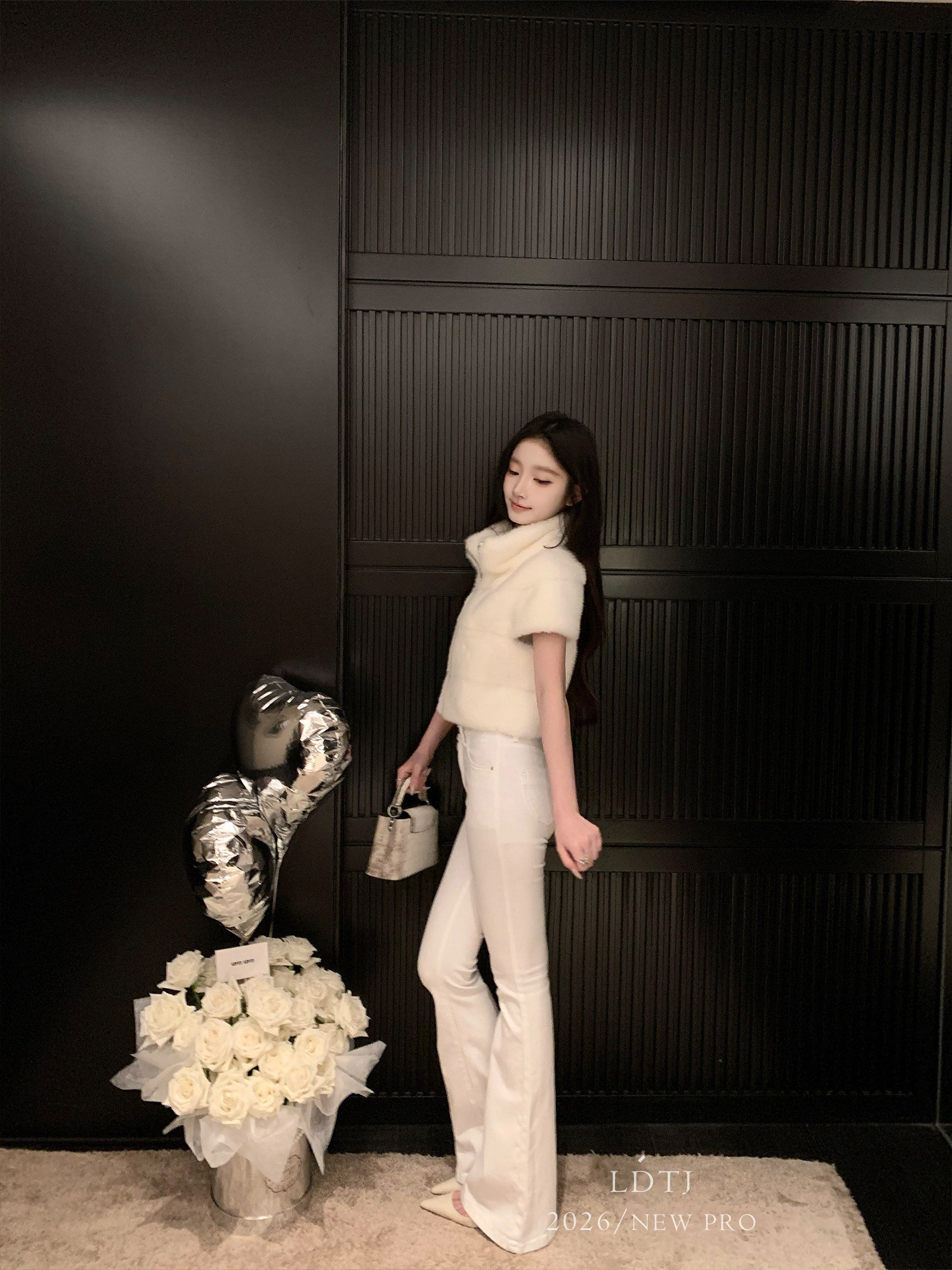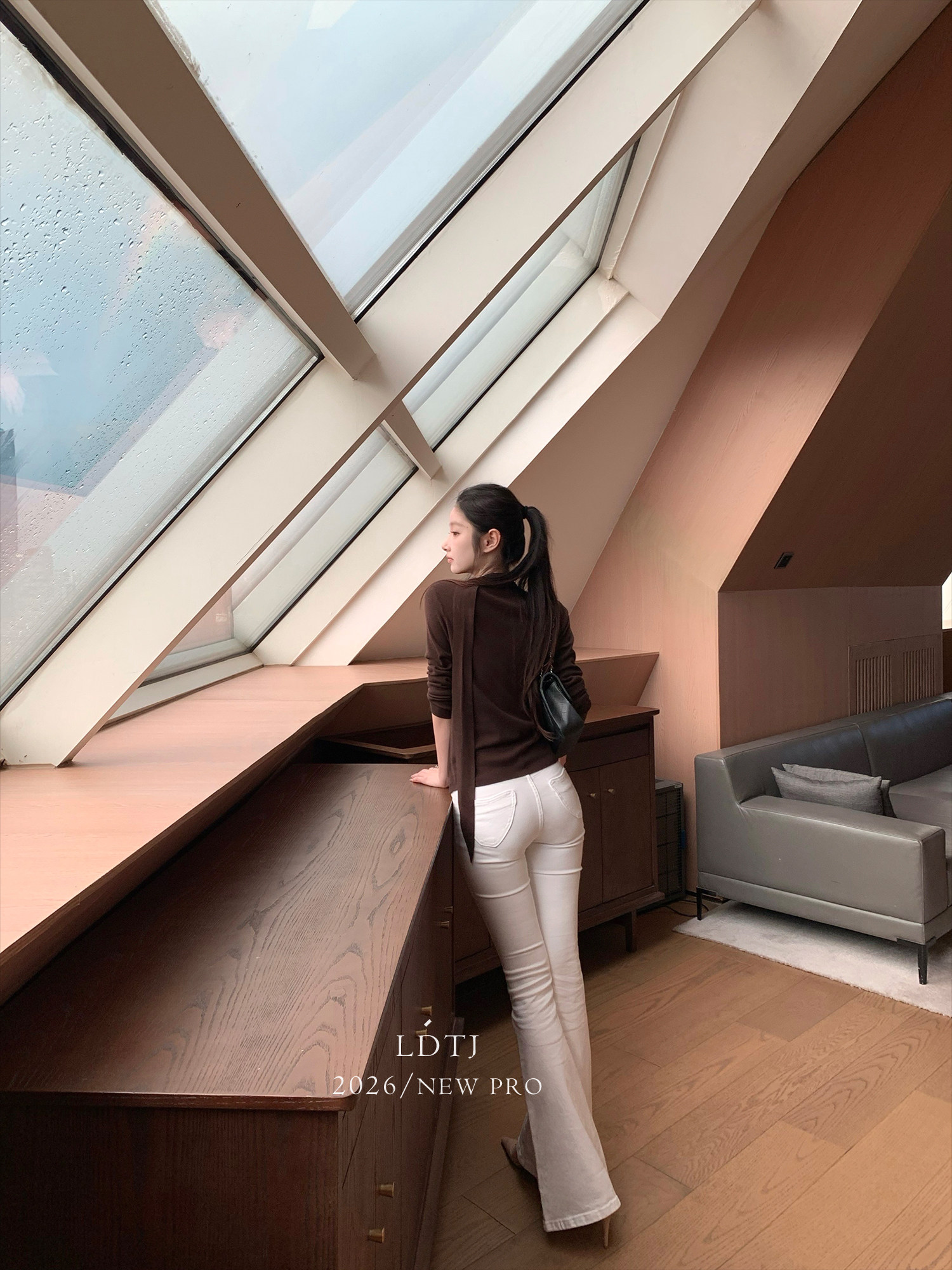 Ldtj High-End Autumn and Winter New Pure Cotton Korean Style Versatile High-Waisted Slimming High-End White Flared Denim Pants for Women