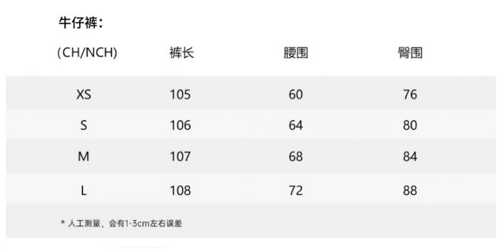 Outseam (cm) 99 cm 101.5 cm 104 cm 106.5 cm 109 cm