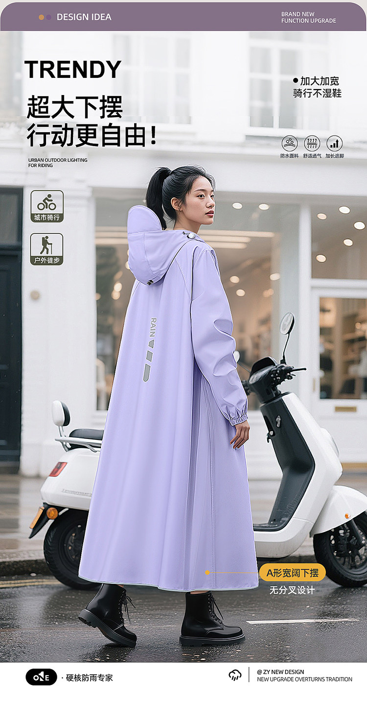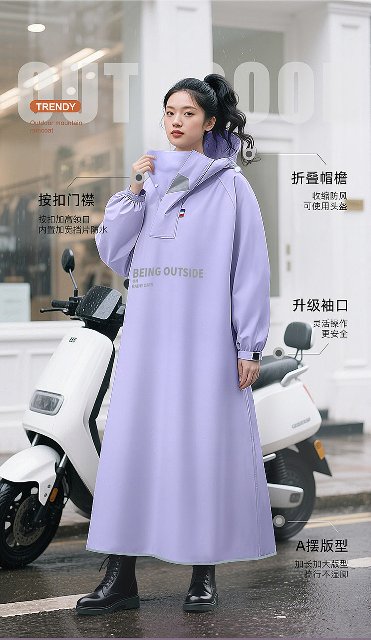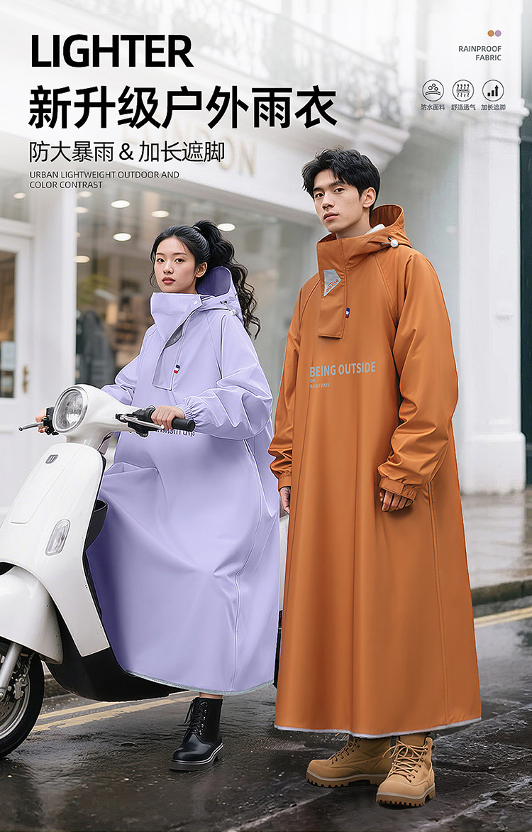 Electric Vehicle Raincoat, Single-Person, Long, Full-Body, Heavy Rain Protection, Unisex, Enlarged and Thickened, for Electric Scooters and Motorcycles
