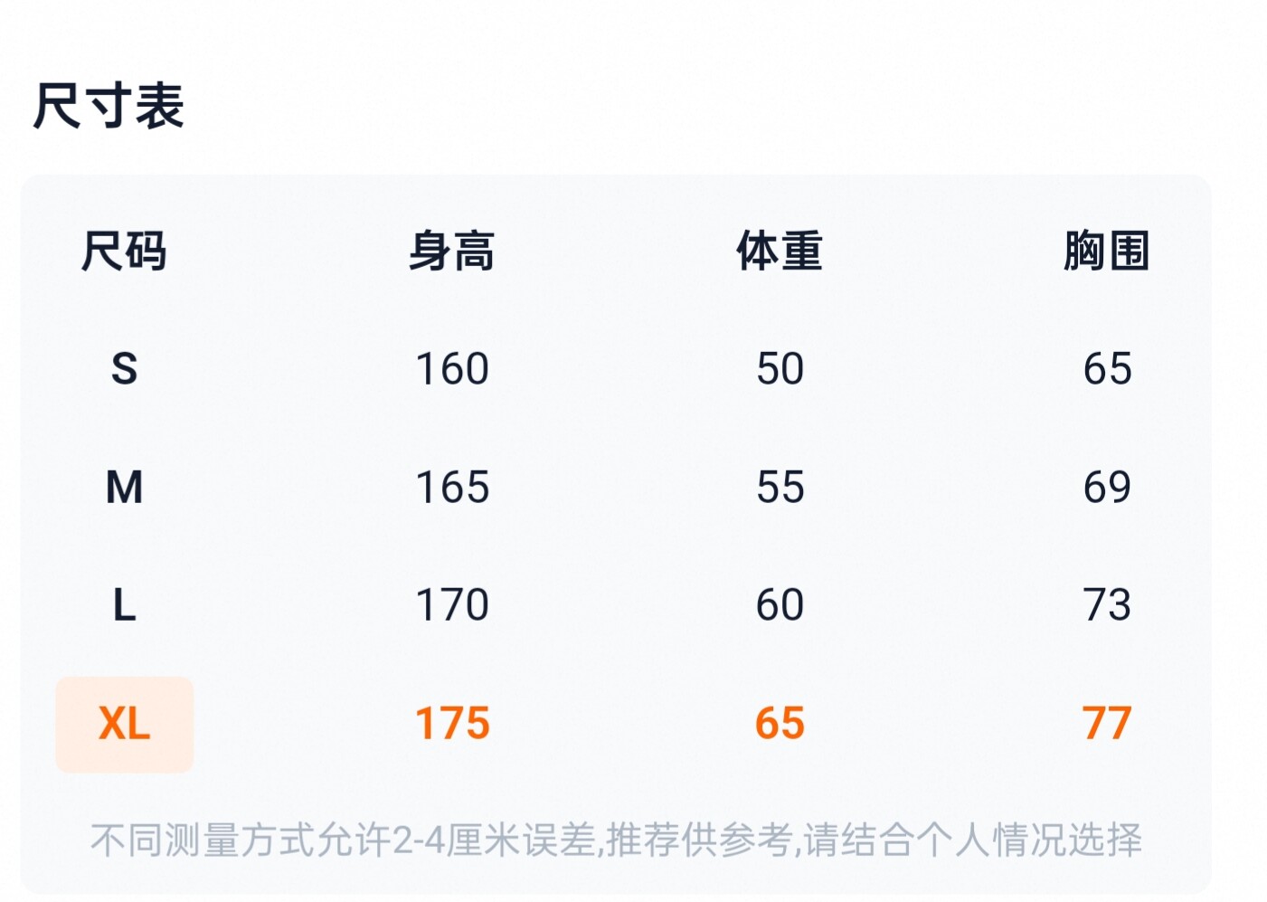China (cm) 160-165/84-86 165-170 / 88-90 167-172 / 92-96 168-173 / 98-102 170-176 / 106-110