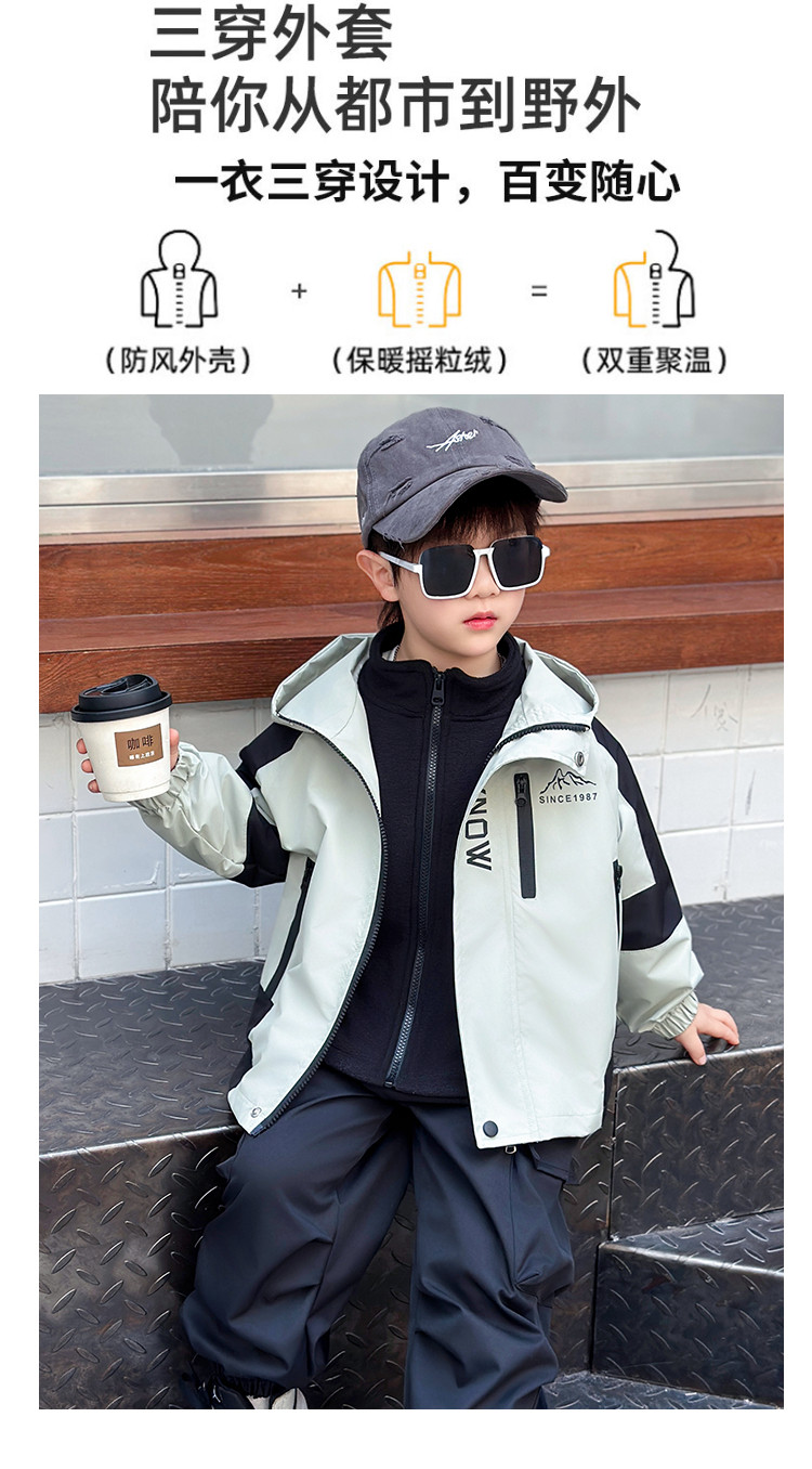 Boys' Autumn and Winter Style Padded Thickened Three-In-One Jacket 2025 New Winter Stylish Boys' Coat