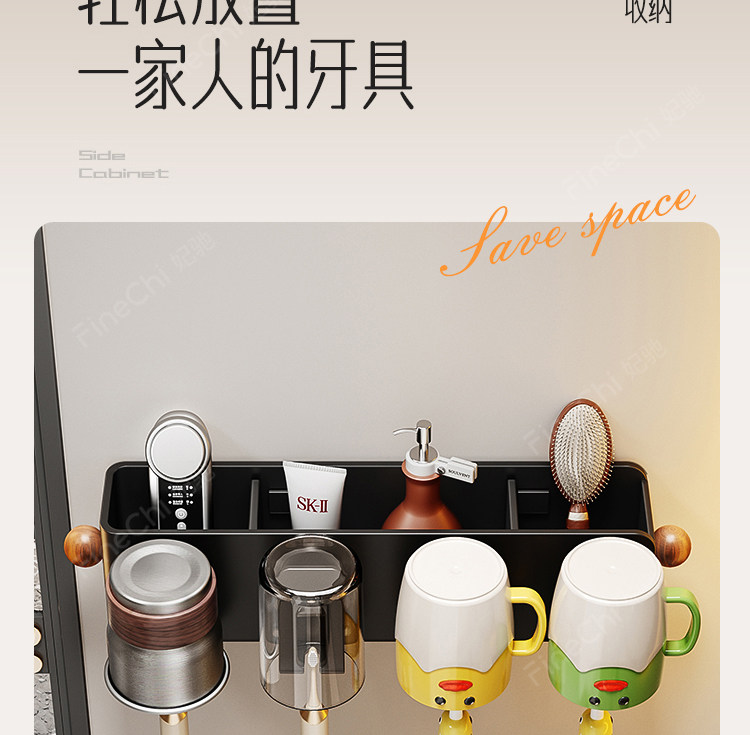 FINECHI medieval style toothbrush storage rack wall-mounted punch-free mouthwash cup bathroom tooth cup storage rack