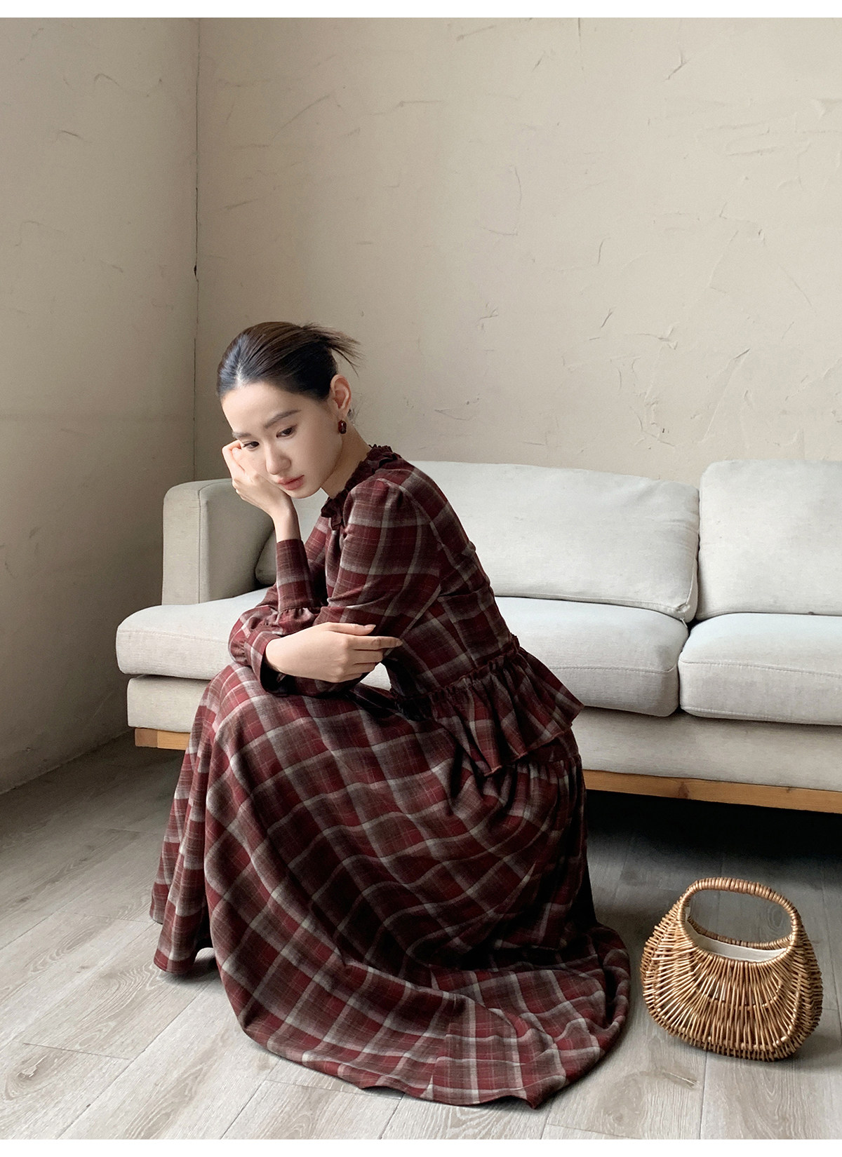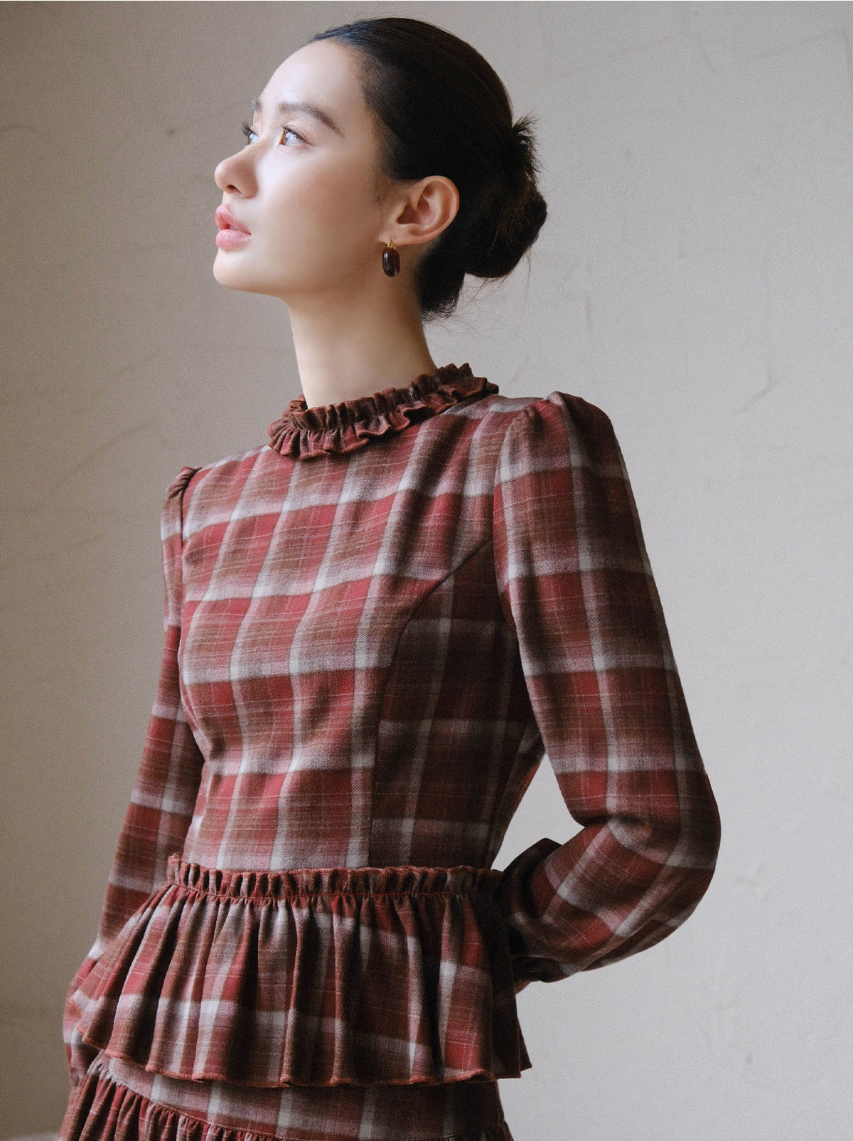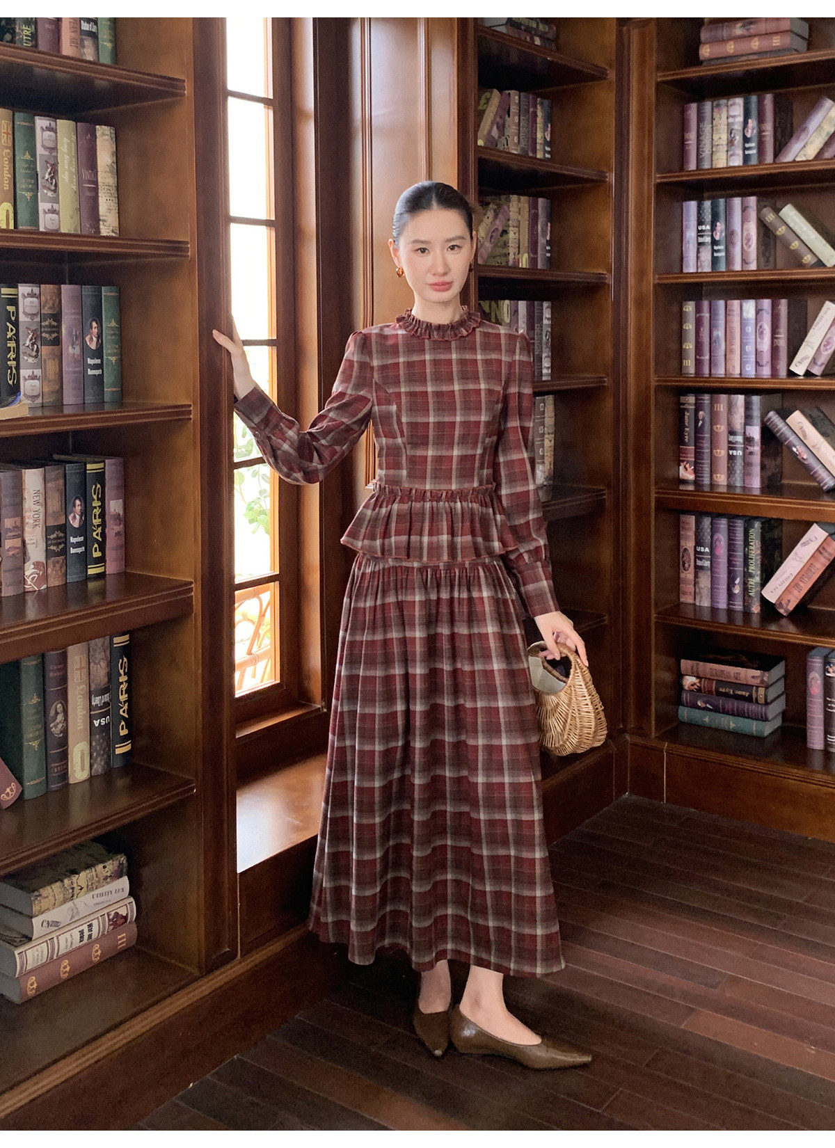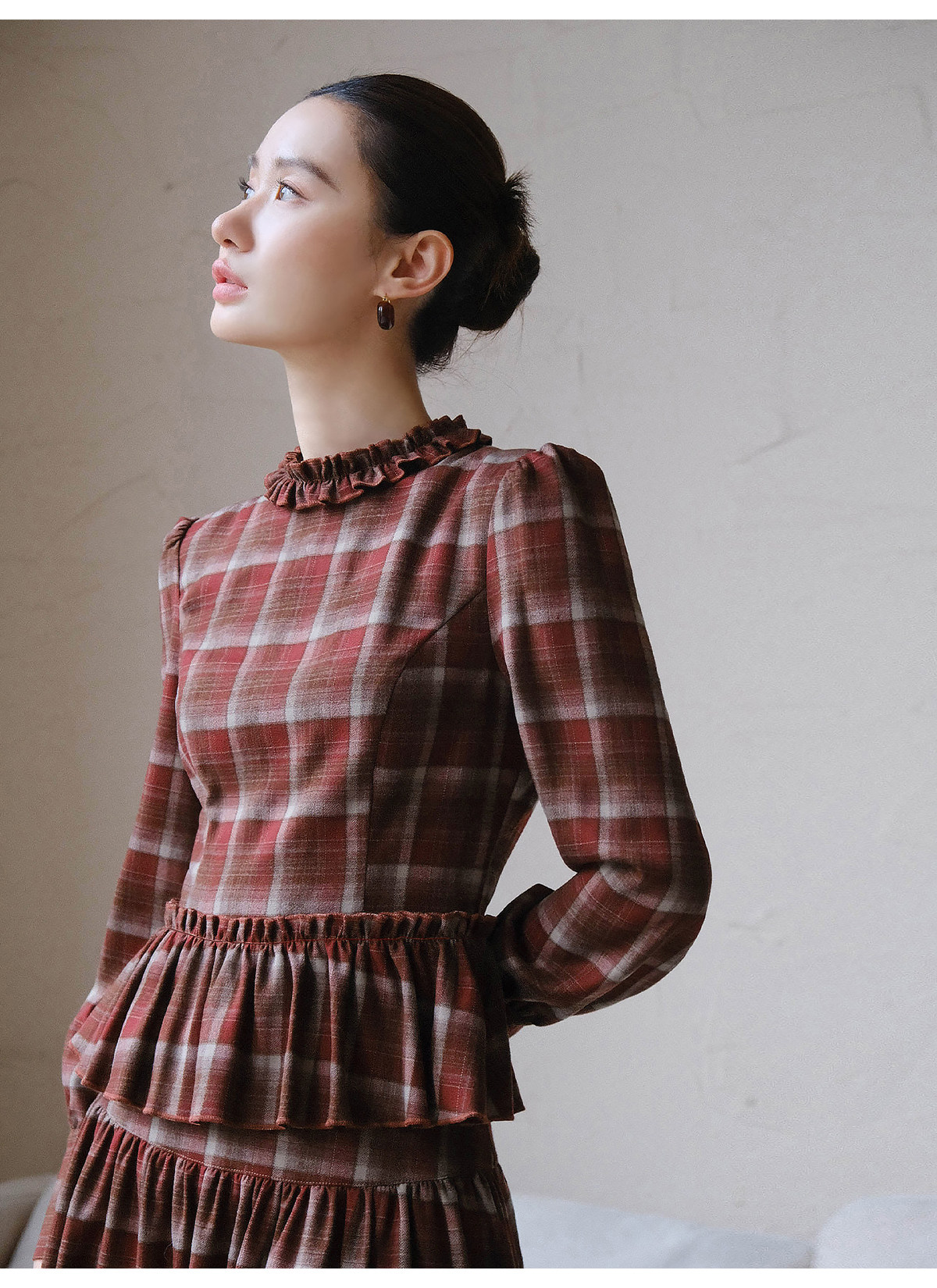 Sort by color Coffee red plaid-tops,Coffee red grid-skirt,Coffee red grid-suit
