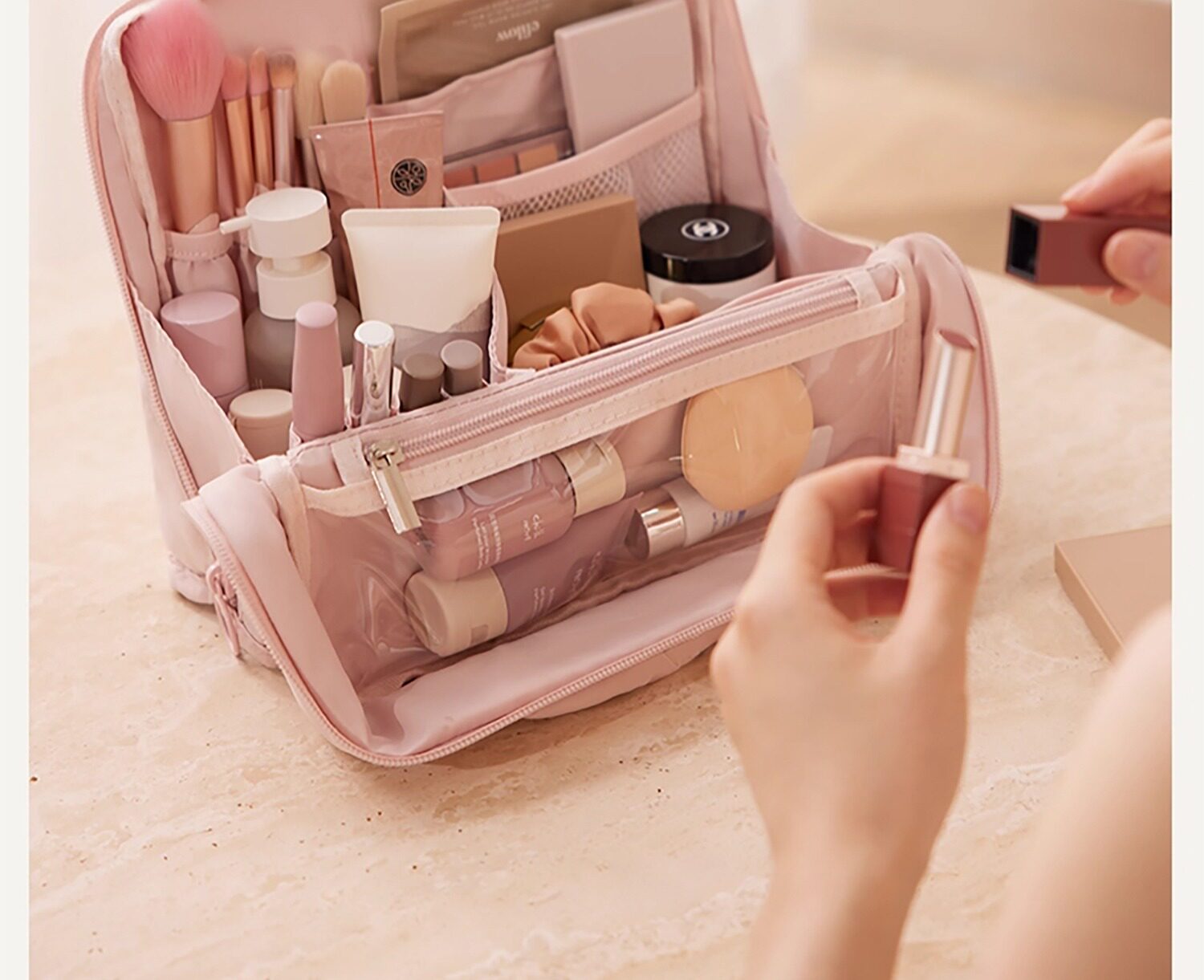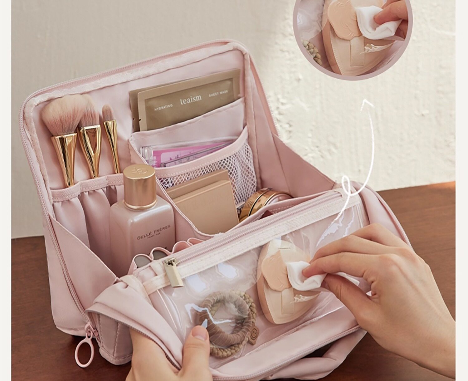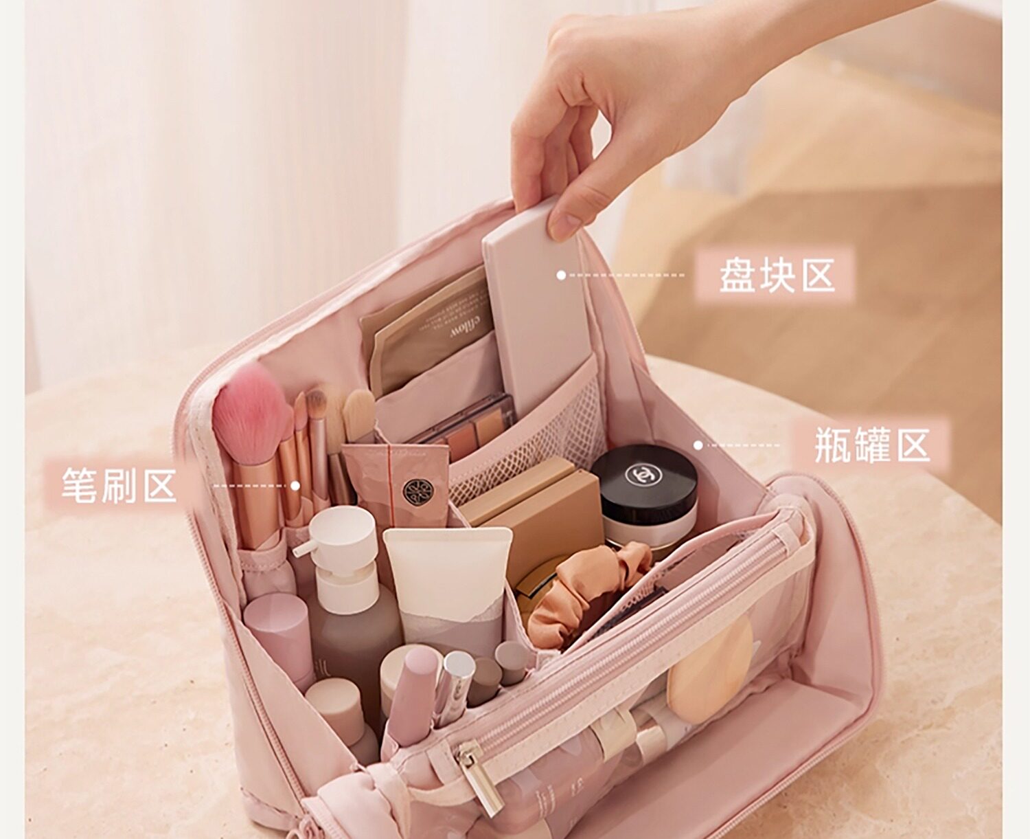 Standing cosmetic bag large capacity toiletry bag women's cosmetics dressing table multi-functional skin care product partition storage bag