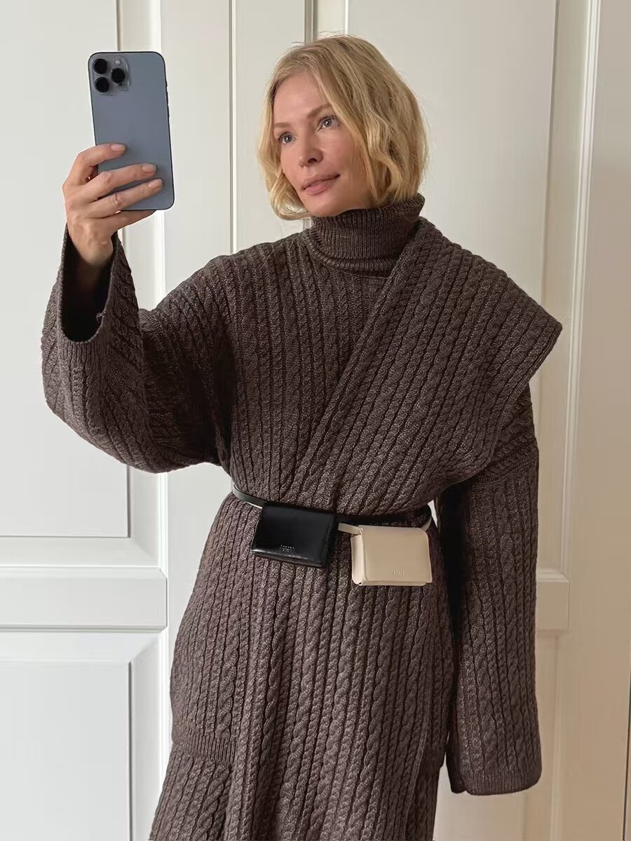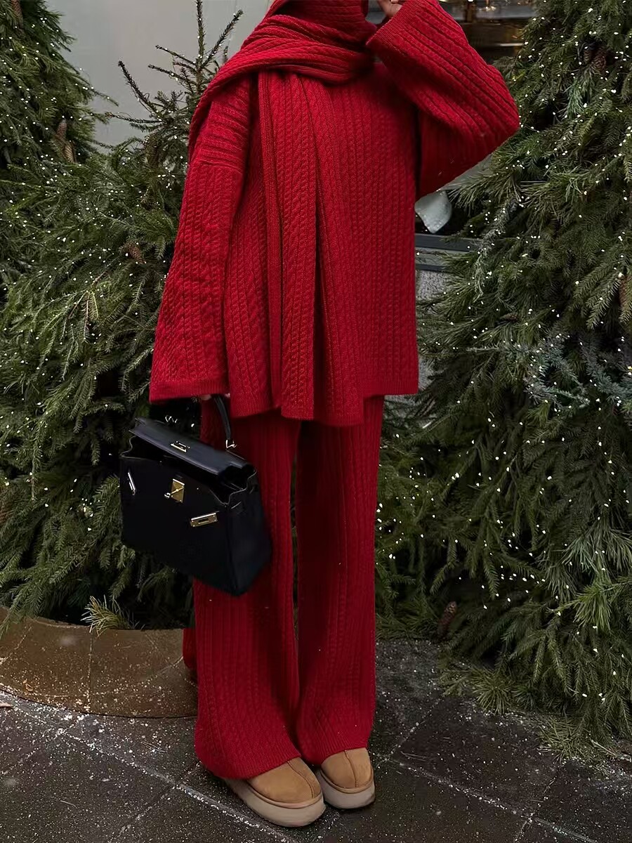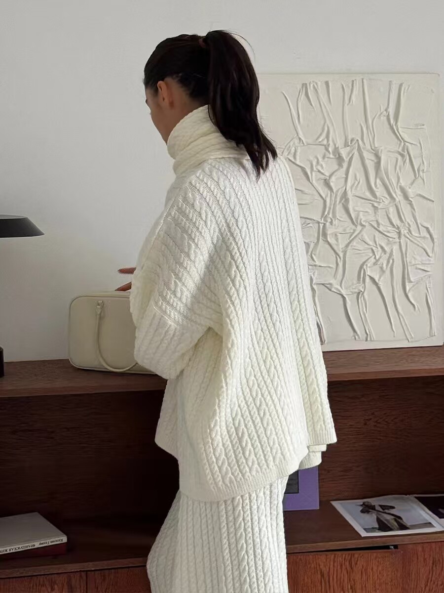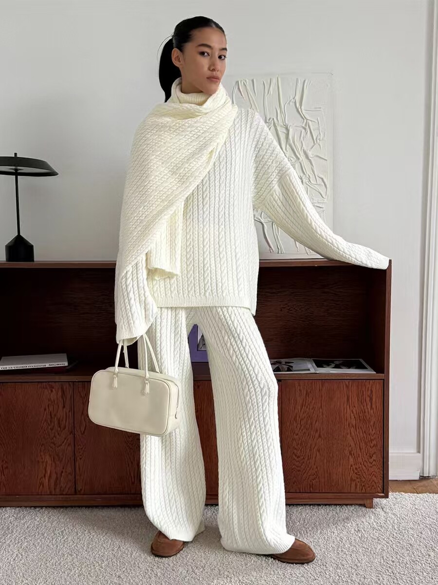European and American New Fashion Casual Loose Knit Sweater + Wide-Leg Pants Set