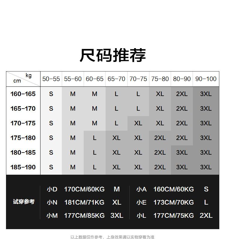 China (cm) 165 / 88-90 170 / 96-98 175 / 108-110 180 / 118-122 185 / 126-130