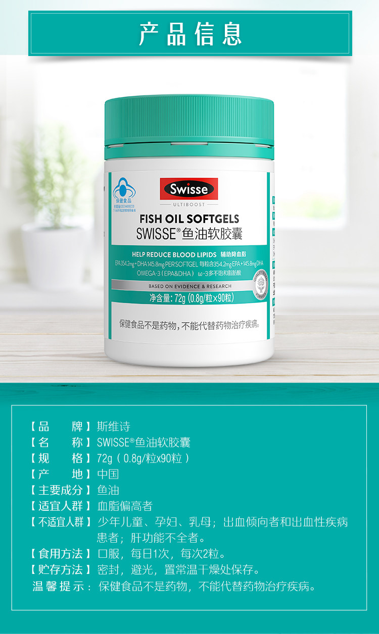 Swisse Fish Oil Soft Capsules Deep Sea Omega3Epadha Official Authentic Product for Middle-Aged and Elderly Adults for Men and Women
