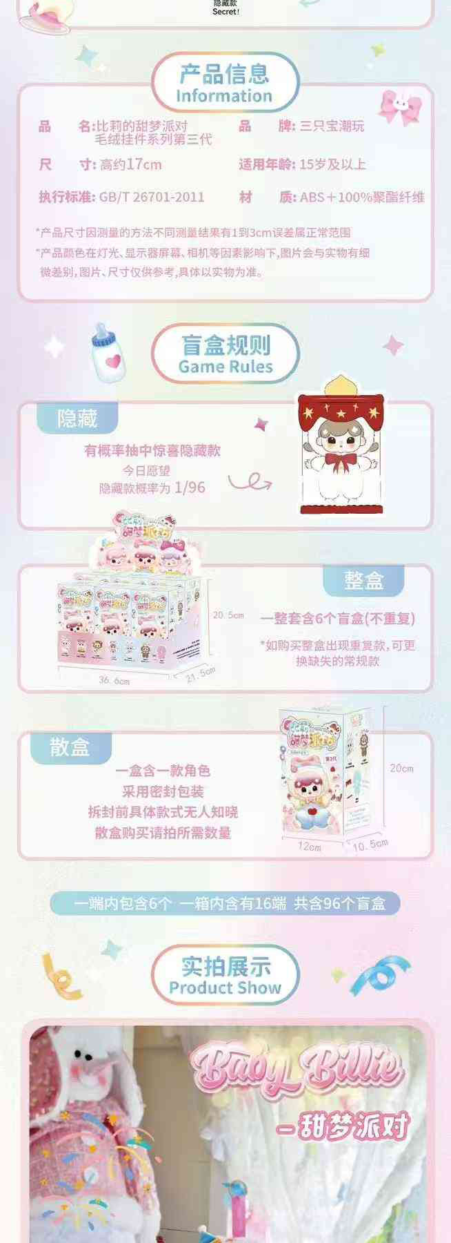 Baby Three Three-Year-Old Billy's Sweet Dream Party Vinyl Plush Pendant Blind Box Doll Girl Gift