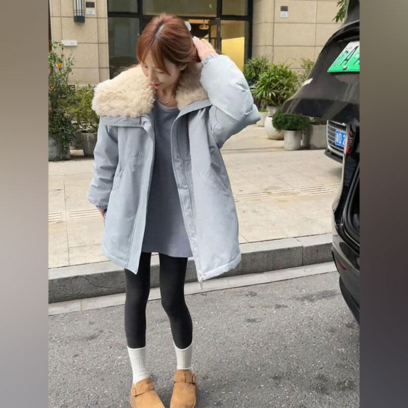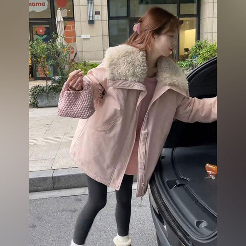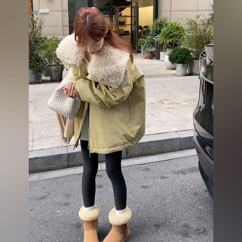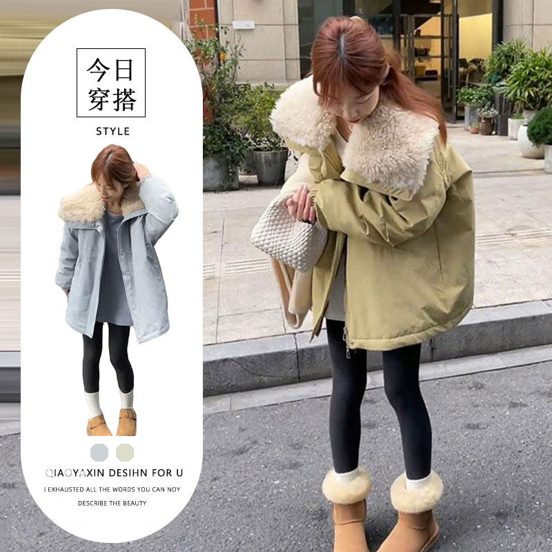 Retro Casual Versatile Patchwork Lamb Collar Parka 2026 Winter Thickeneded Warm Jacket Cotton Jacket