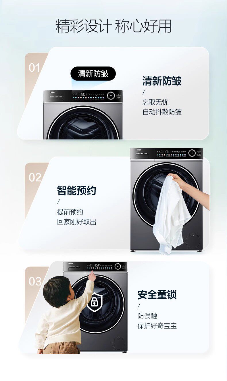 New Model Haier Washing Machine 12kg Large Capacity Household Drum-Type Fully Automatic Washing and Drying Integrated Flagship Store 659H