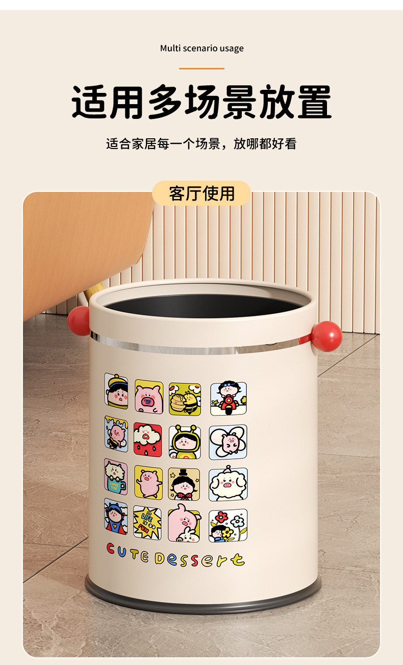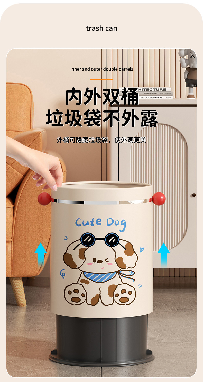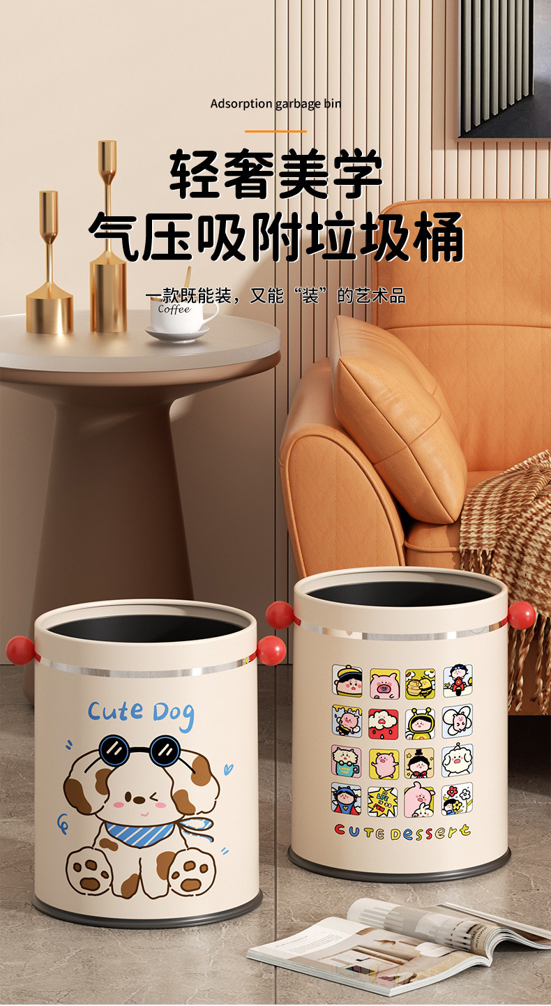 Cute high-looking trash can for household use 2025 new style kitchen living room toilet bathroom bedroom large size trash can