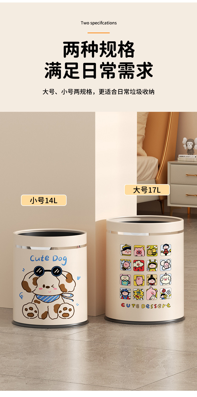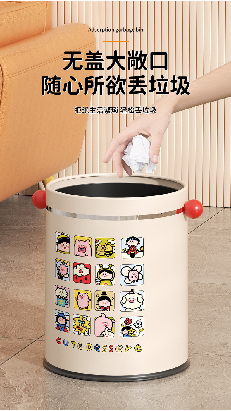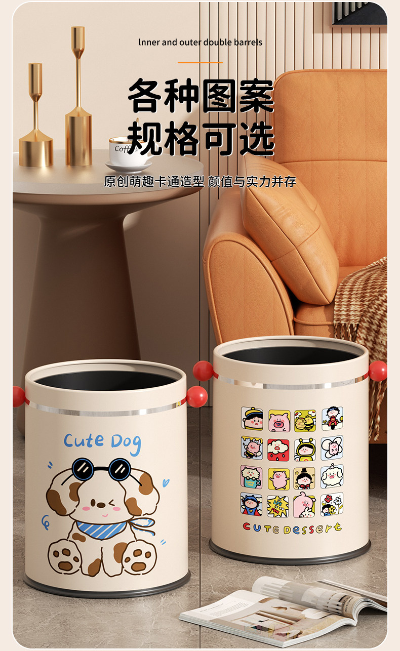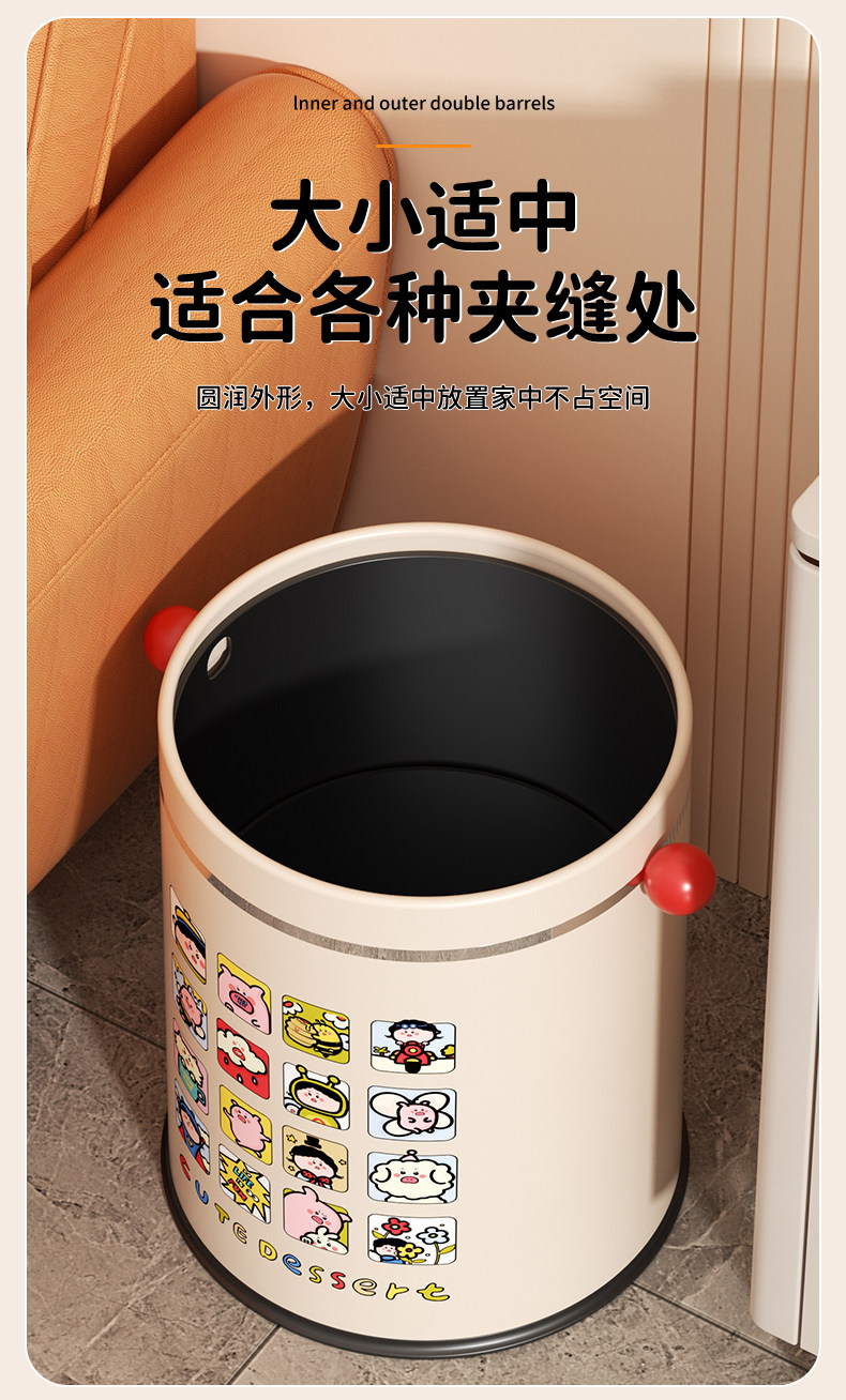 Cute high-looking trash can for household use 2025 new style kitchen living room toilet bathroom bedroom large size trash can