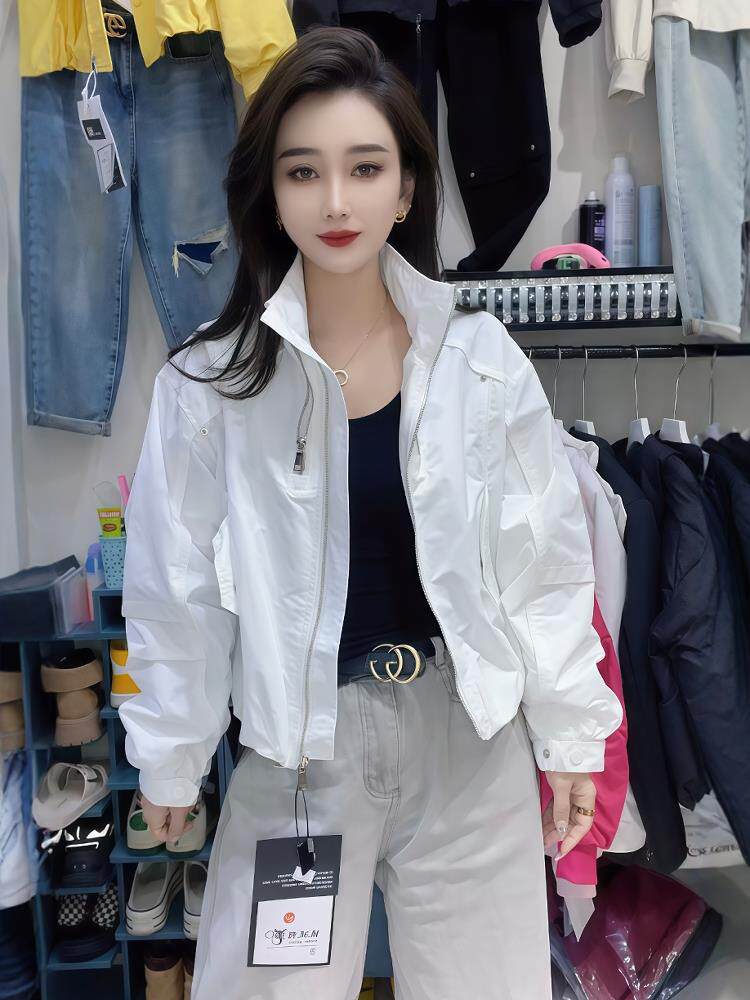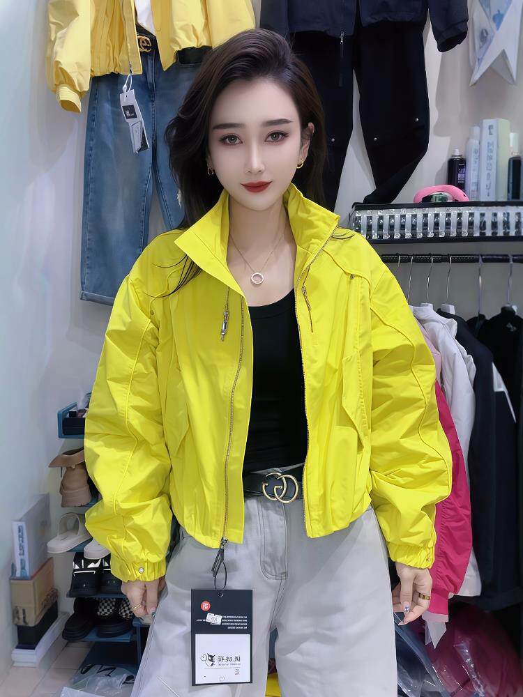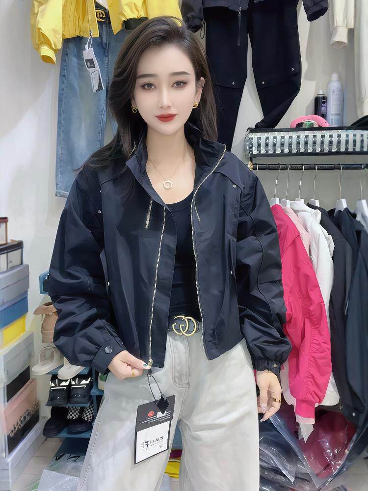 European goods 2025 spring and autumn new style stand-up collar zipper jacket short coat women's short jacket loose and versatile