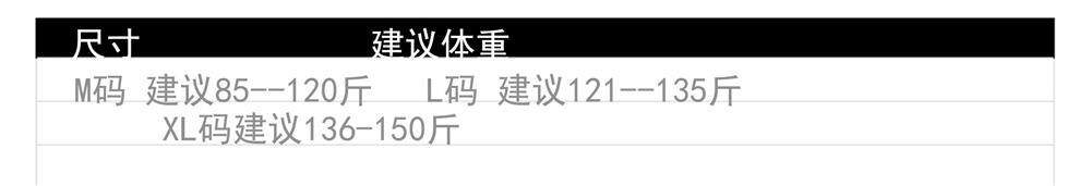 China (cm) 165 / 88-90 170 / 96-98 175 / 108-110 180 / 118-122 185 / 126-130