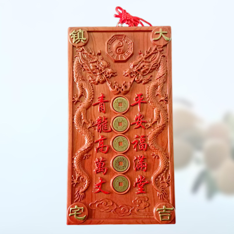 Cinnabar Peach Wood Qinglong Pendant, Five Emperors' Coins, Home Decoration for Living Room Entrance, Neighbor's House Is Higher Than Ours, Left Lower Than Right