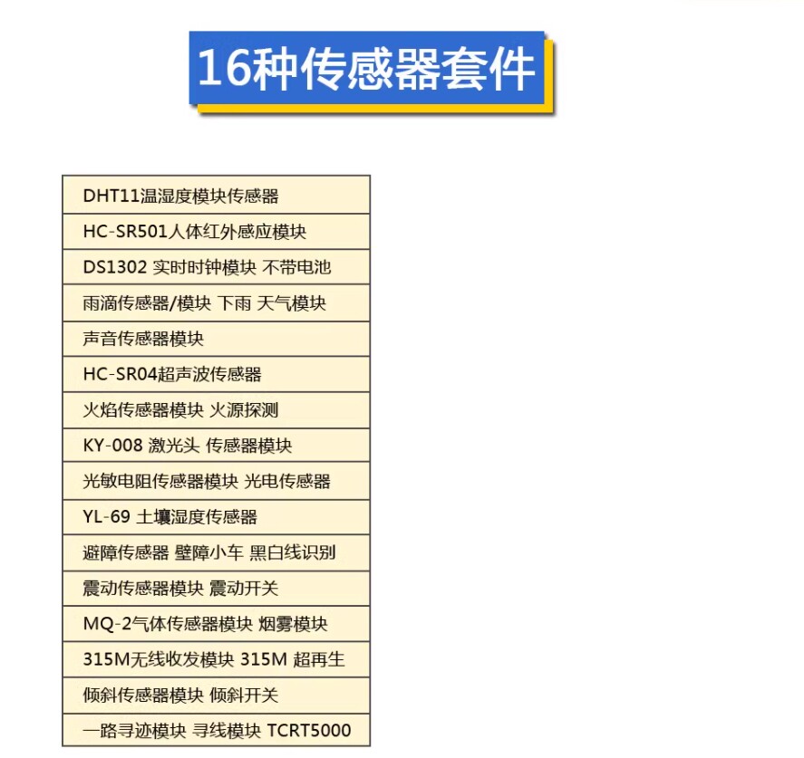 16-in-1 Sensor Raspberry Pi Development Kit for Microcontroller, 16 Types of Smart Car Sensor Modules Learning Kit