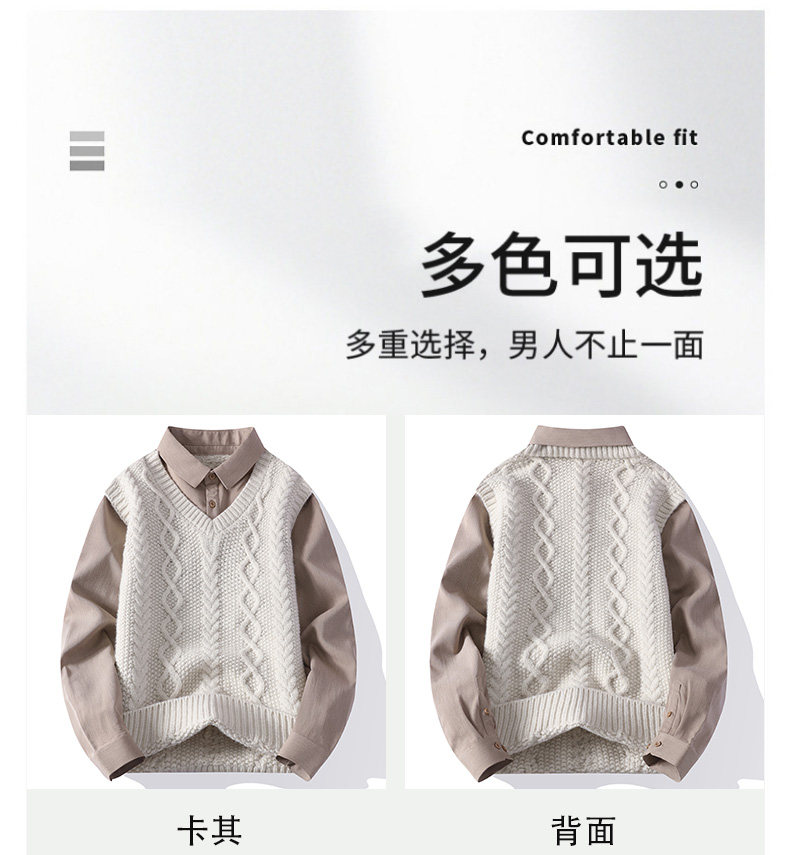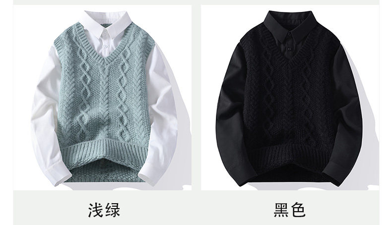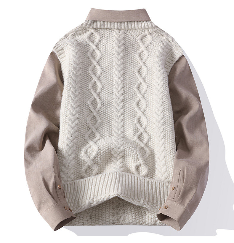 Shirt collar splicing fake two-piece sweater for men, autumn and winter inner layering shirt, Japanese retro loose shirt, can be worn outside