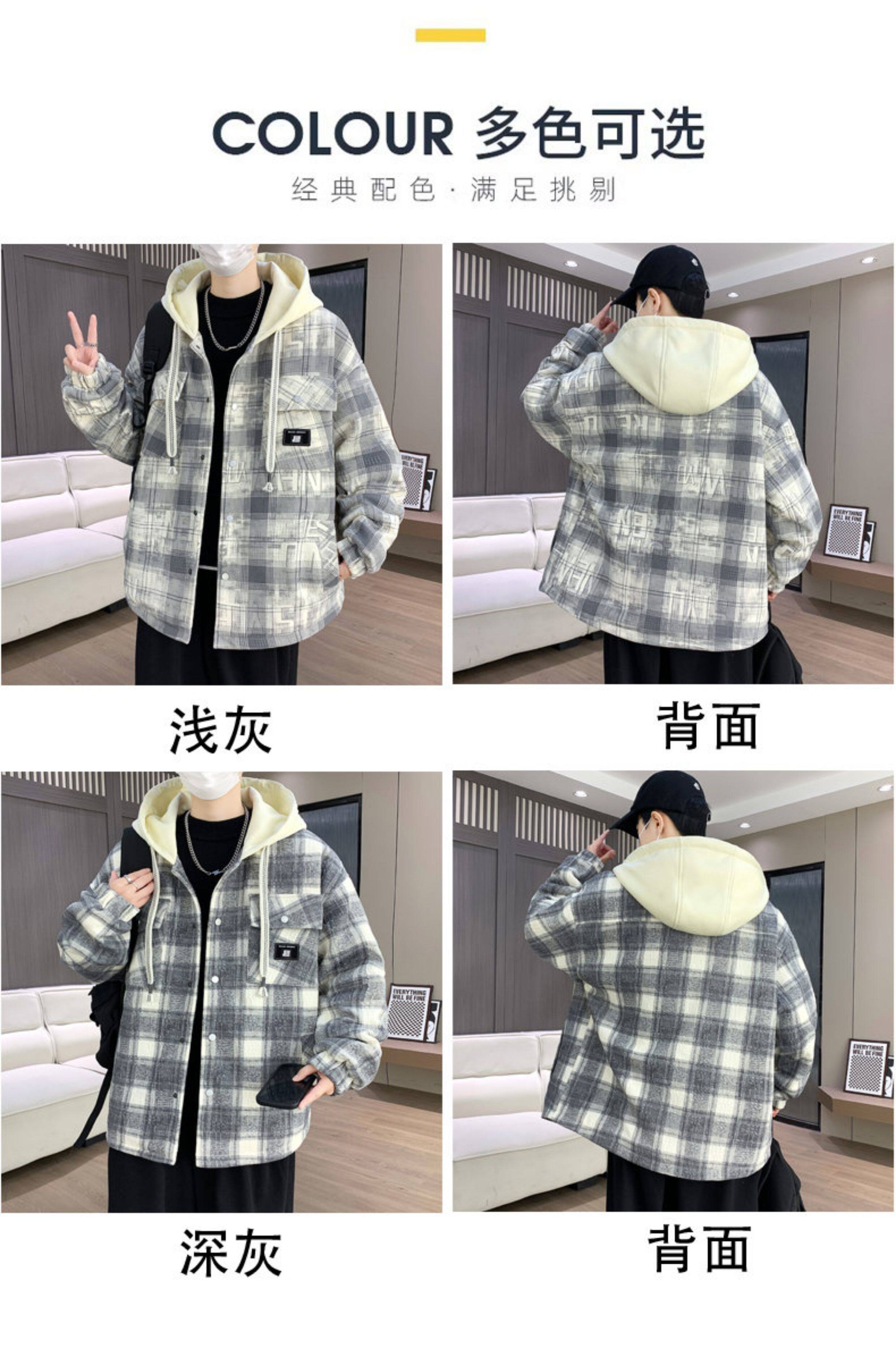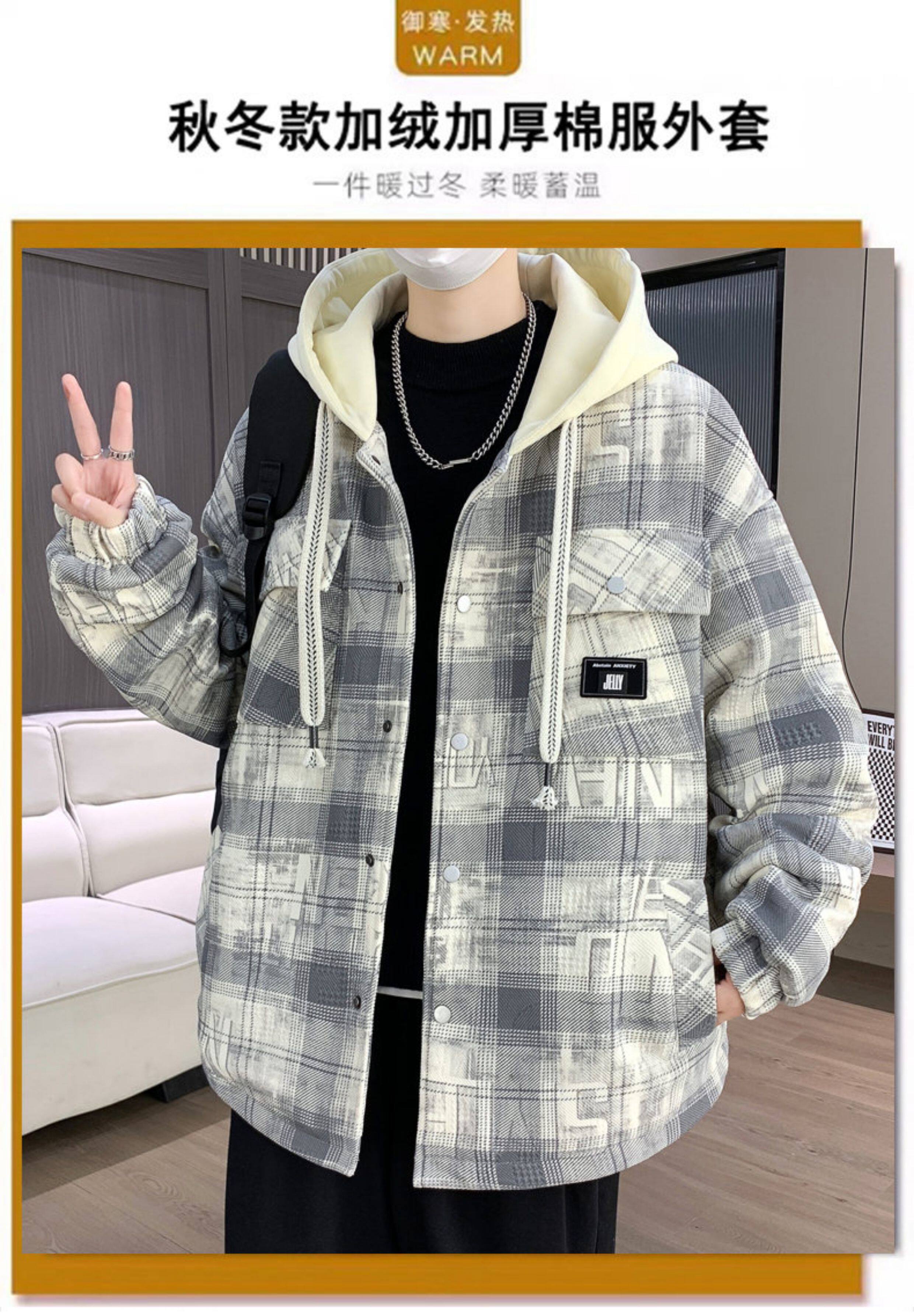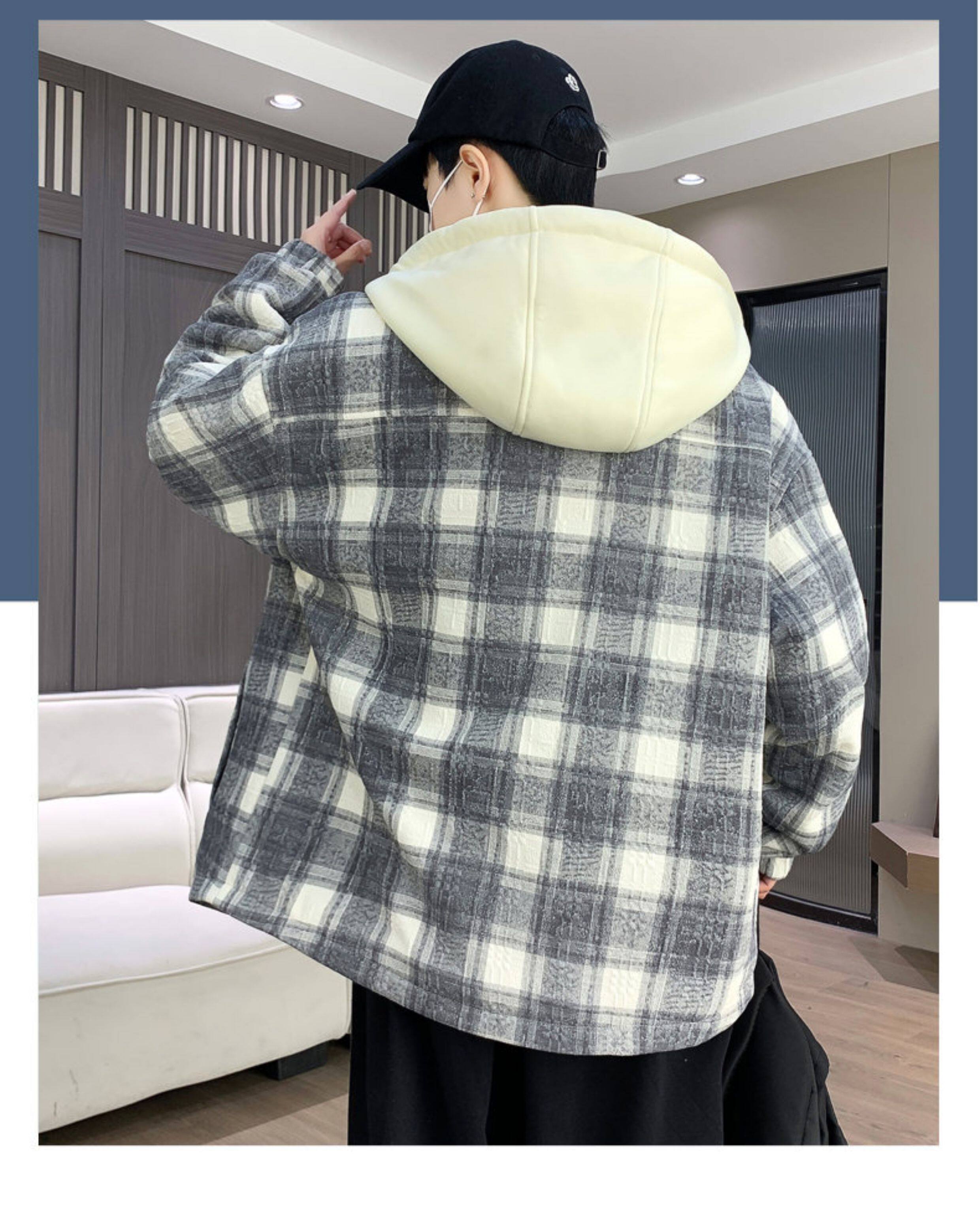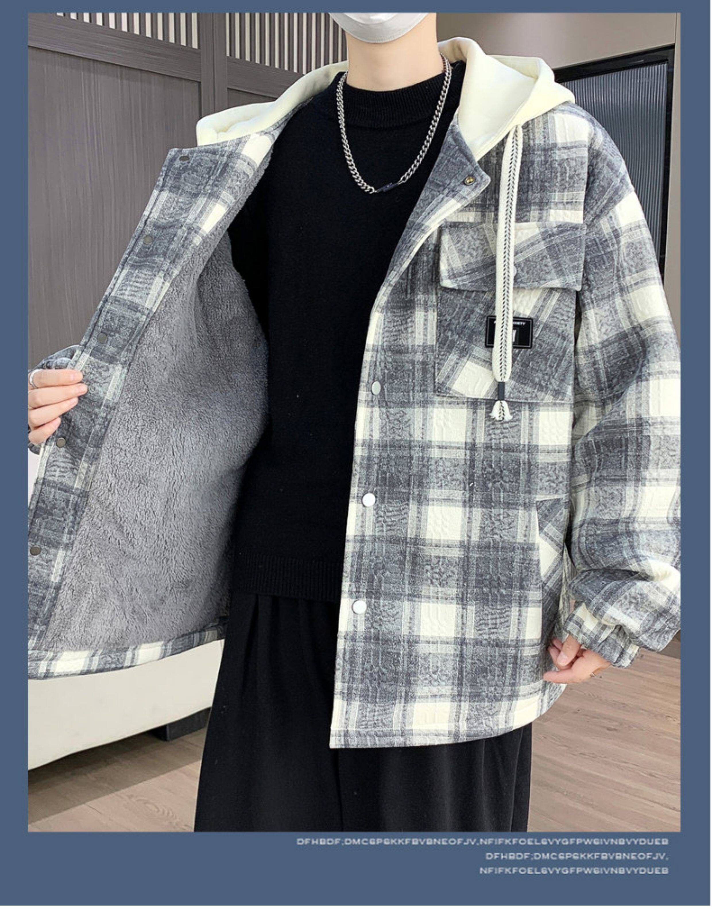 Winter New Hooded Plaid Fleece-Lined Thickened Jacket for Men, Teenagers, and Middle School Students, Warm and Stylish Parka