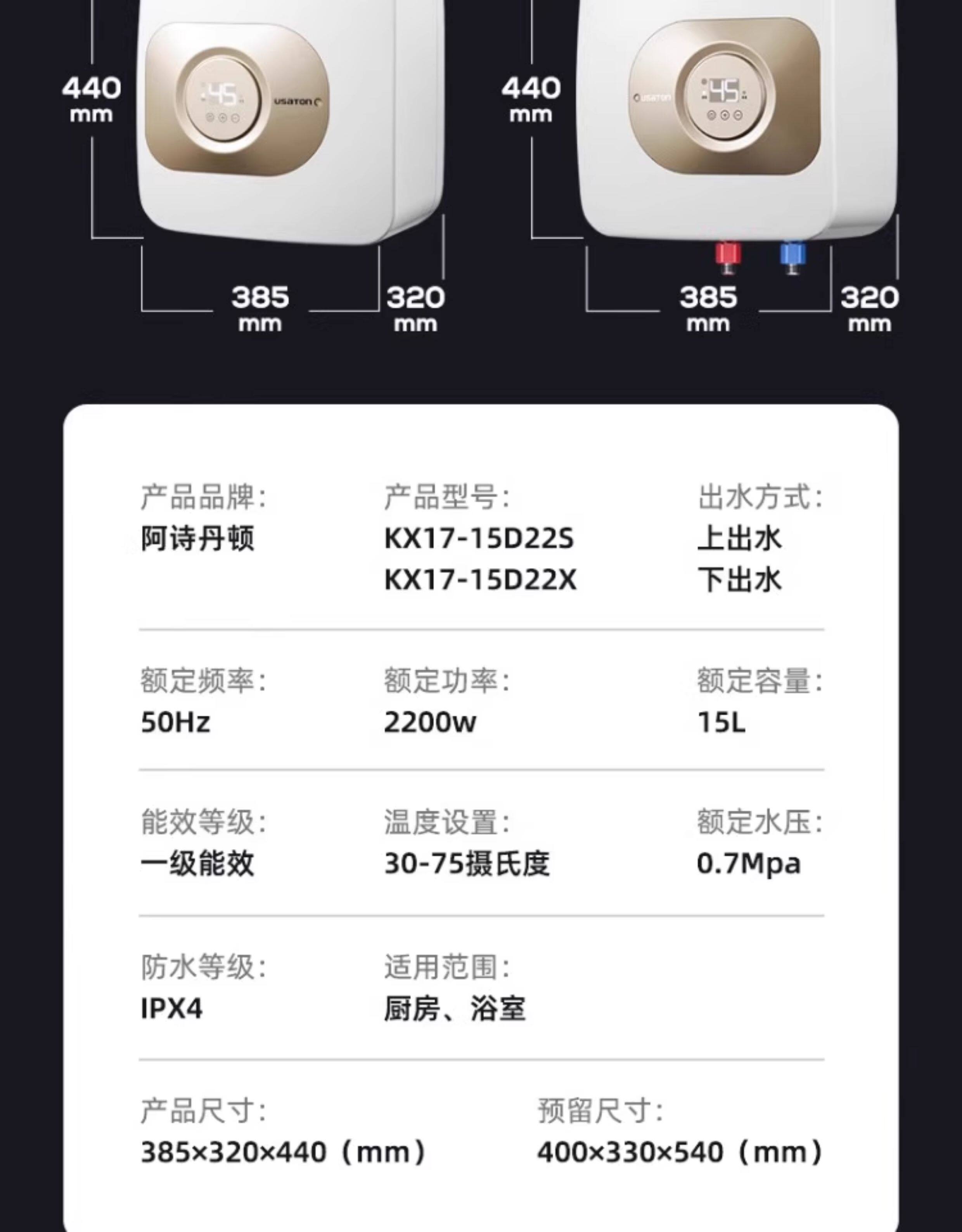 Household Instant Hot Water Heater 15L/25L Large Capacity Small Water Heater Ashidanton