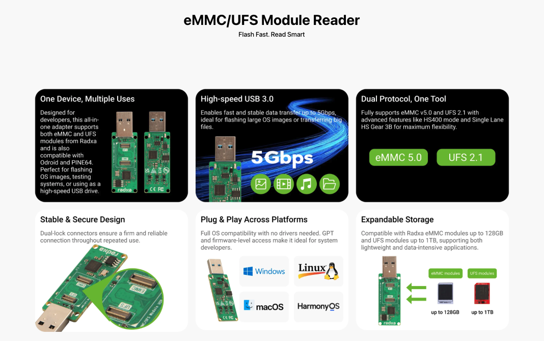 Radxa Official Emmc/Ufs Reader Card Reader Is Compatible with Multiple Rock Pi Emmc Models