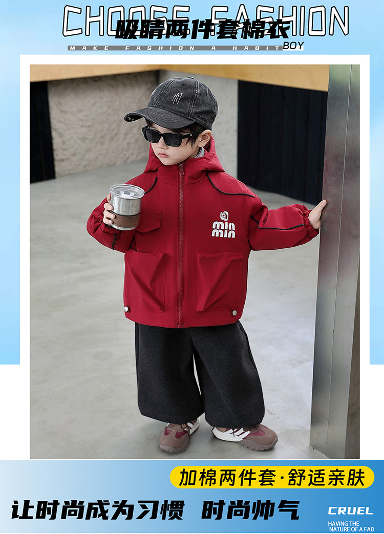 Boys' Padded Jacket Autumn and Winter Three-In-One Windbreaker 2025 New Children's Thickened Detachable Clothing