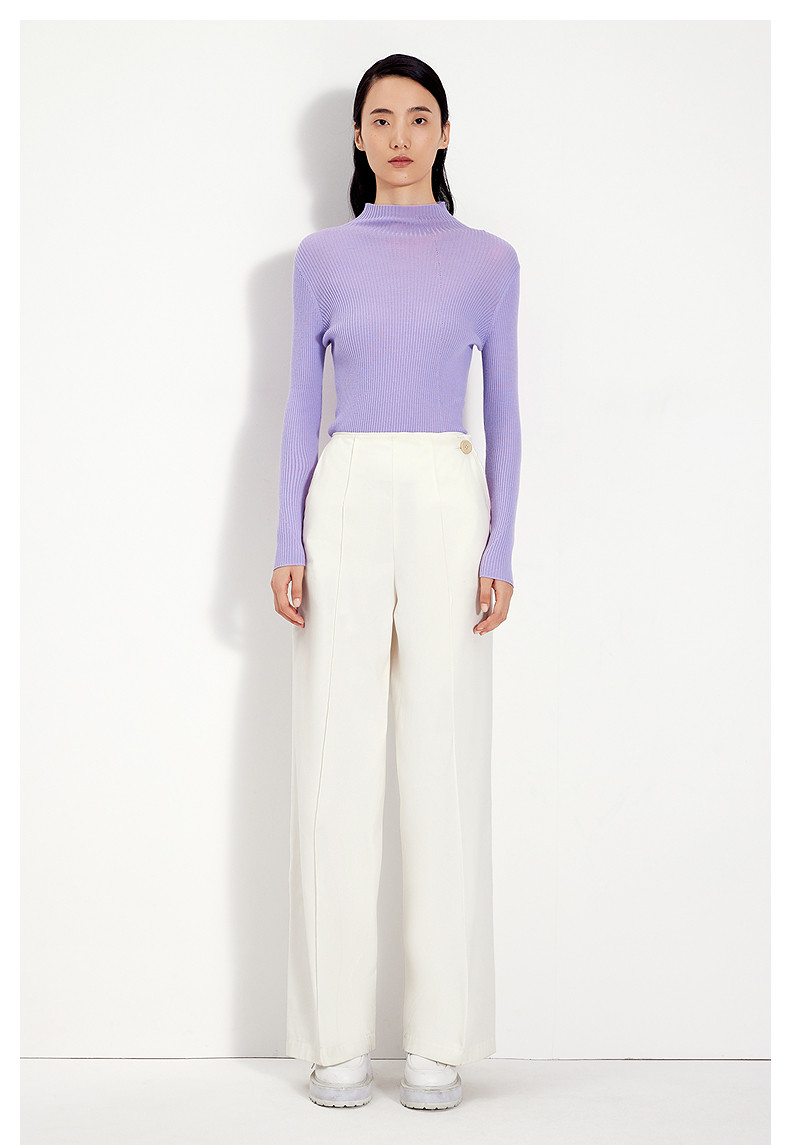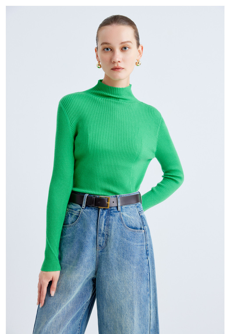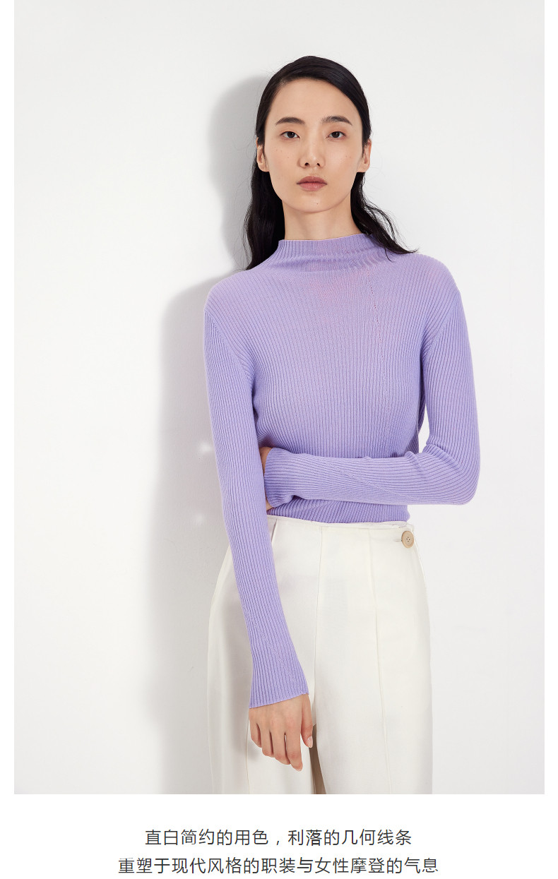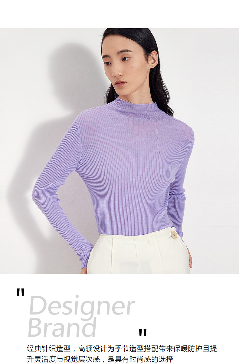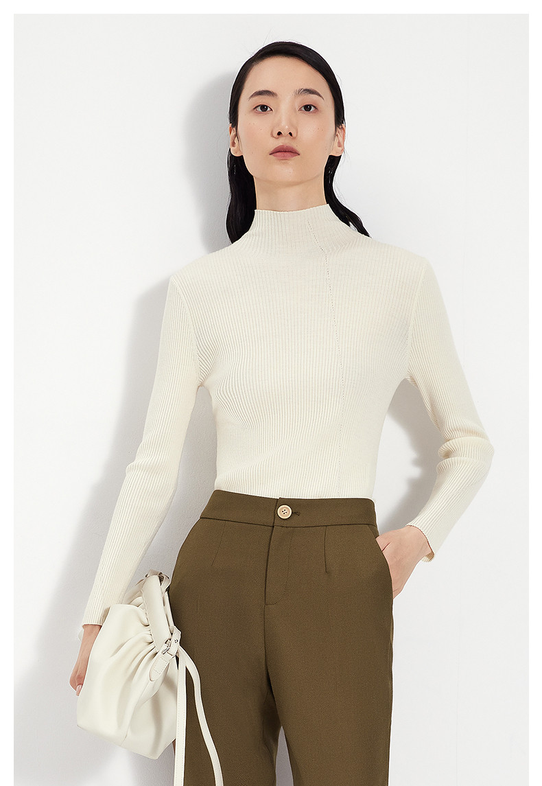 Idpan Outlet Elegant Base Shirt Commuting Versatile Slim Fit Autumn and Winter Fashion High Neck Design Wool Pullover Top