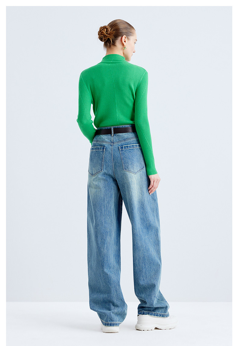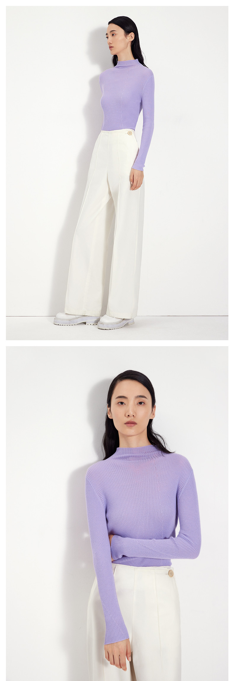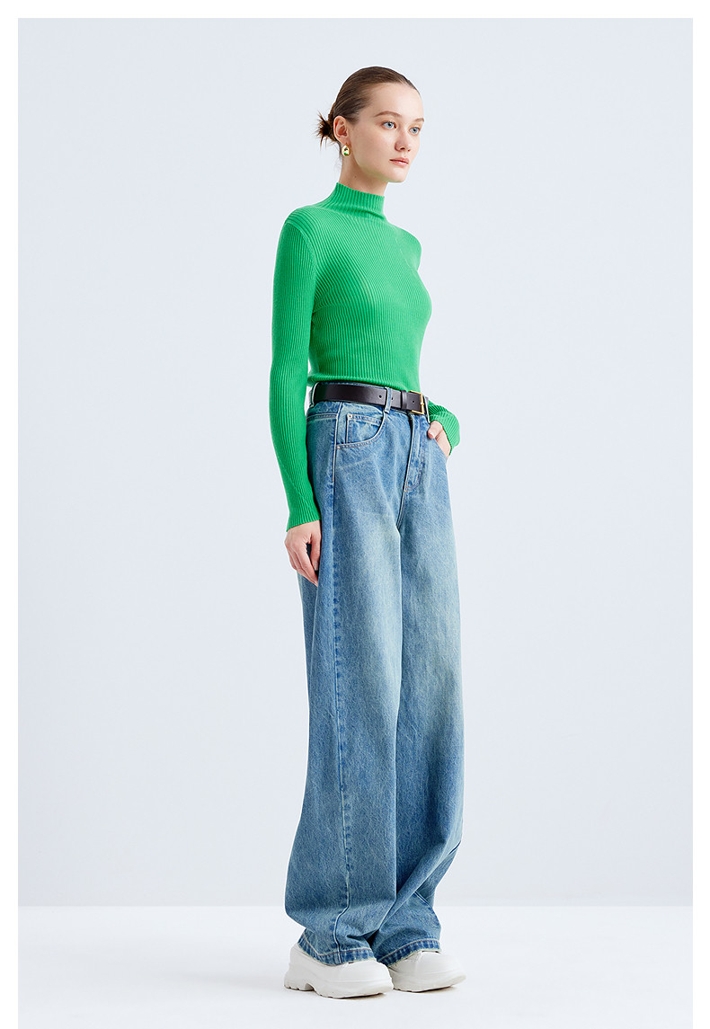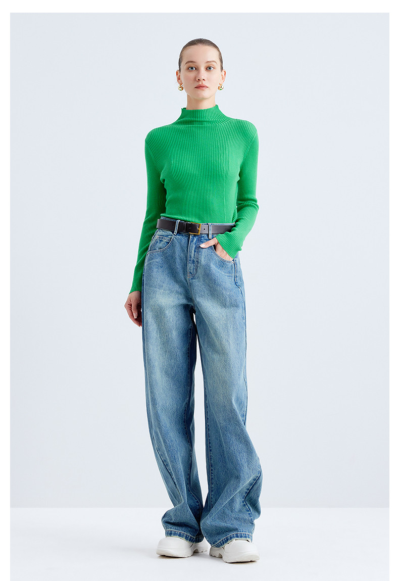 Idpan Outlet Elegant Base Shirt Commuting Versatile Slim Fit Autumn and Winter Fashion High Neck Design Wool Pullover Top