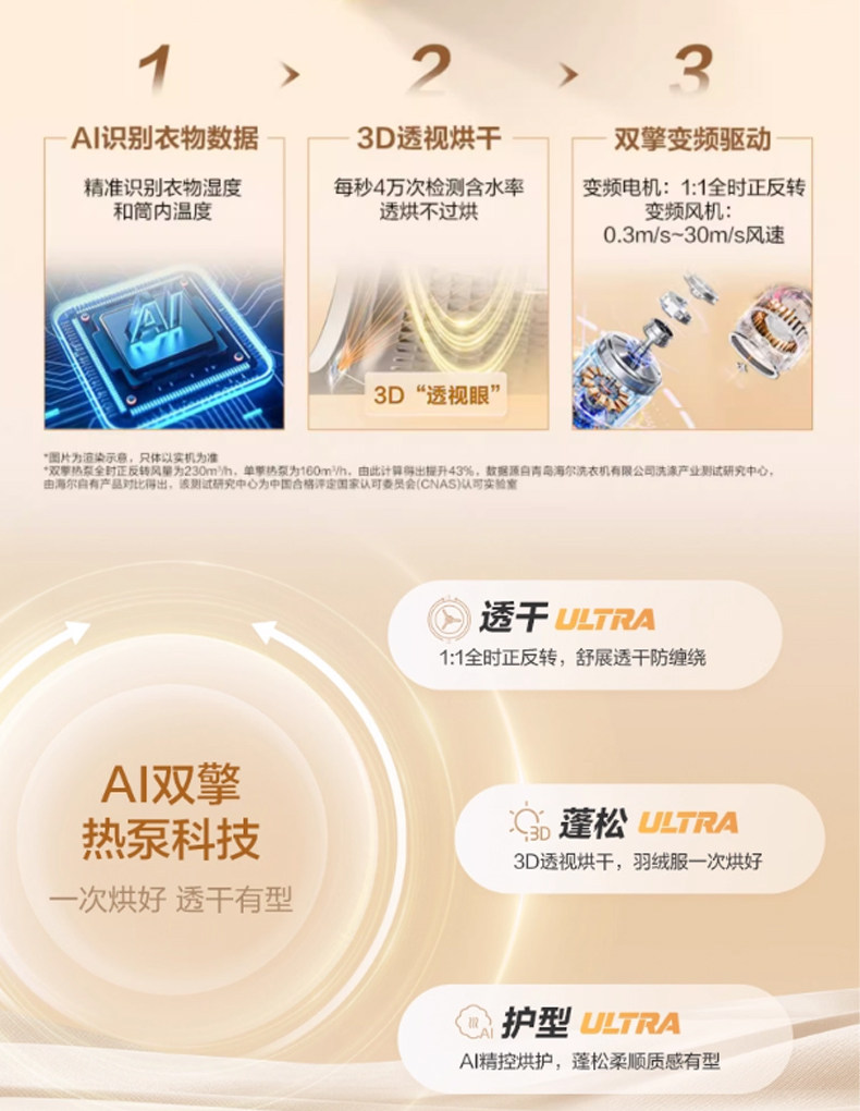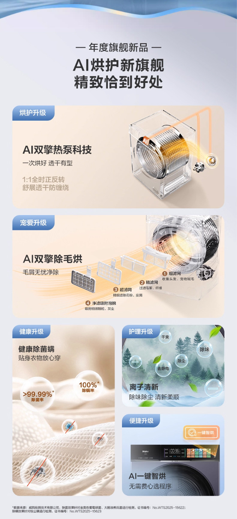 [Yunxi] Haier's New Product, 3D Dual-Engine Heat Pump Ultra-Thin Fully Automatic Hair Removal, Bacteria and Mite Removal 75 Dryer