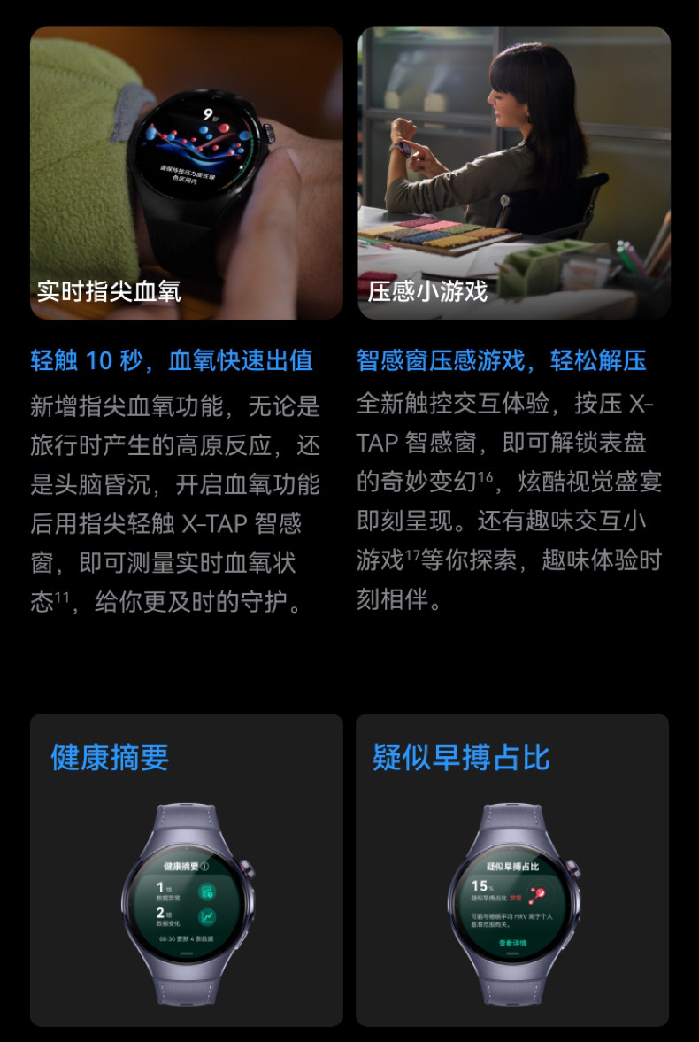Function Waterproof,X-Tap Smart Window, Gesture Control, Wrist Art, Fingertip Blood Oxygen, High Blood Pressure Risk Assessment, Esim Pioneer Communication, Independent Calls