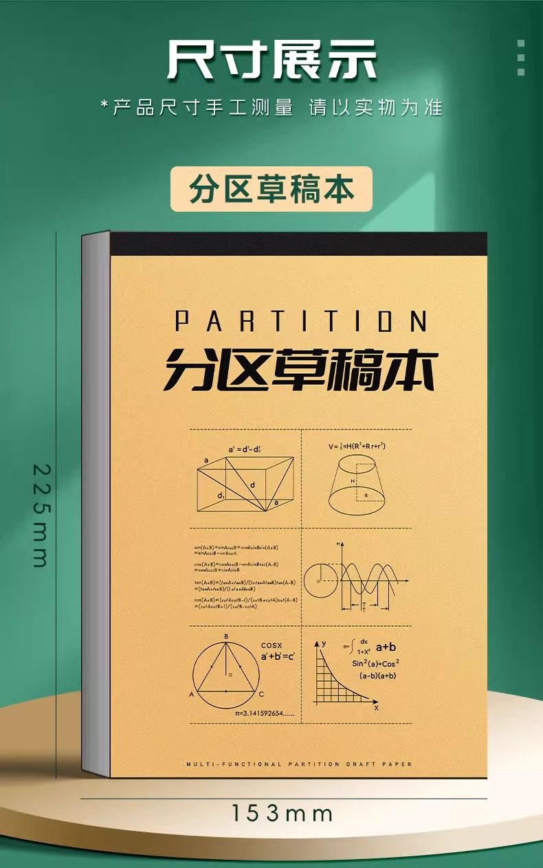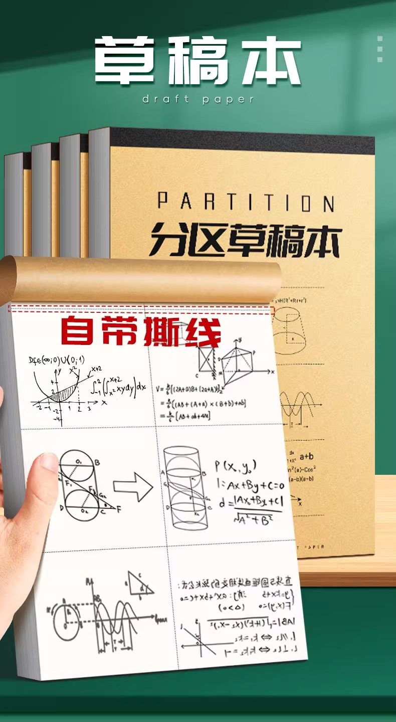 50 Sheets of 100-Page Partitioned Draft Paper, Draft Notebook for Elementary School Students, Thickened for Middle and High School Students, Special for Postgraduate Entrance Exams, Mathematics