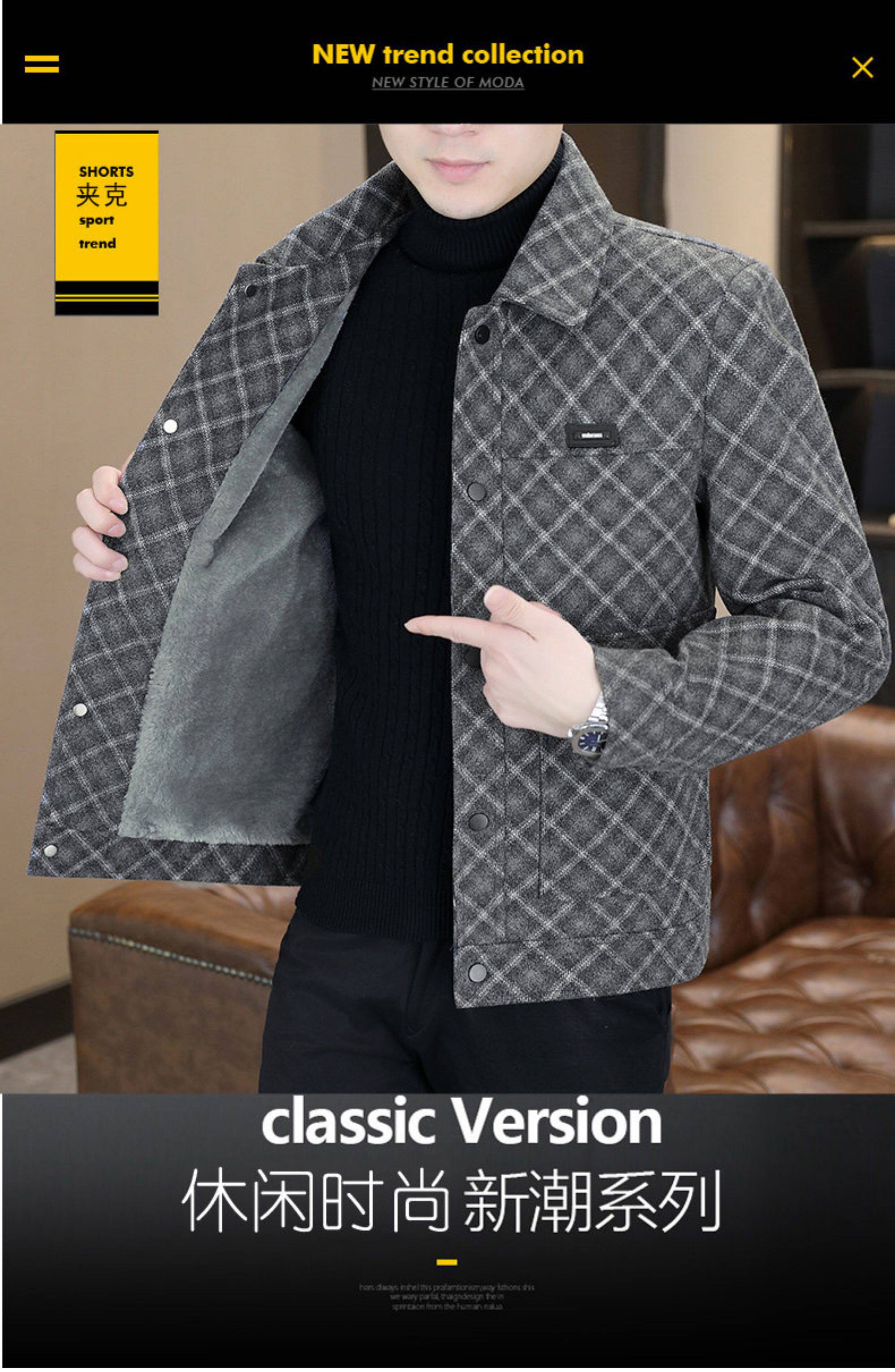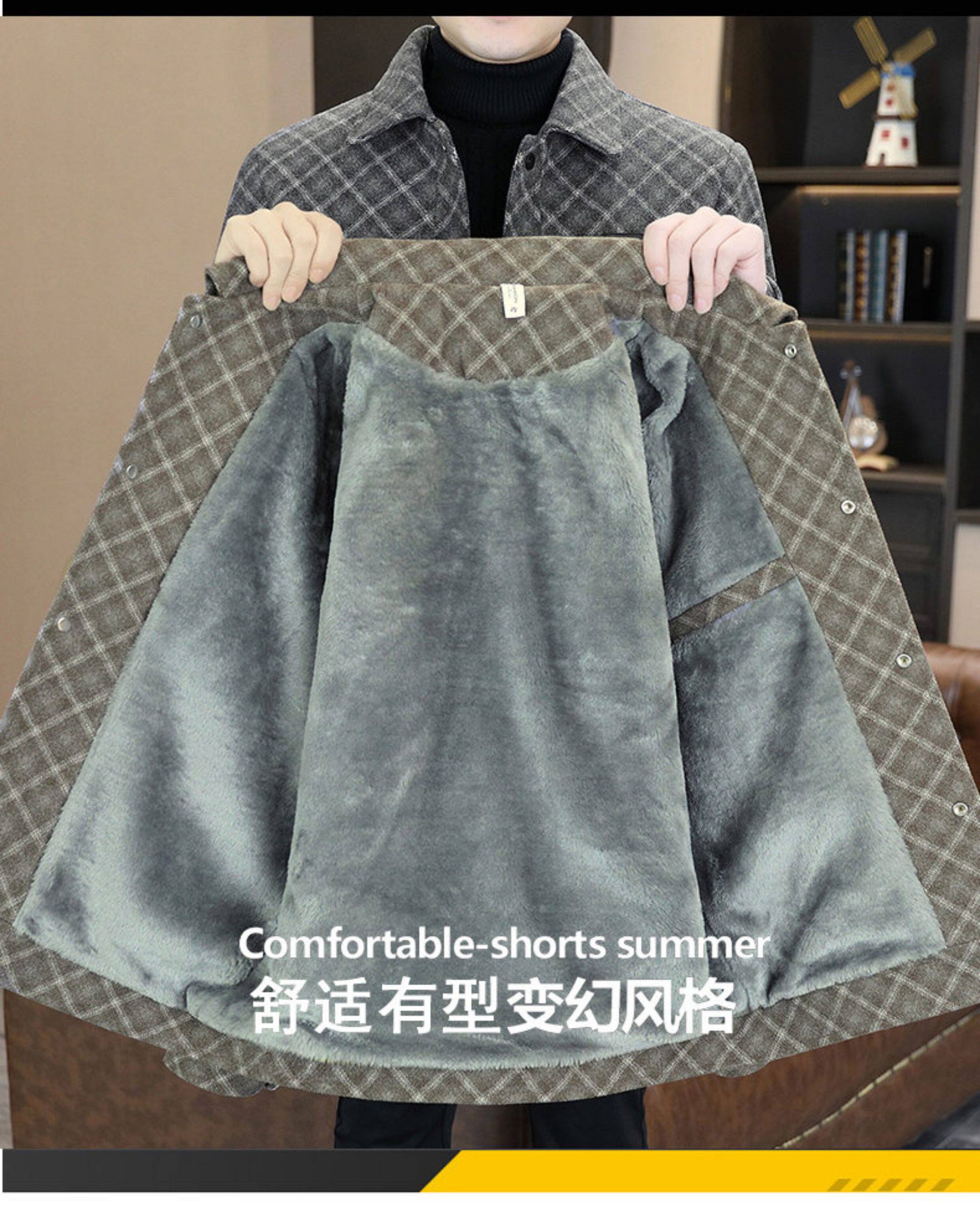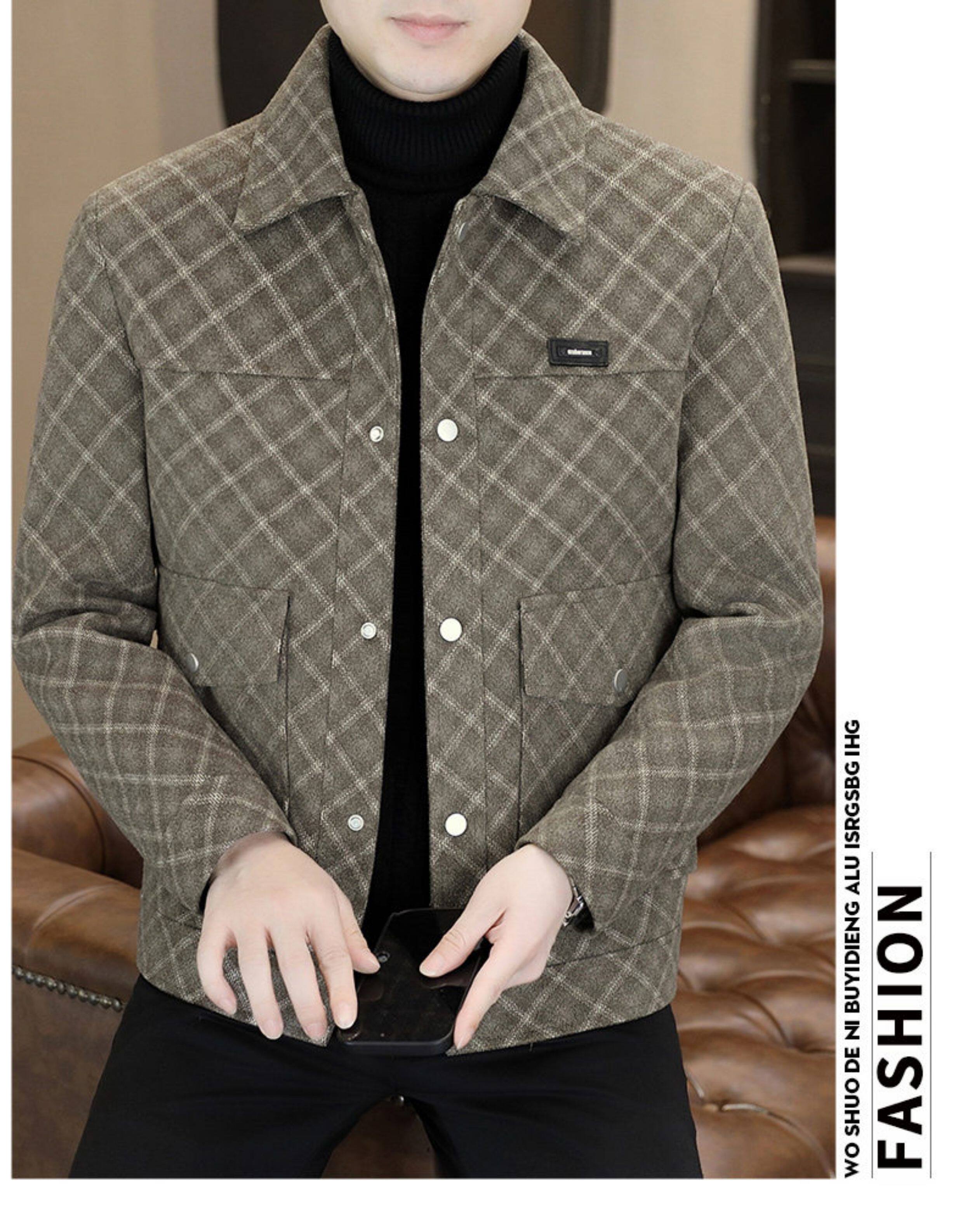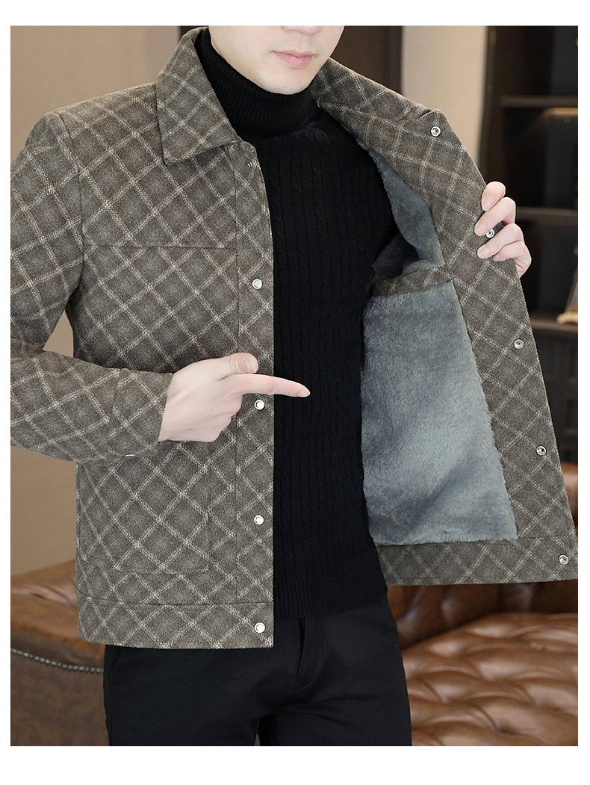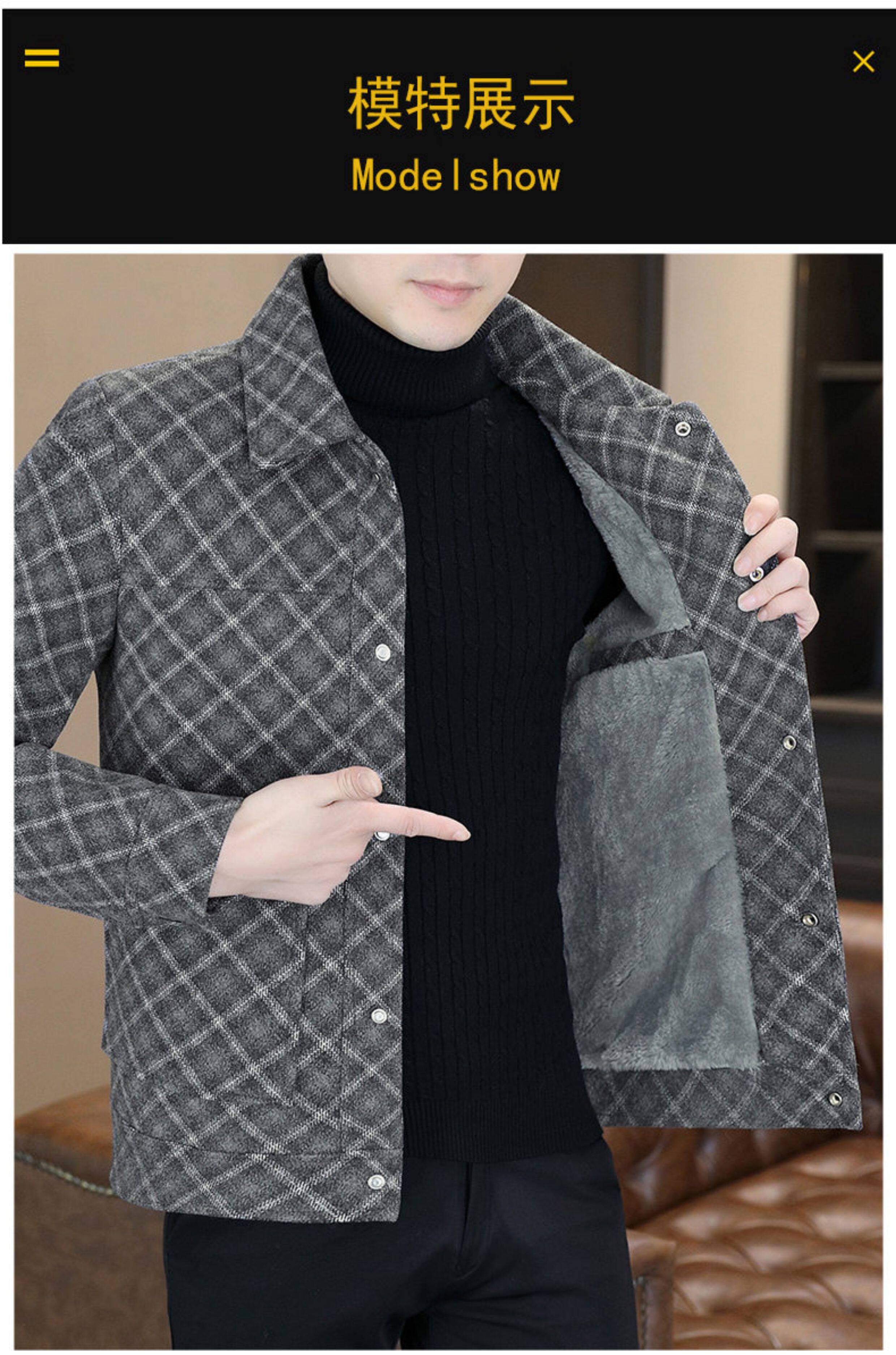2025 Winter New Plaid Lapel Fleece-Lined Thickened Woolen Coat for Men, Slim Fit and Warm Overcoat for Young and Middle-Aged Men