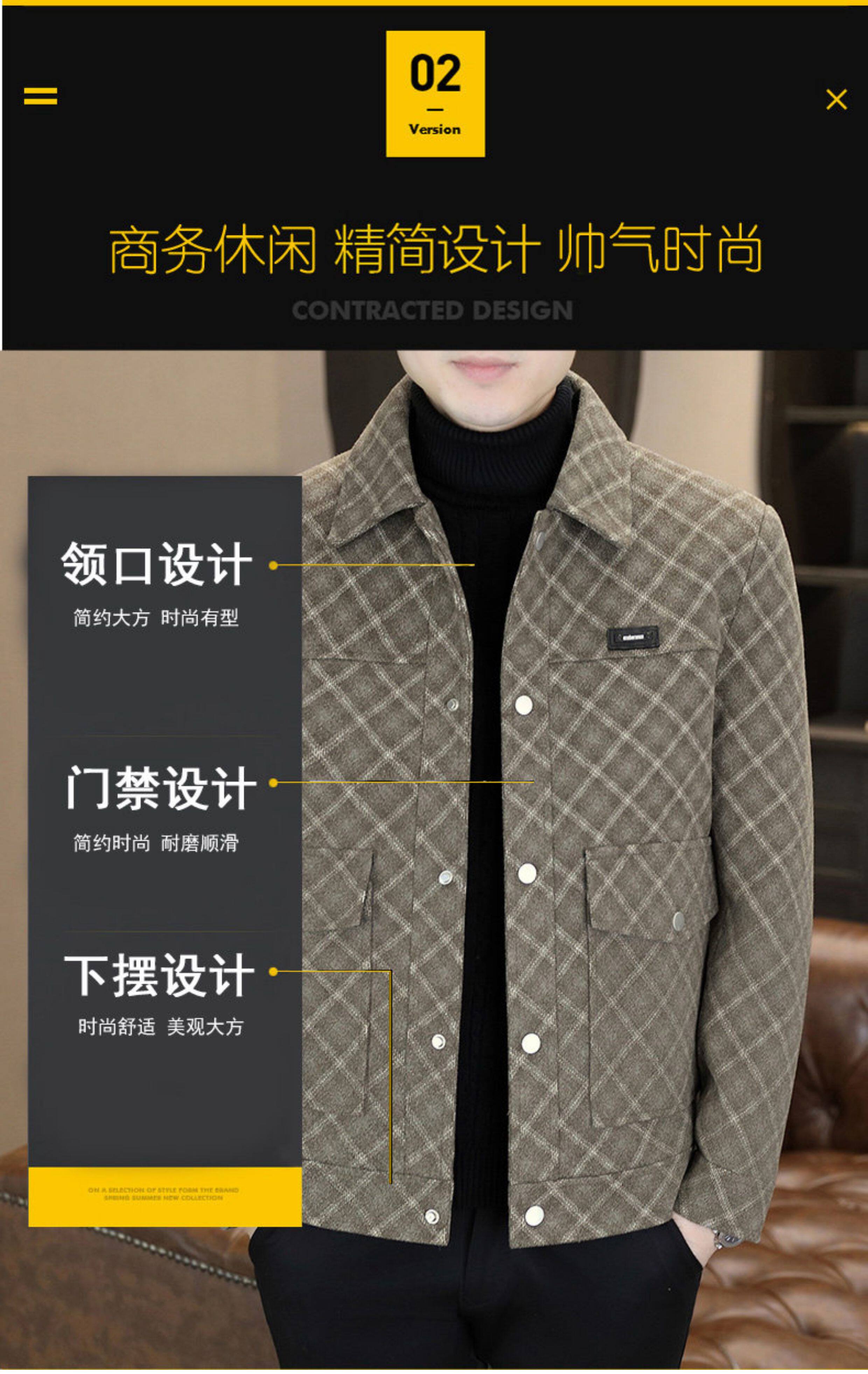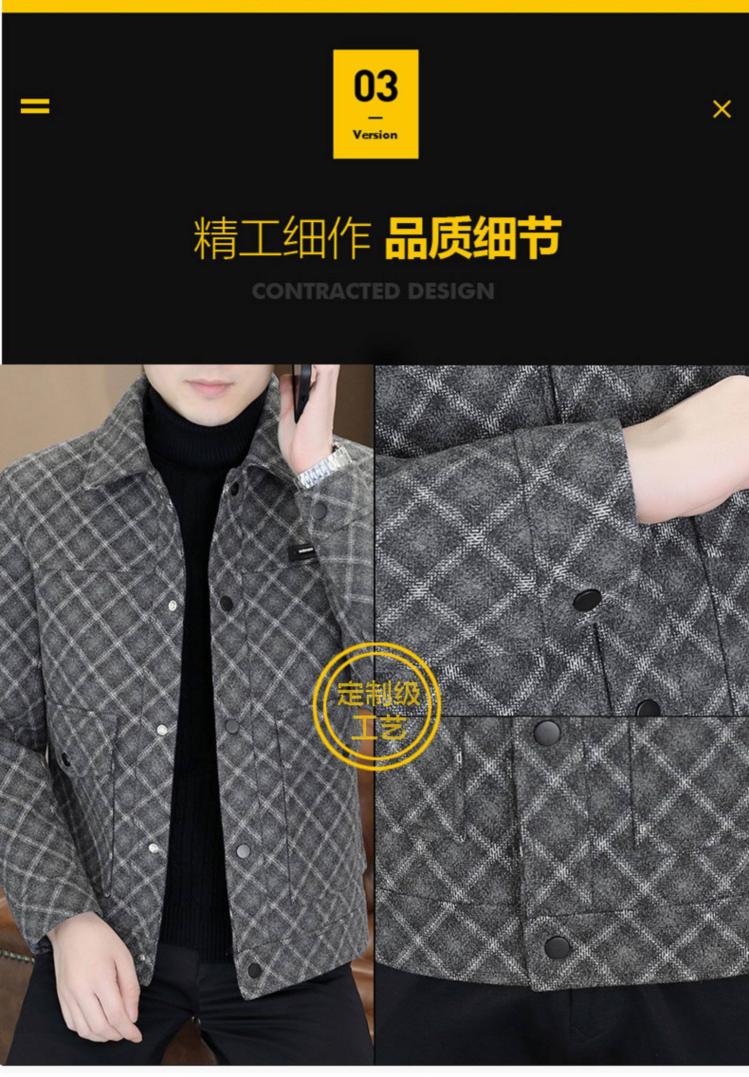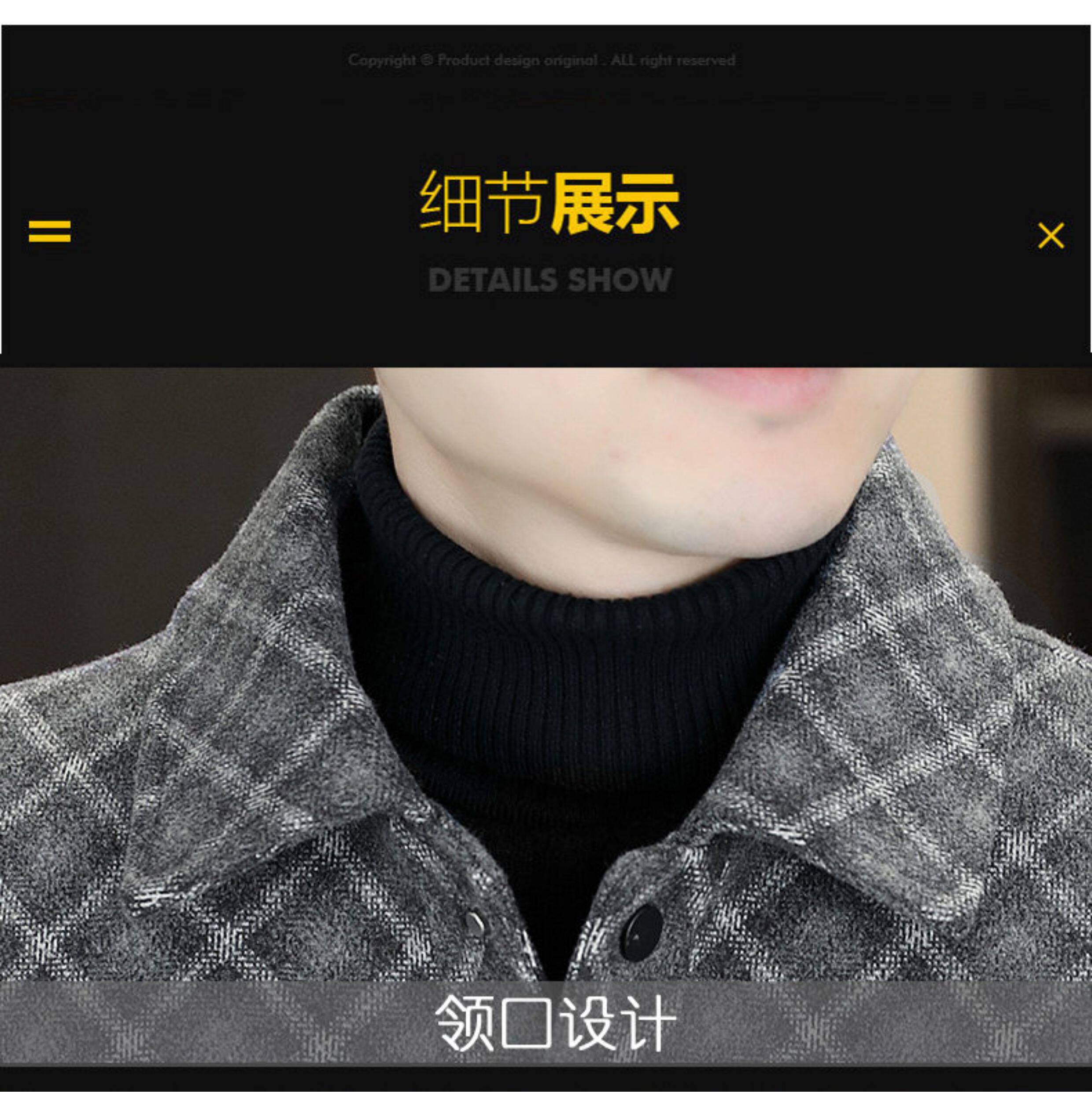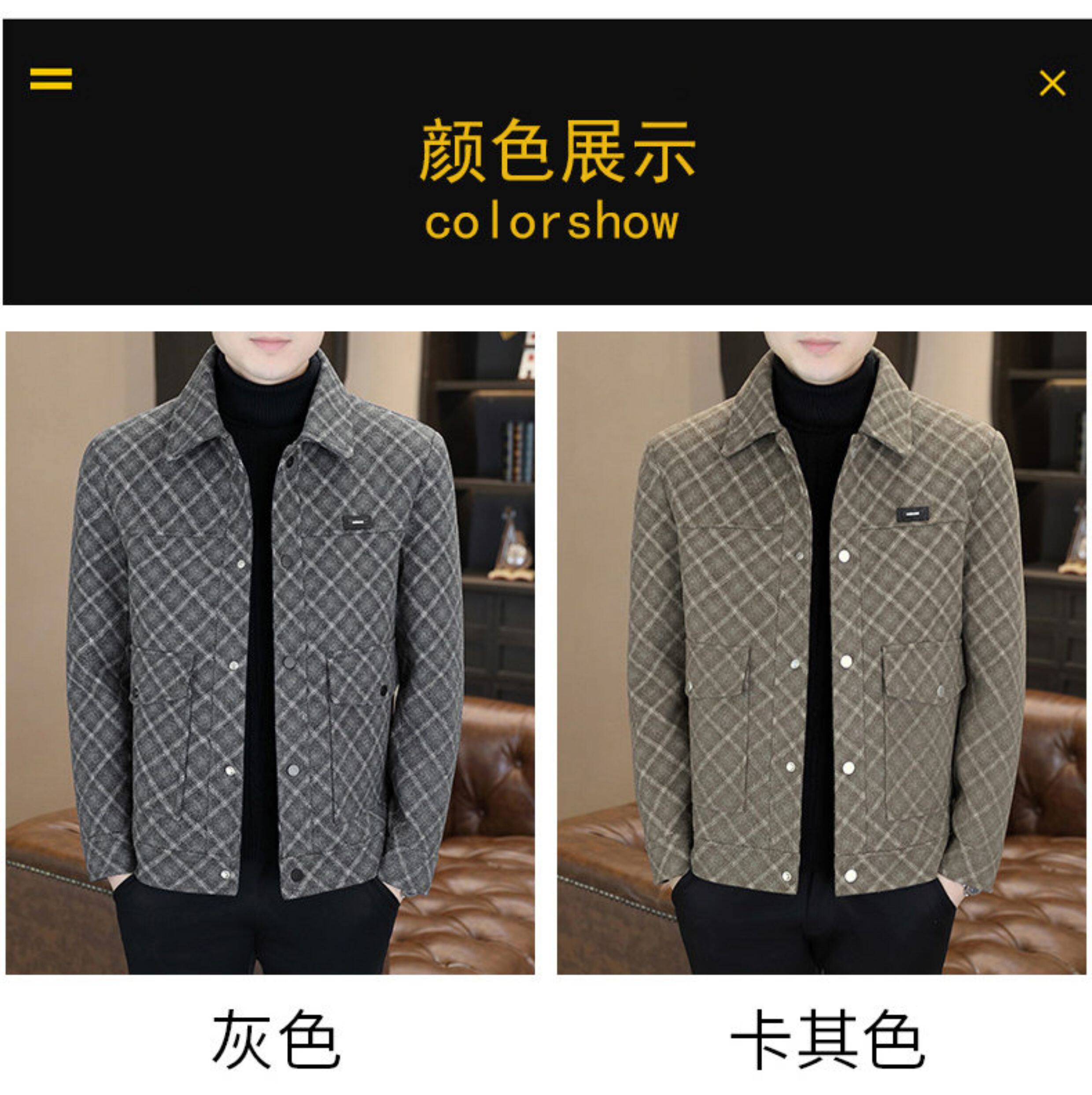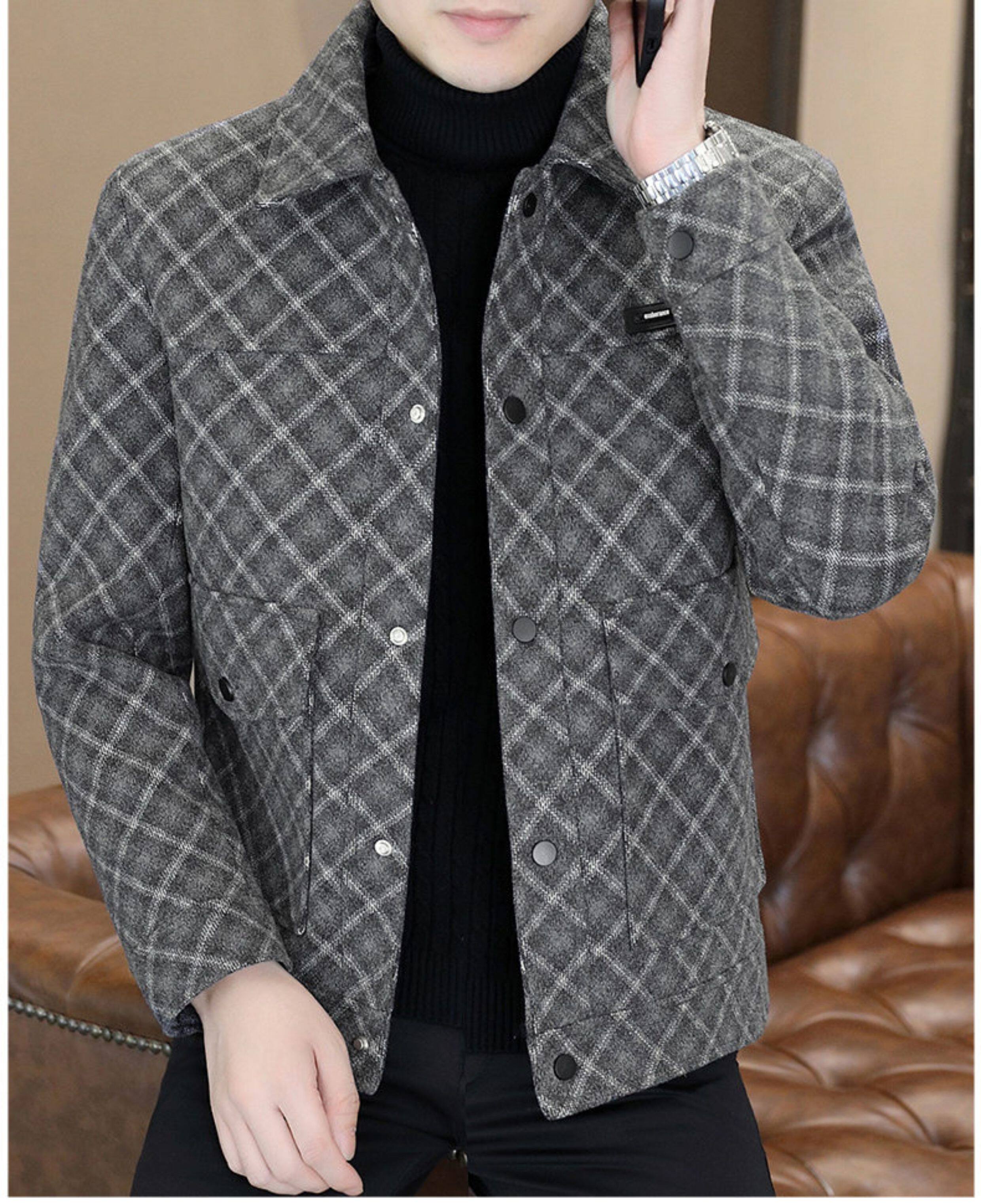 2025 Winter New Plaid Lapel Fleece-Lined Thickened Woolen Coat for Men, Slim Fit and Warm Overcoat for Young and Middle-Aged Men