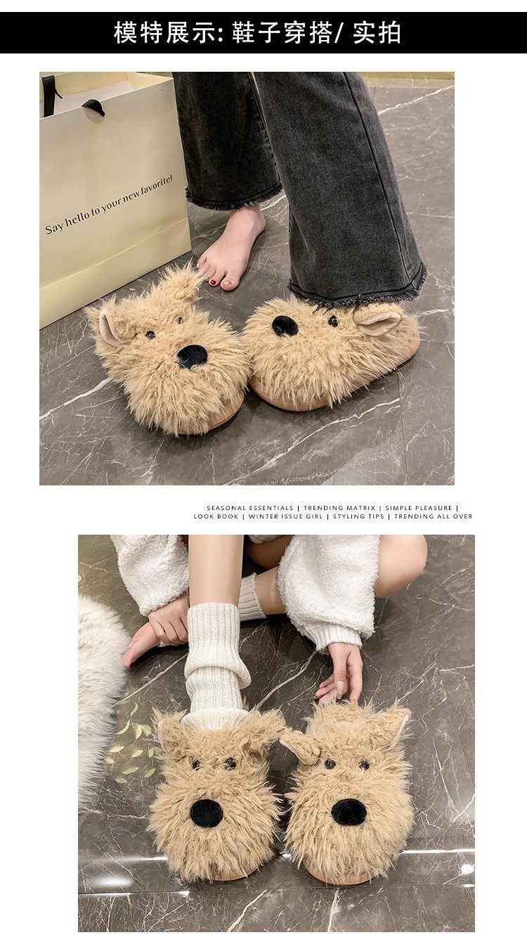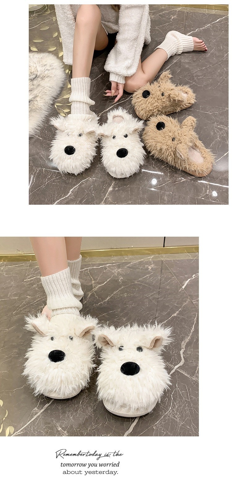 Cartoon Puppy Plush Ear-Shaped Women's Home Cotton Slippers with Soft Soles, Warm Indoor Autumn and Winter Cute Light-Soled Slippers for Men