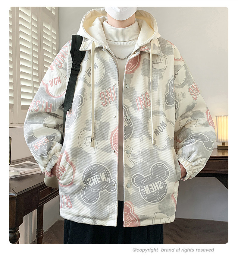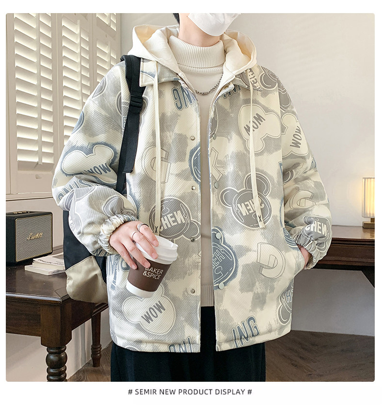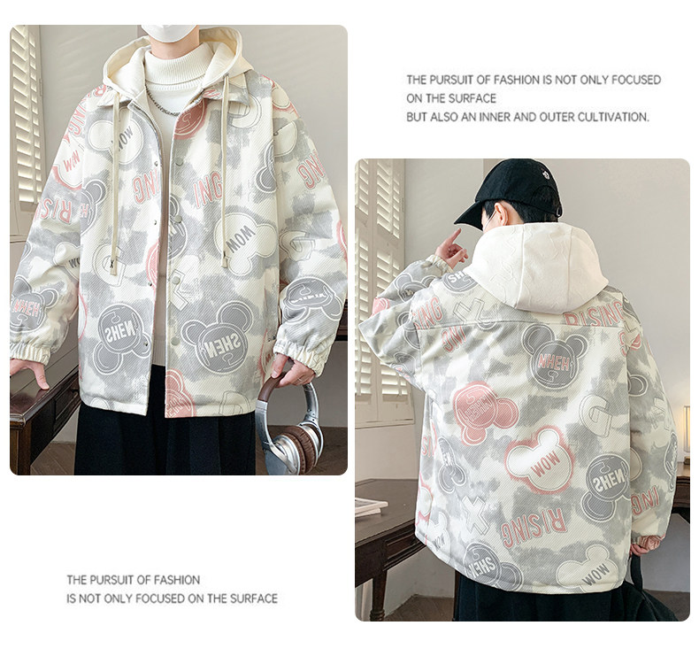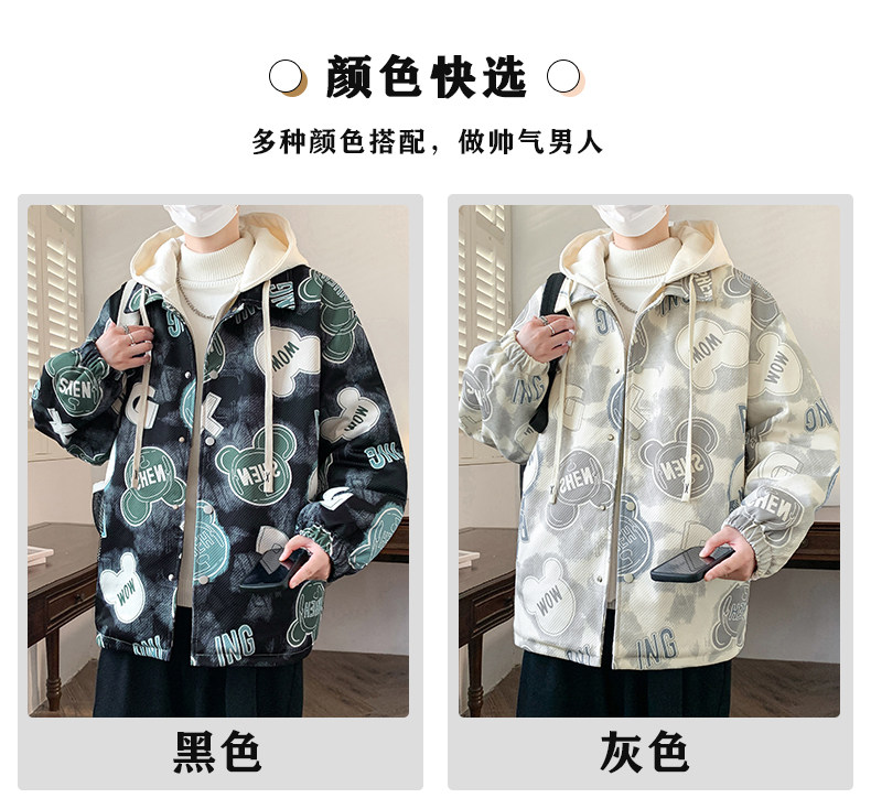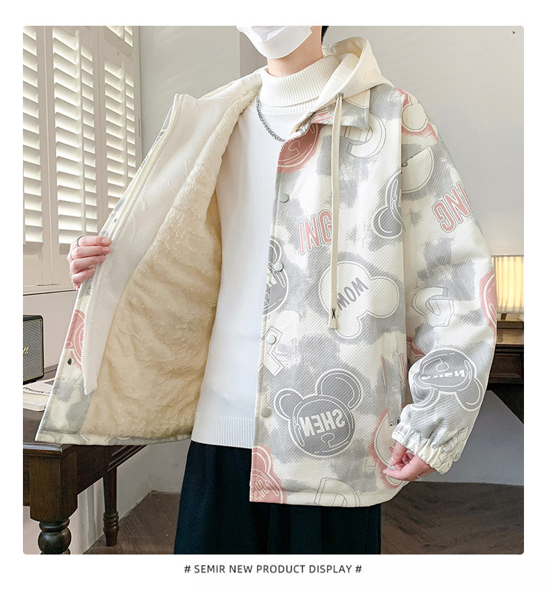 Hooded Jacket for Men 2026 Autumn and Winter New Style Fleece-Lined Thickened Youth Jacket Trendy Brand Hong Kong Style Casual Warm Coat