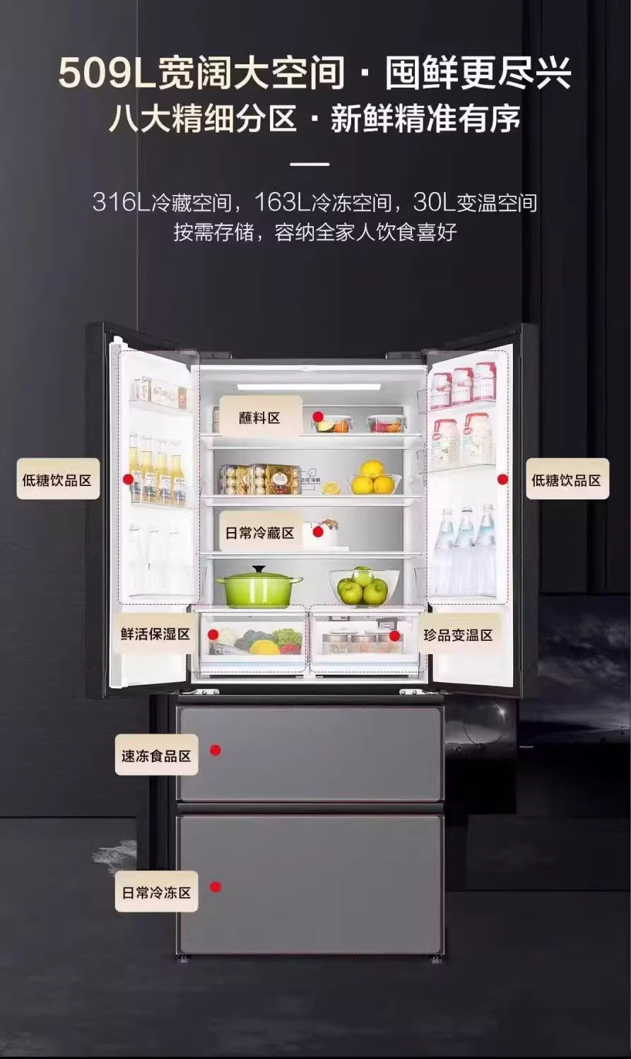 Haier Bcd-509Wghfd19X8U1 Full Space 509-Liter French-Style Frost-Free First-Class Ultra-Thin Refrigerator