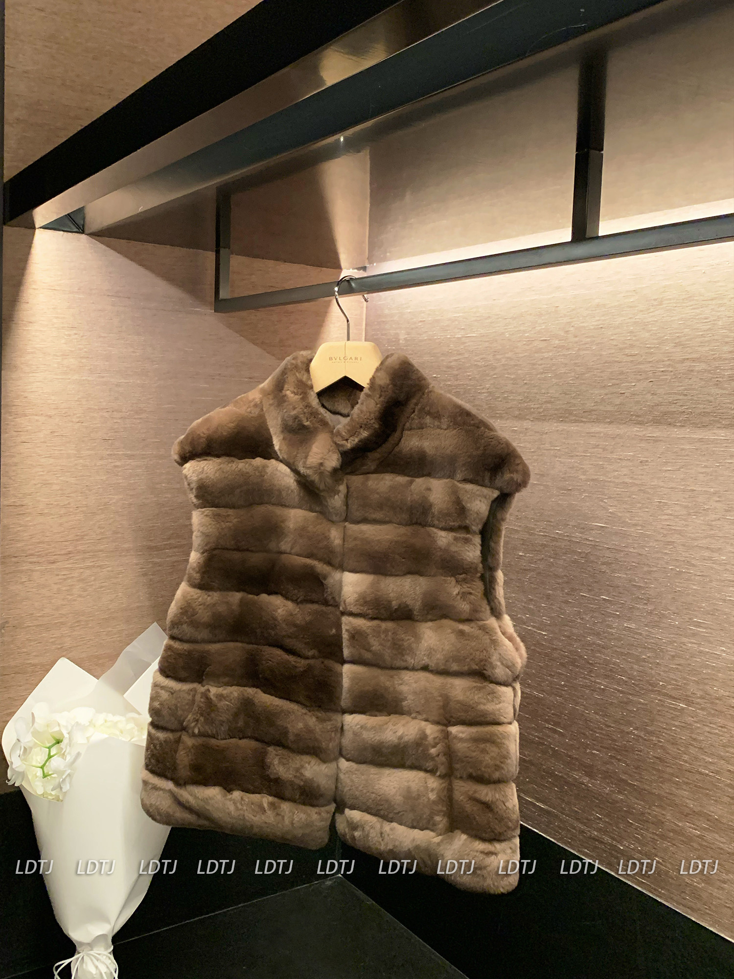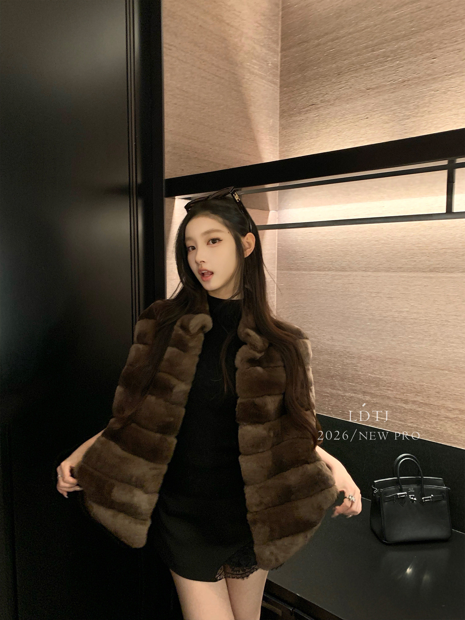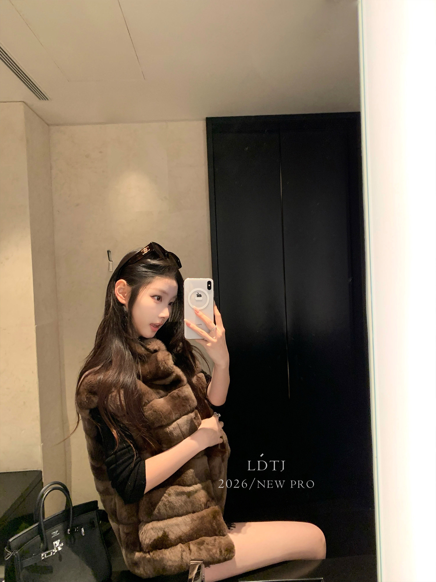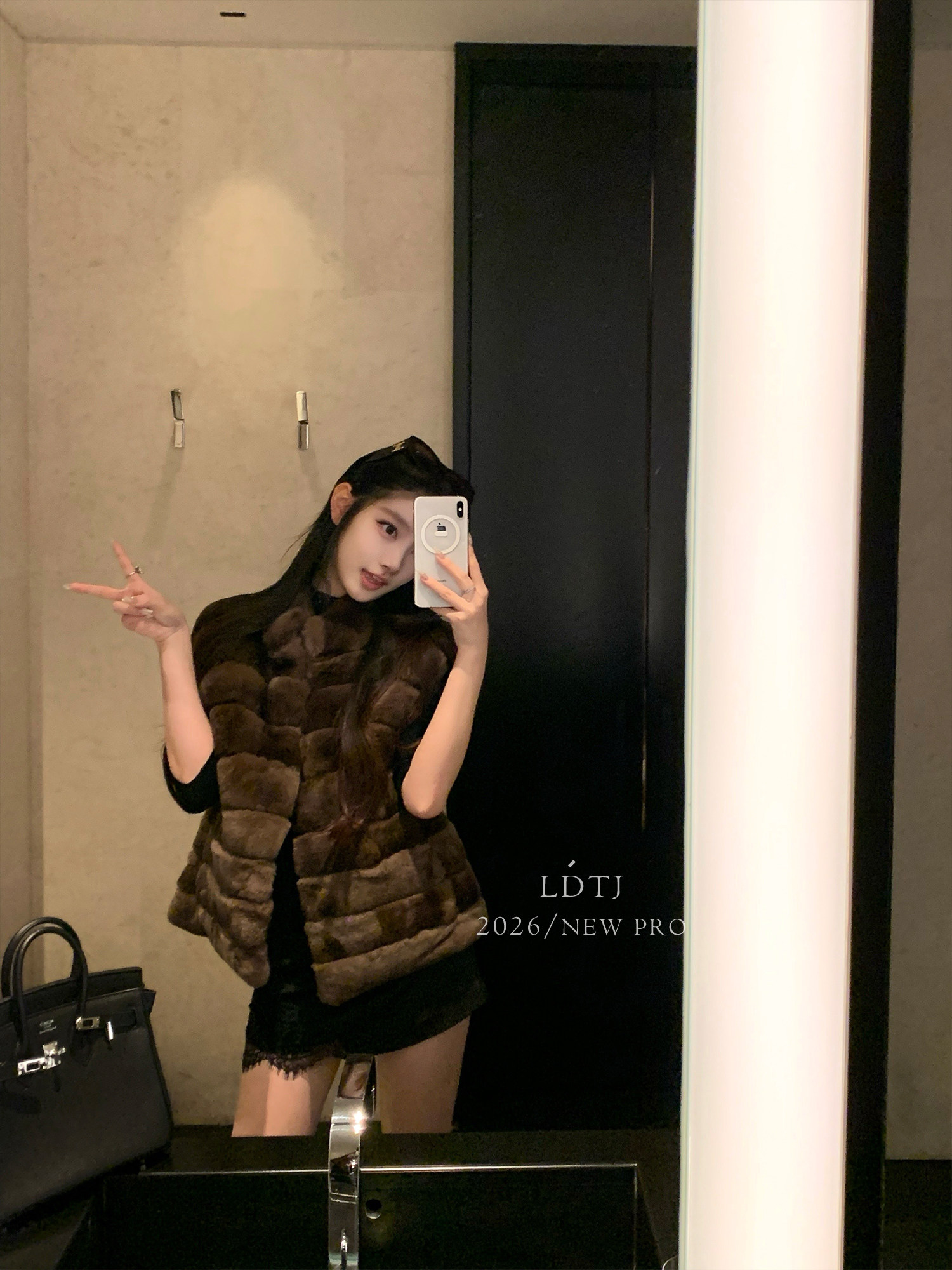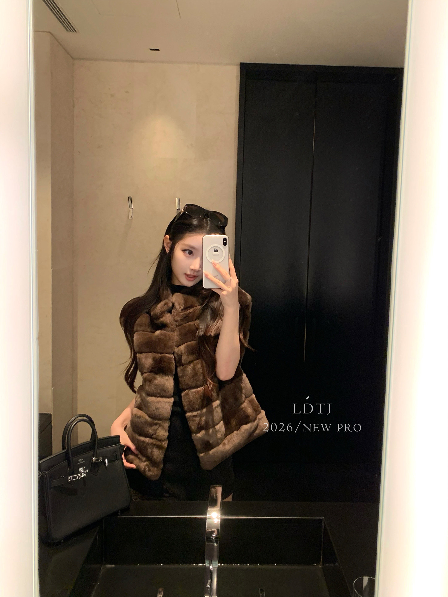 Ldtj Haute Couture "Encounter in Paris" Private Atmosphere Saga-Level Old Money High-Luxury Rex Rabbit Fur Vest Coat