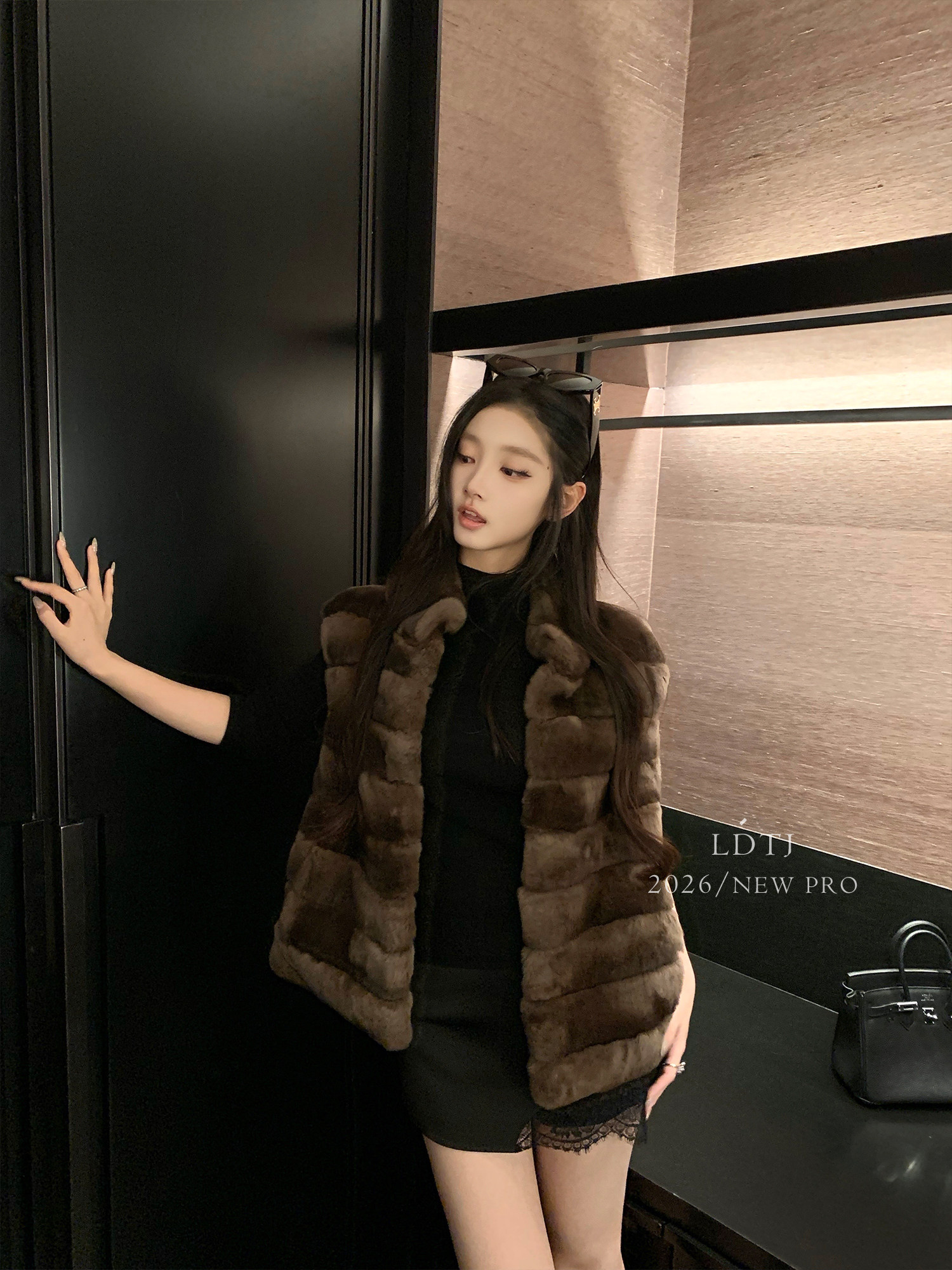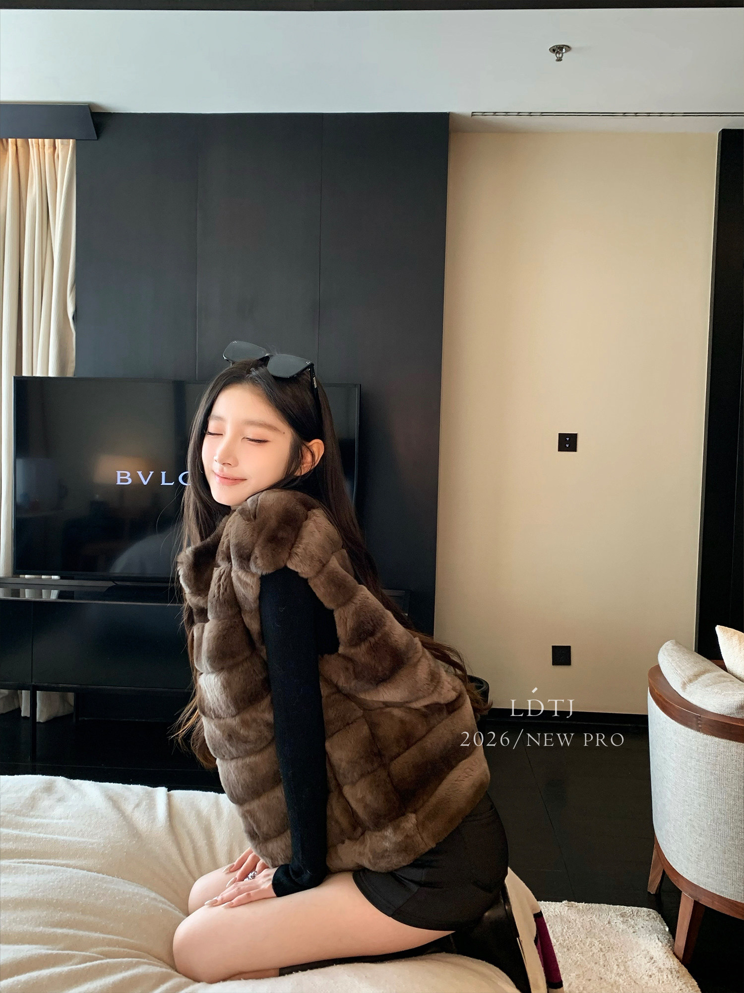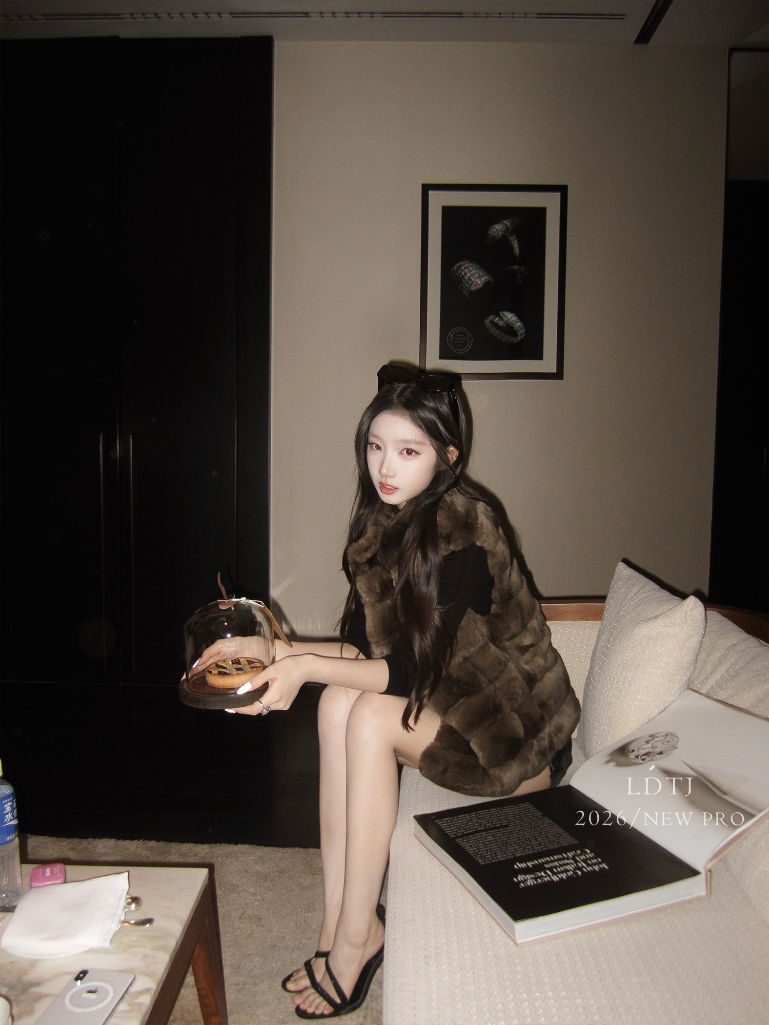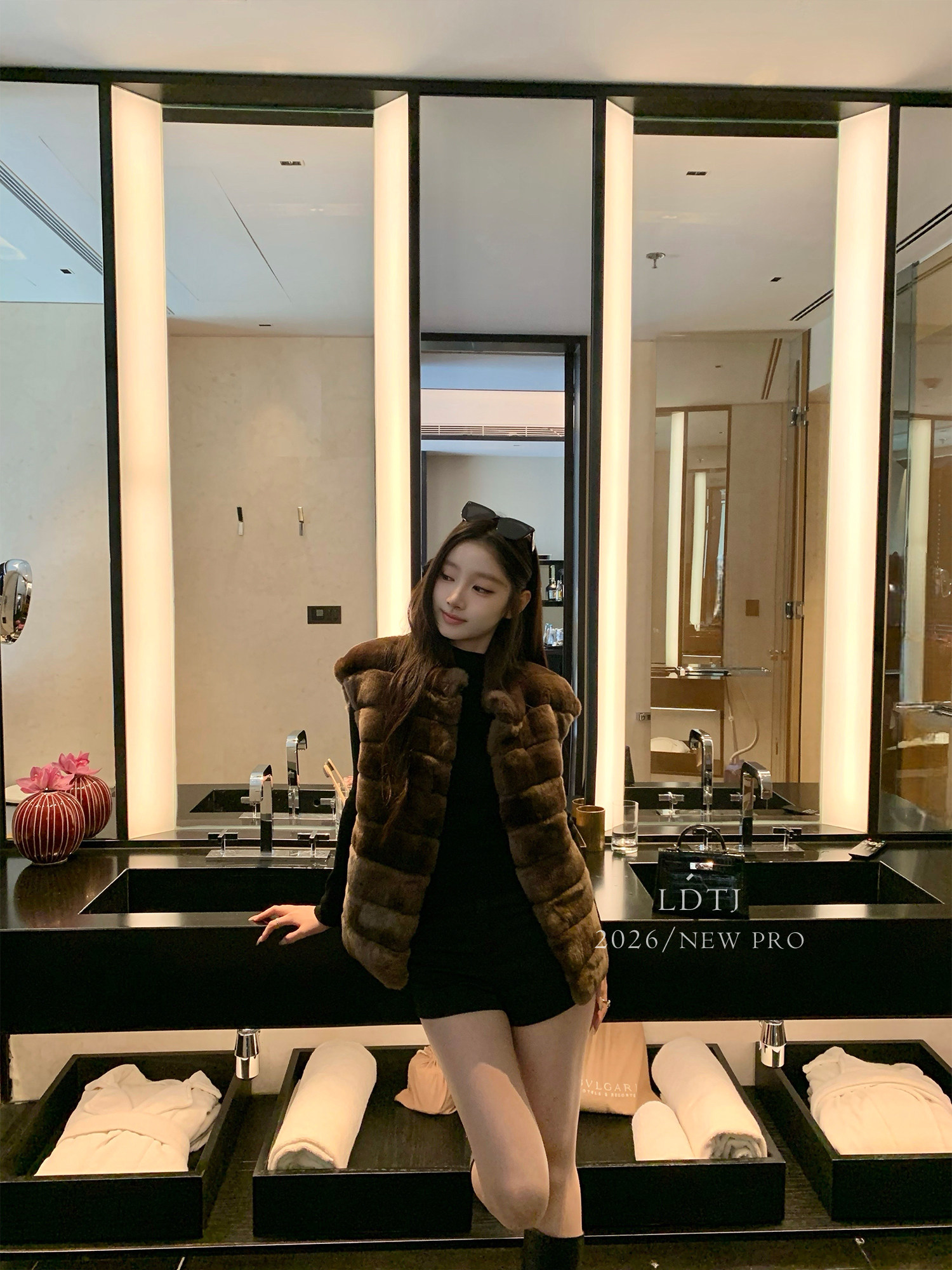 Ldtj Haute Couture "Encounter in Paris" Private Atmosphere Saga-Level Old Money High-Luxury Rex Rabbit Fur Vest Coat