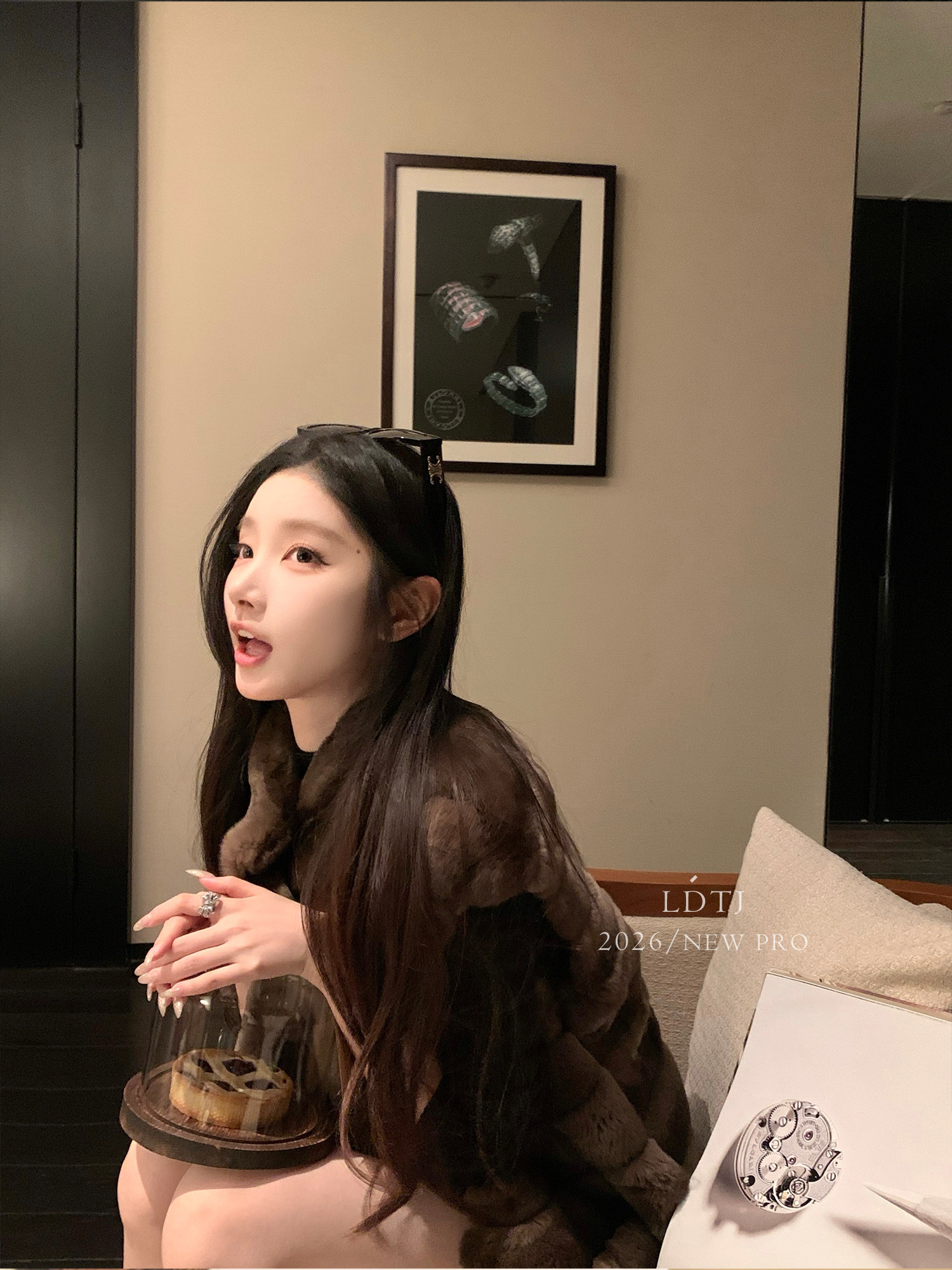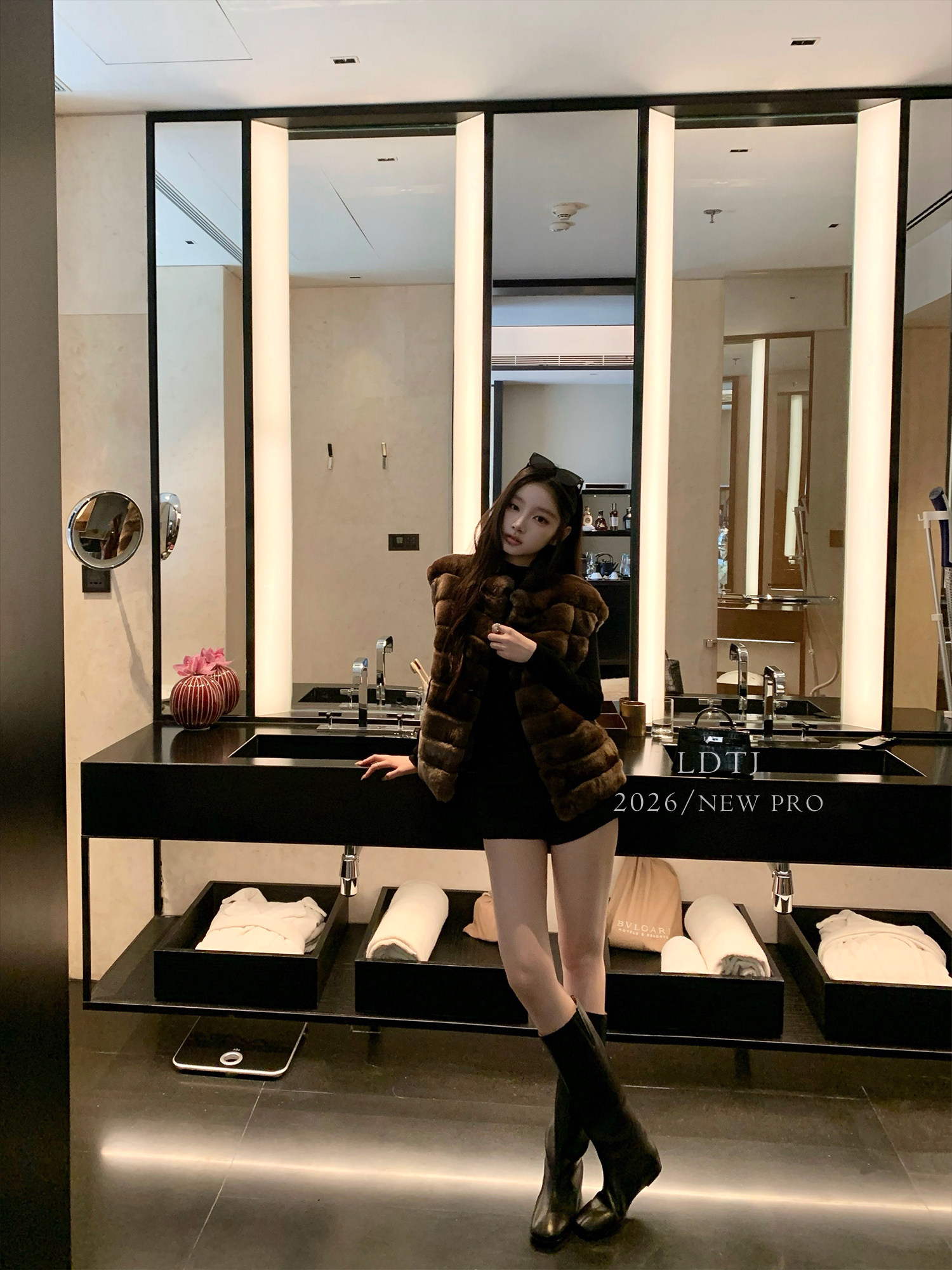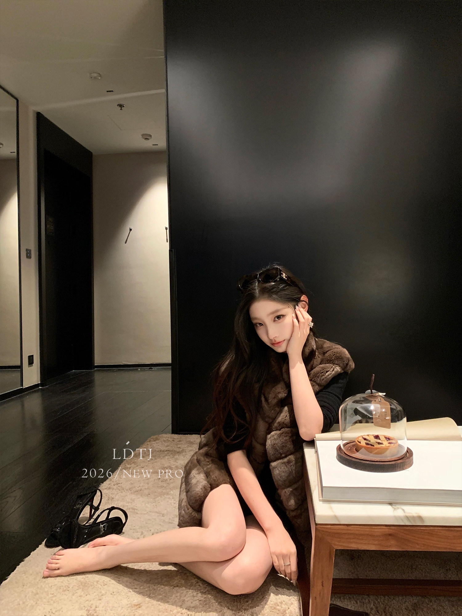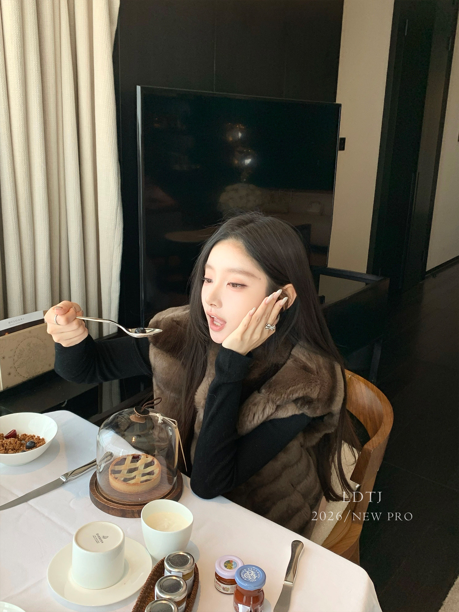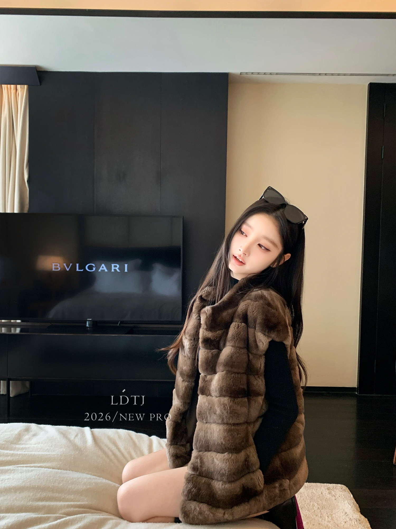 Ldtj Haute Couture "Encounter in Paris" Private Atmosphere Saga-Level Old Money High-Luxury Rex Rabbit Fur Vest Coat