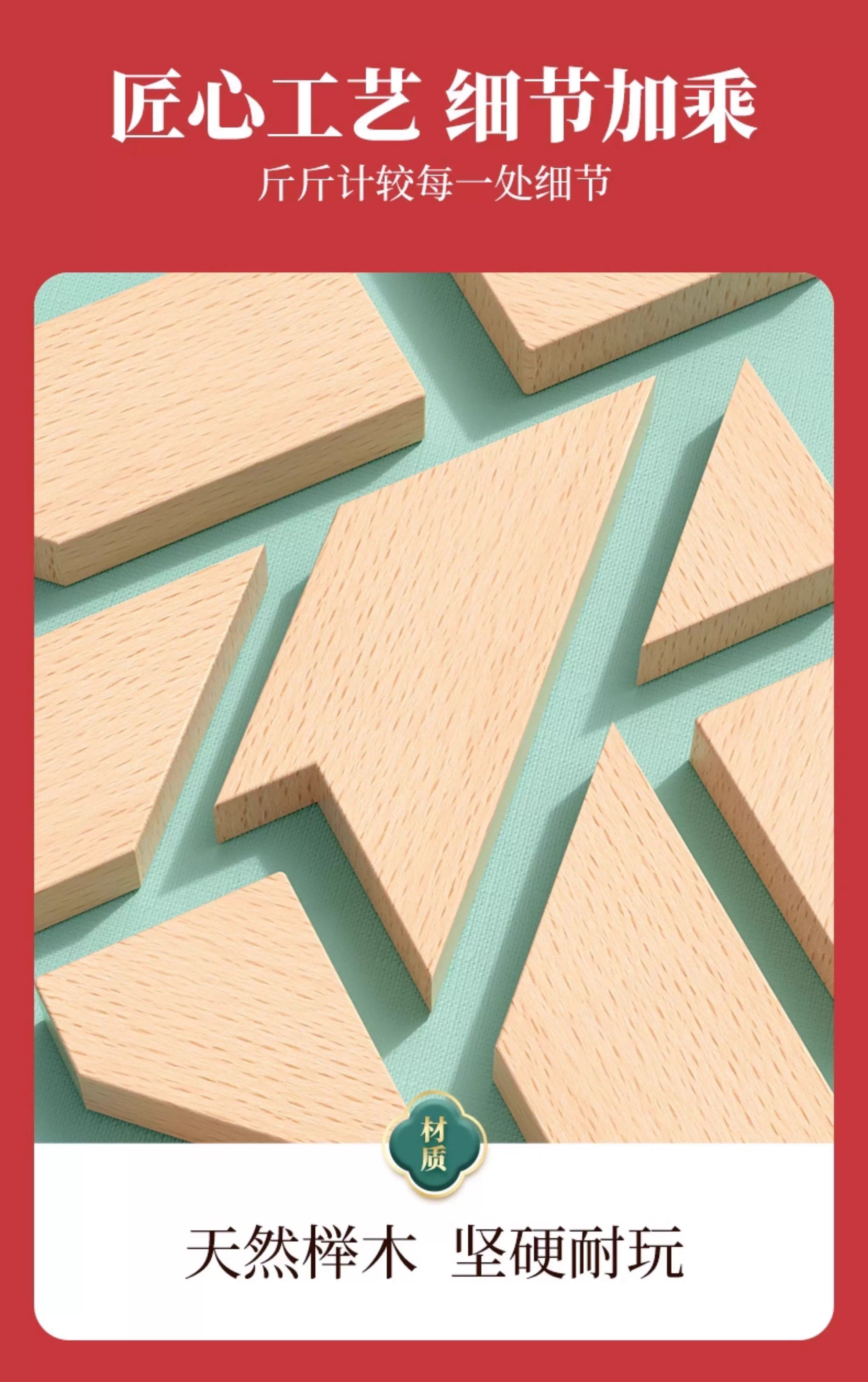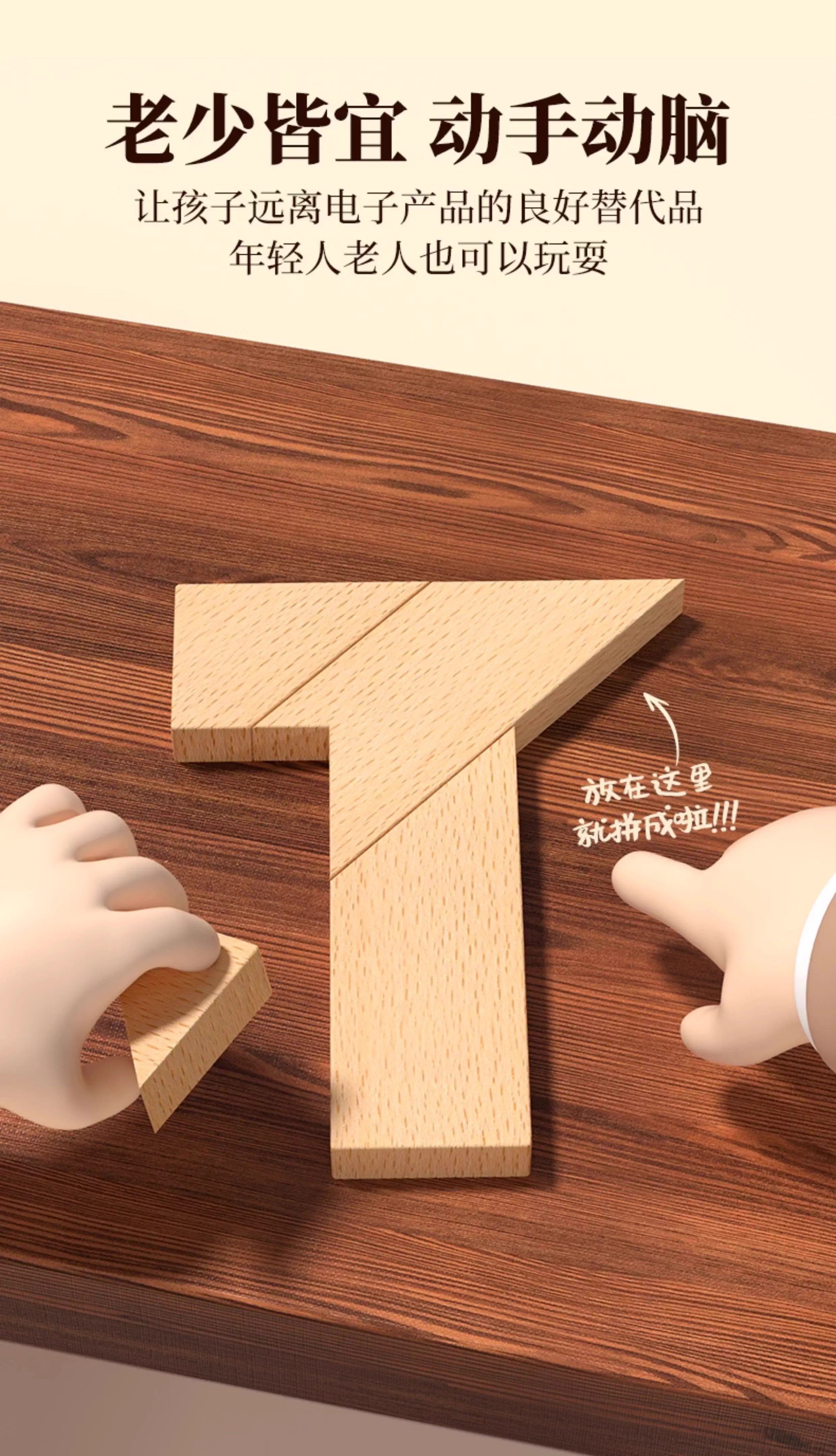 Beech Wood Long Strip T-Shaped Puzzle Four-Piece Jigsaw Puzzle Educational Wooden Puzzle for Adults and Elementary School Students, Recommended by Teachers as Teaching Aids