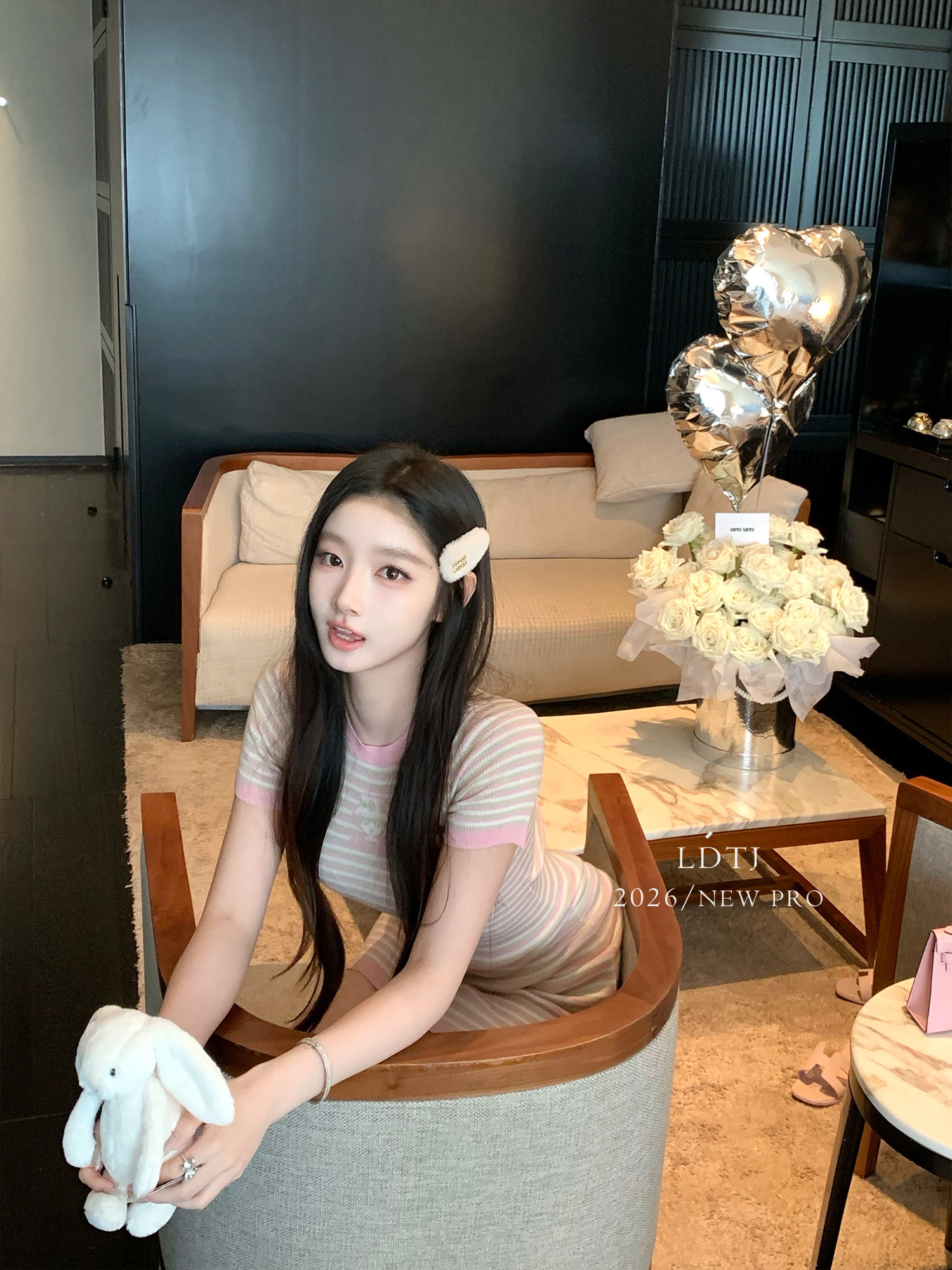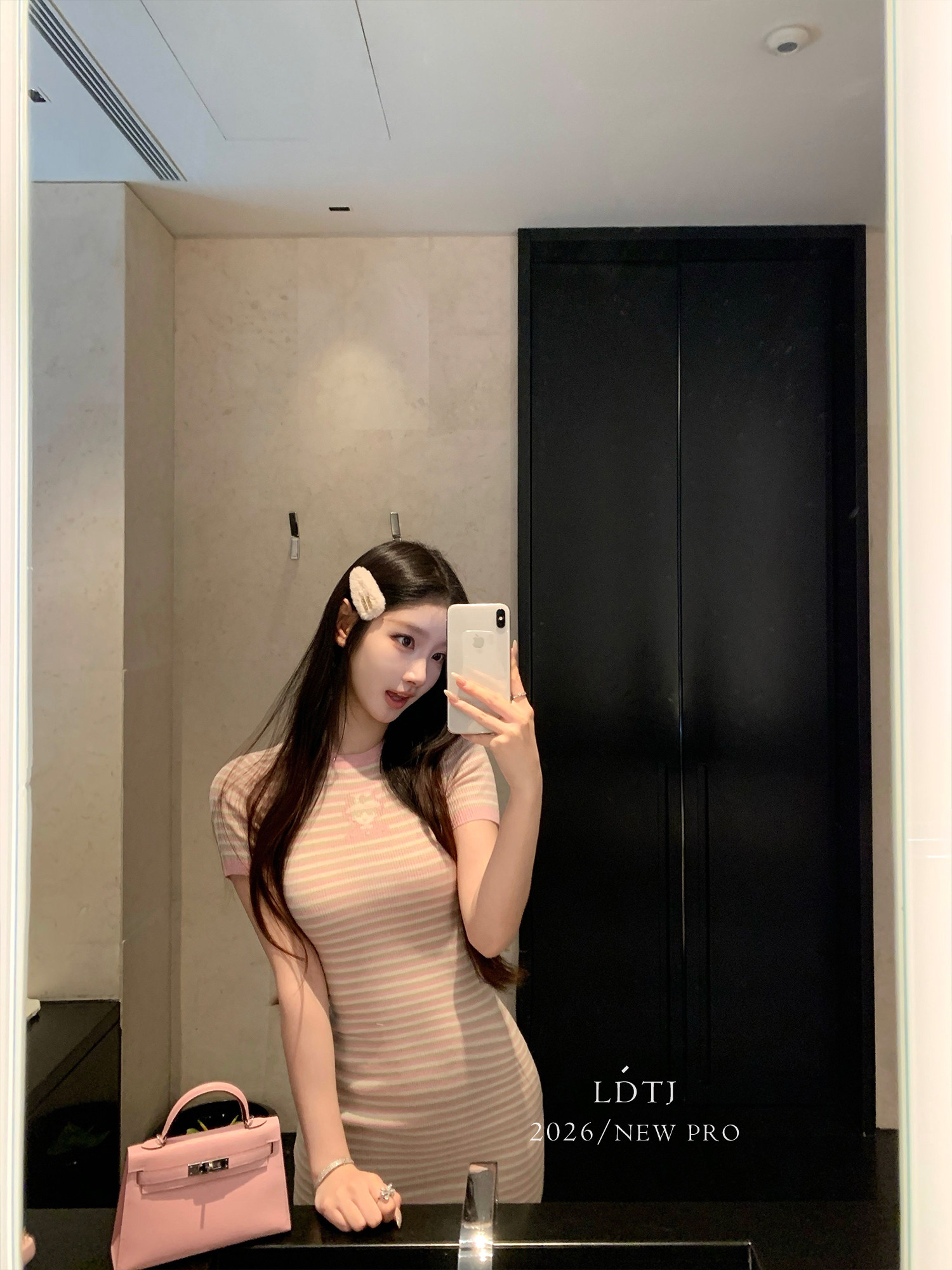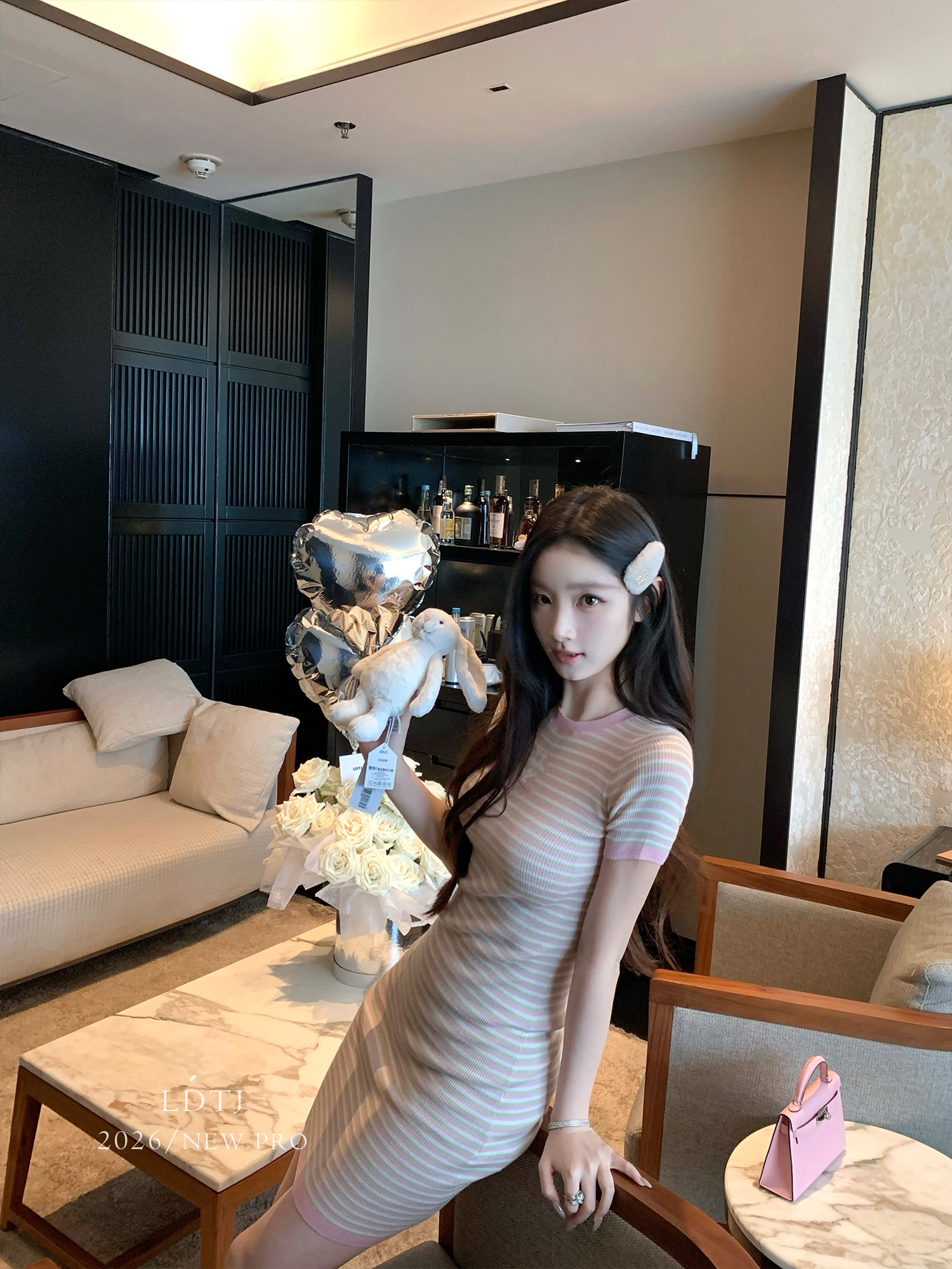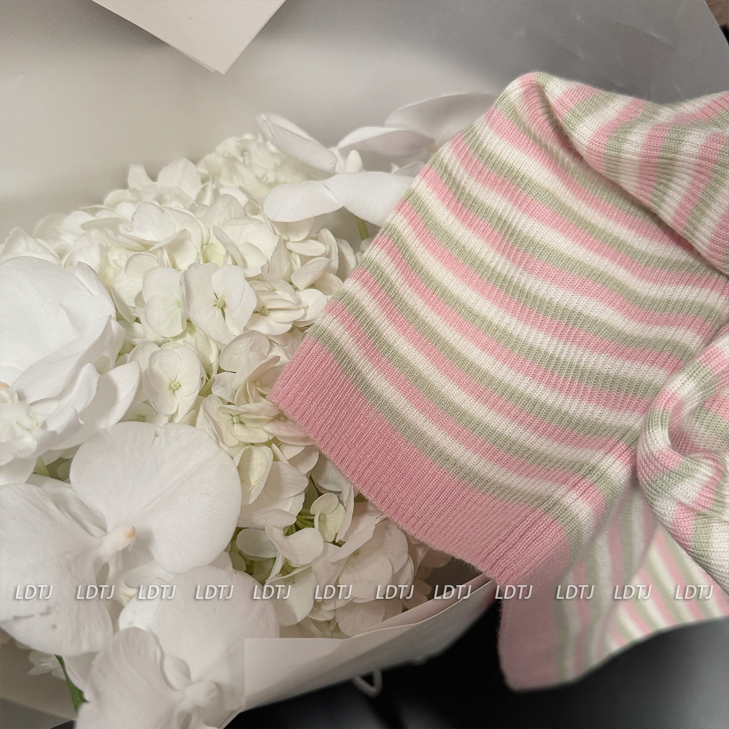 Ldtj Haute Couture "Jenny Candy House" Pink Striped Pure and Girly Chanel-Style Wool Knit Dress