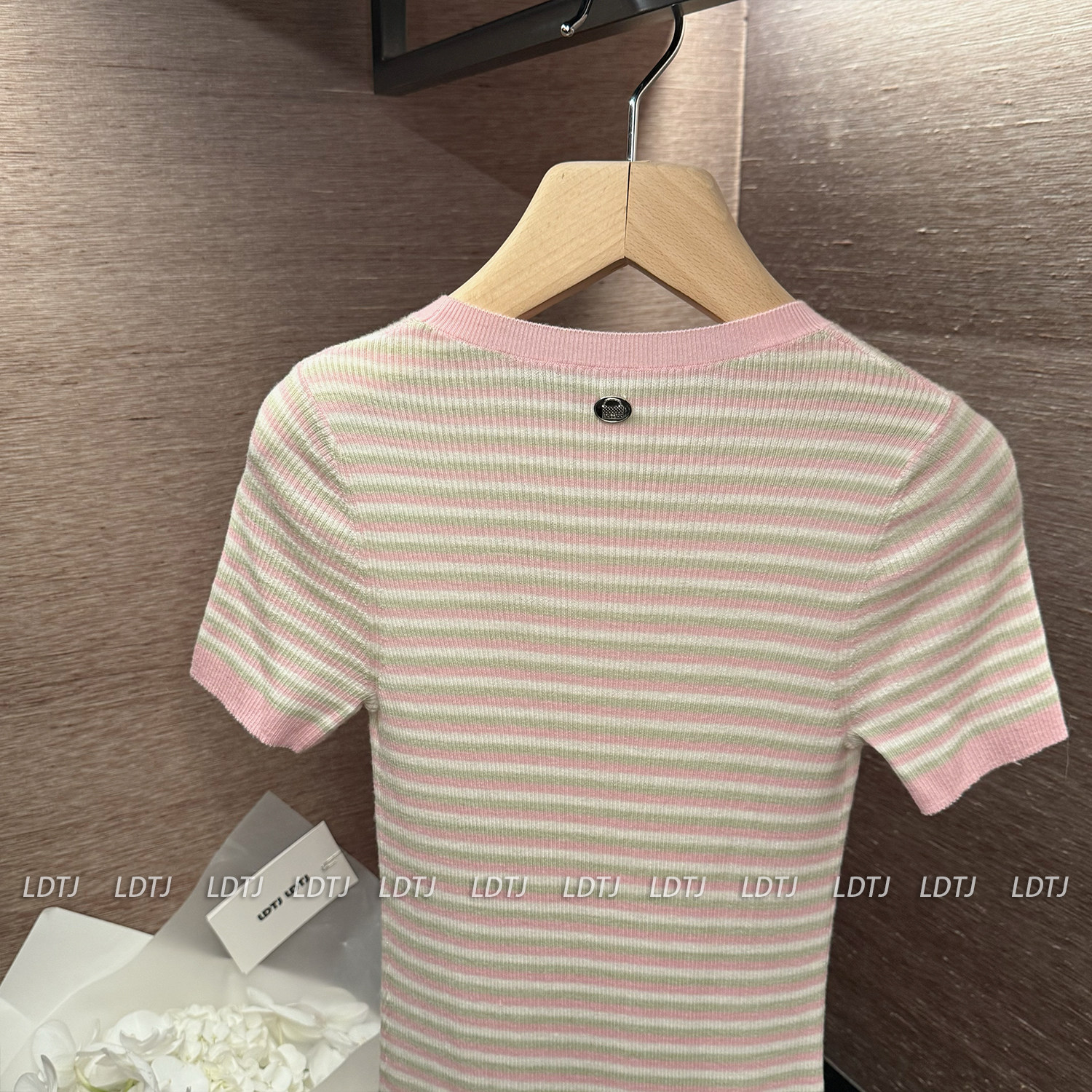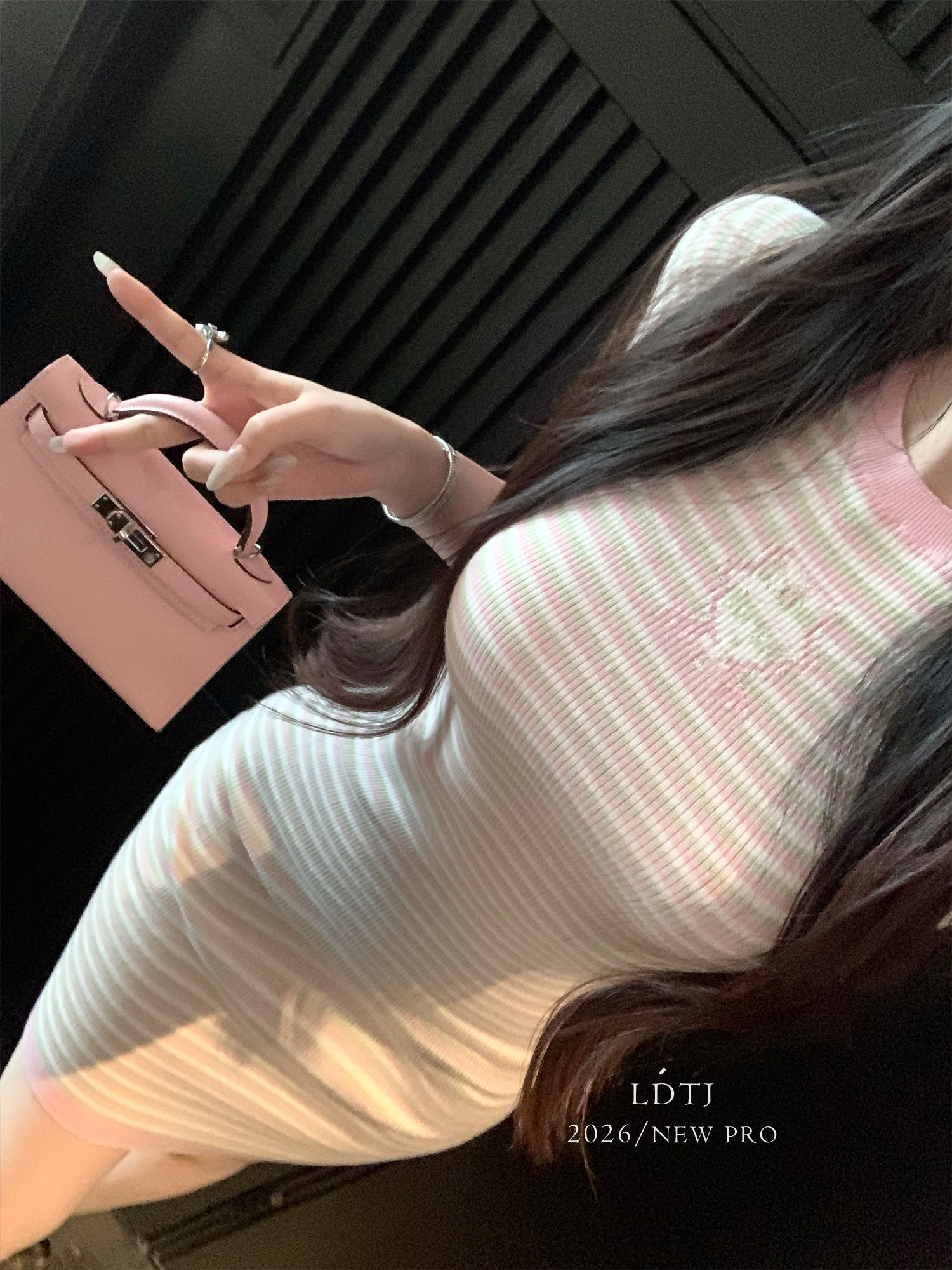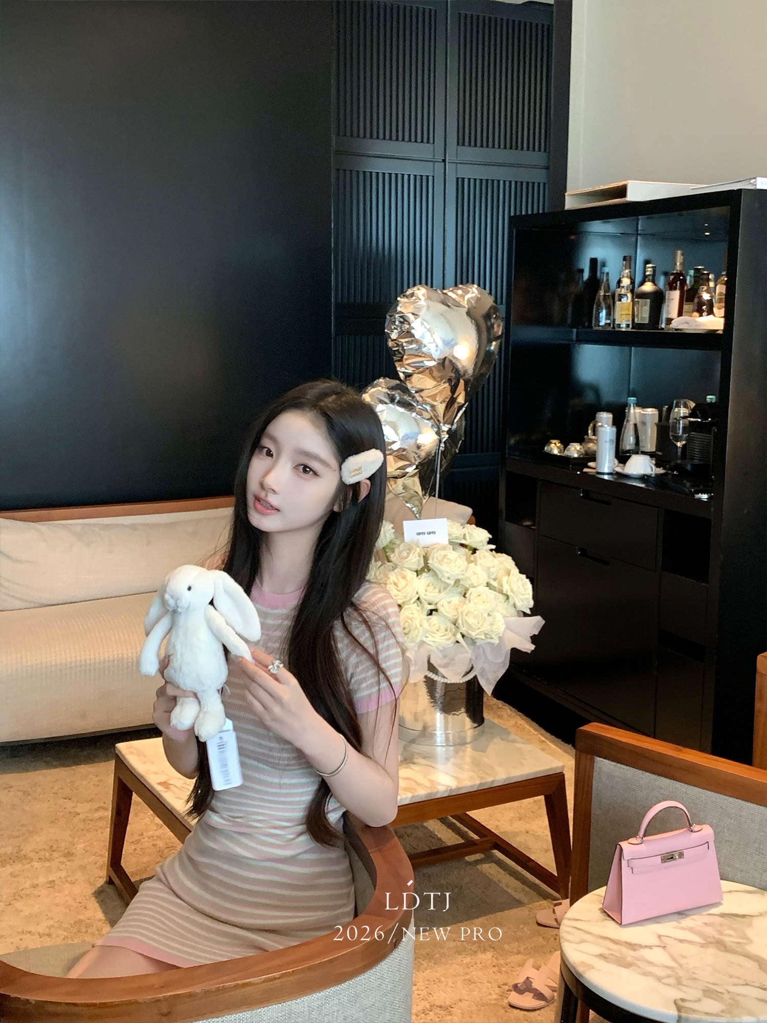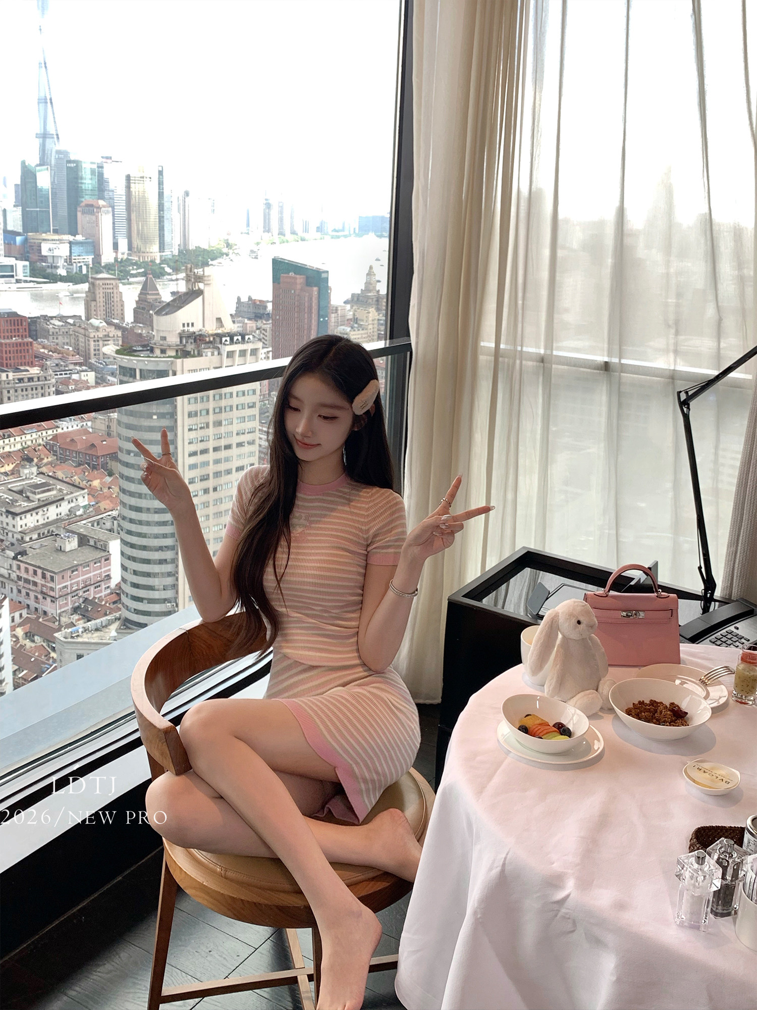 Ldtj Haute Couture "Jenny Candy House" Pink Striped Pure and Girly Chanel-Style Wool Knit Dress