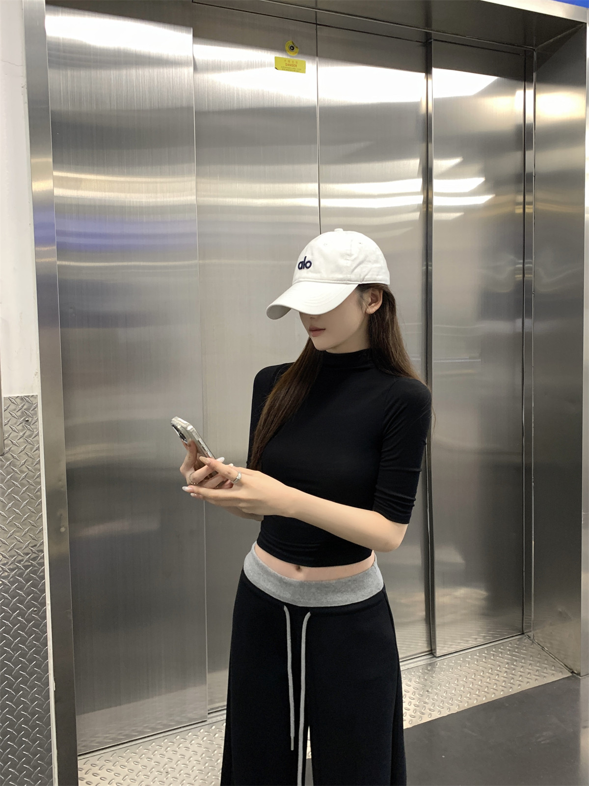 Tight-Fitting Hot Girl Half-High Collar Regular Shoulder Mid-Sleeve T-Shirt for Women, Very Stylish in Autumn, Slim Fit Inner Wear with Five-Quarter Sleeves Base Top
