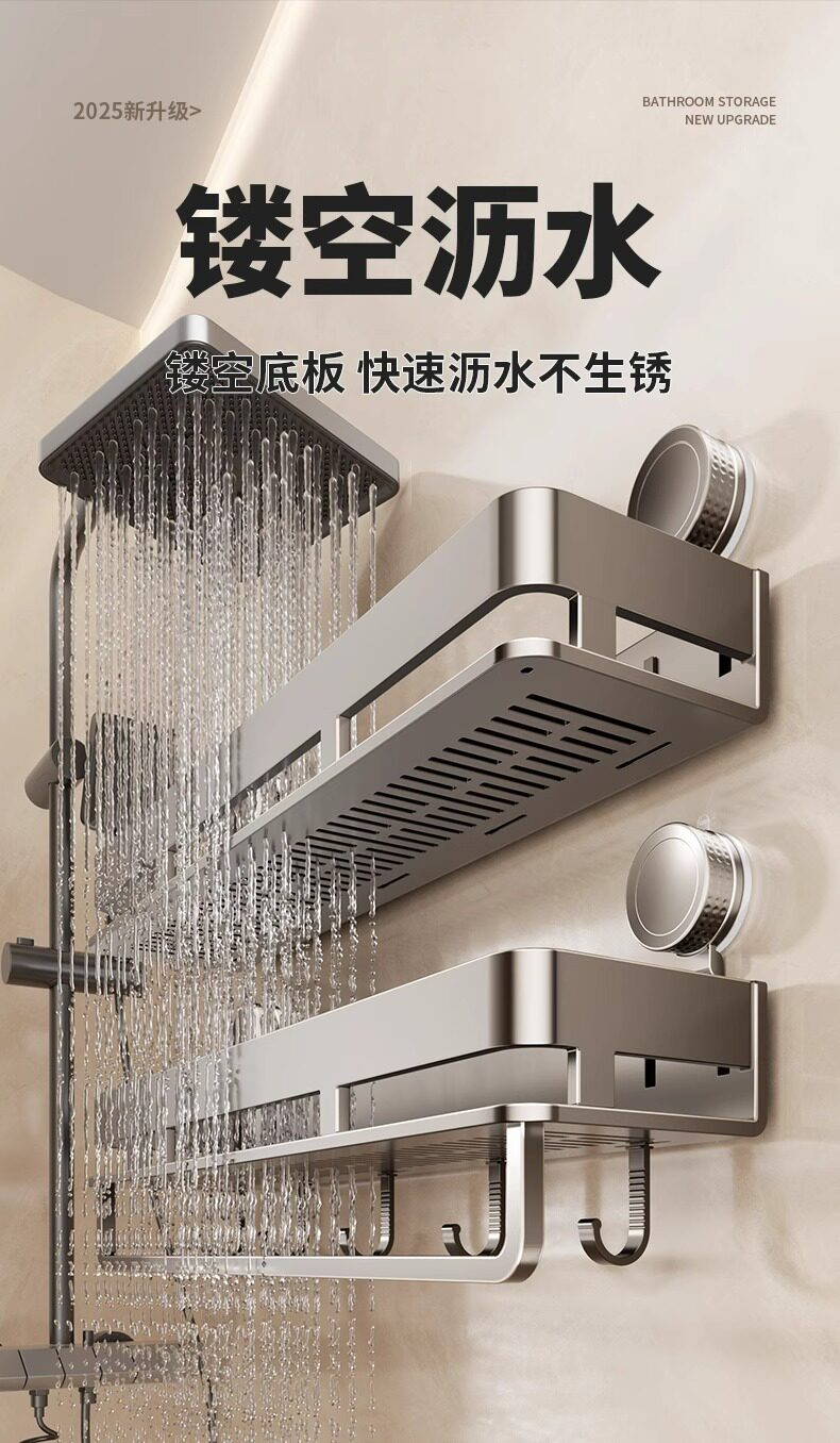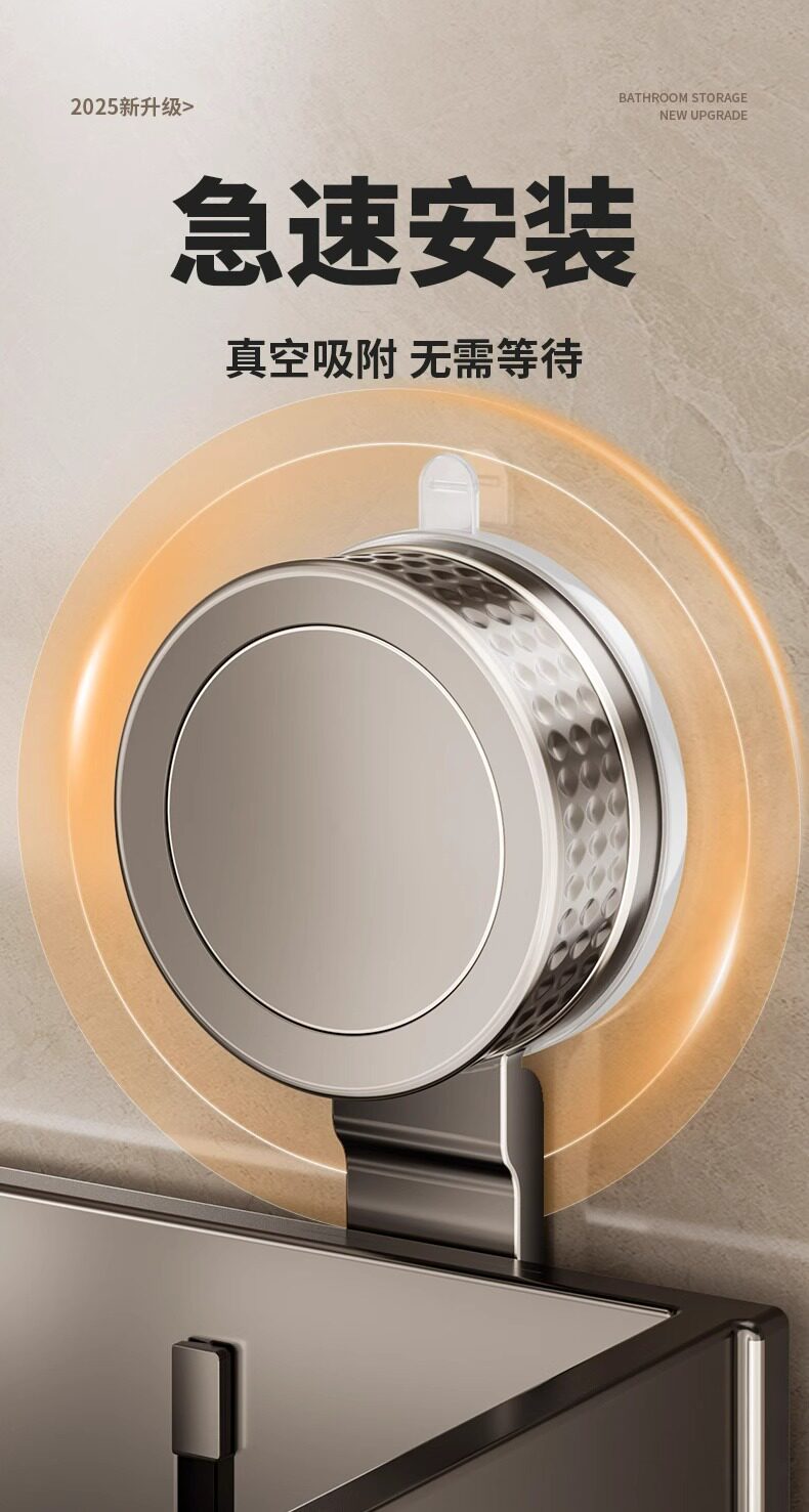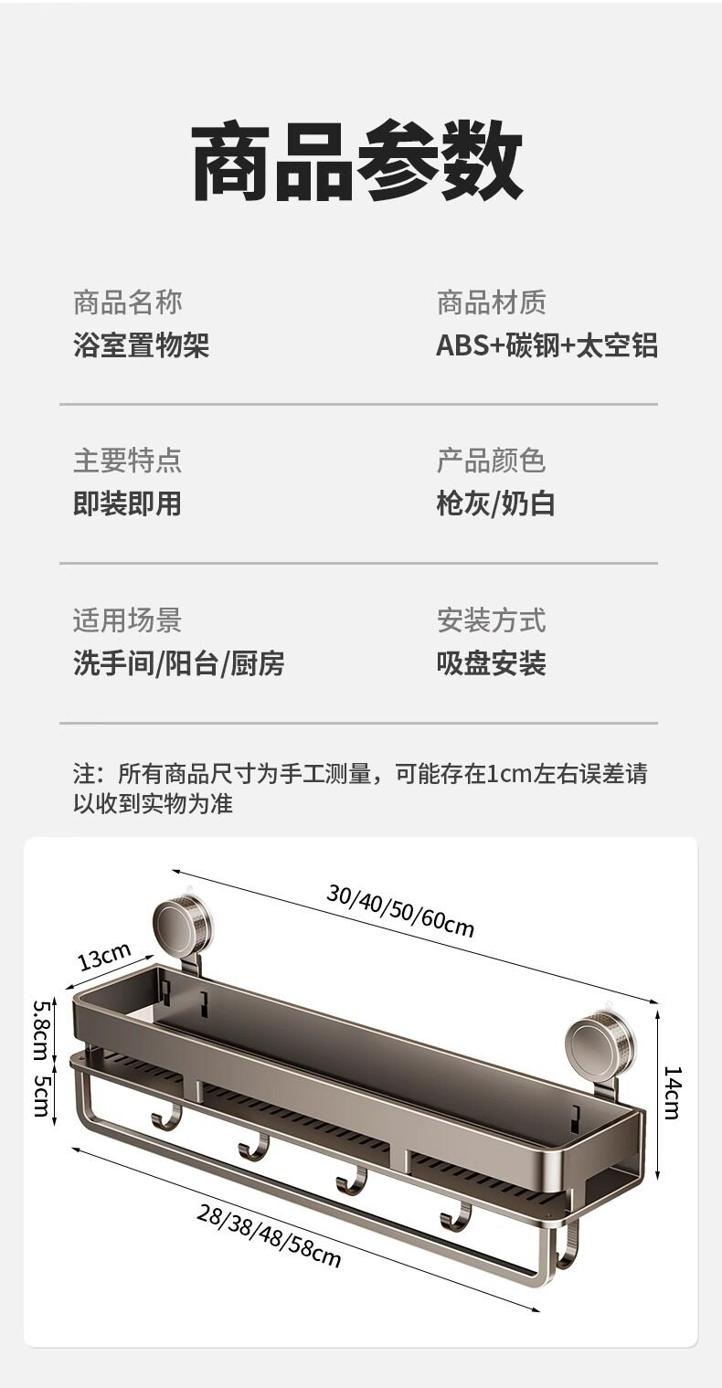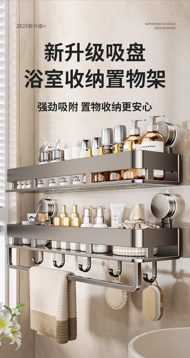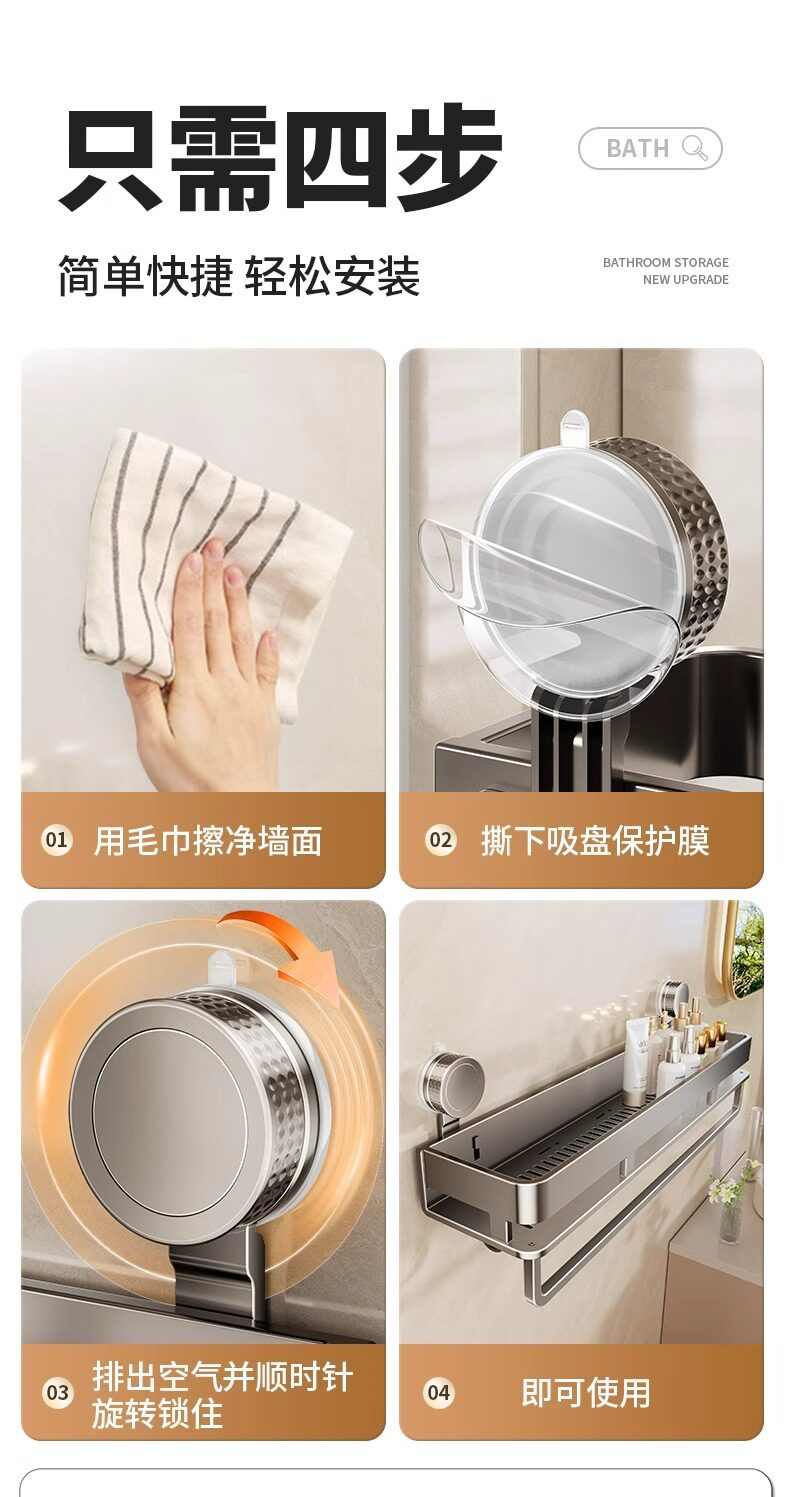 French Ziwoo Bathroom Shelf Suction Cup Rack No-Drill Toilet Washbasin Wall-Mounted Corner Storage