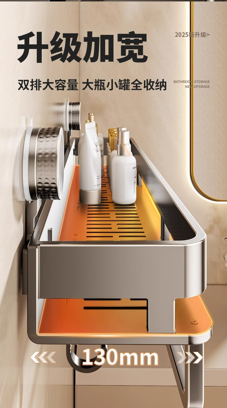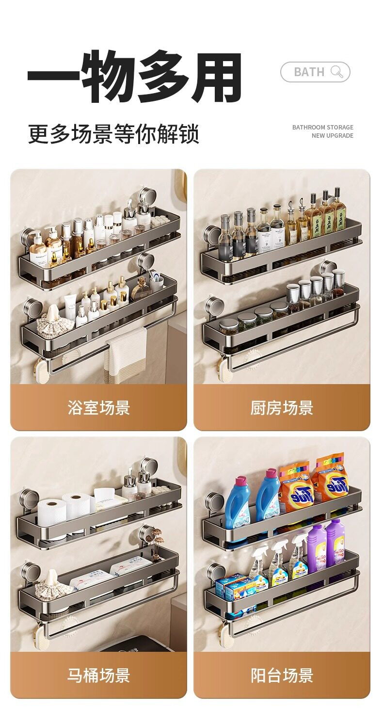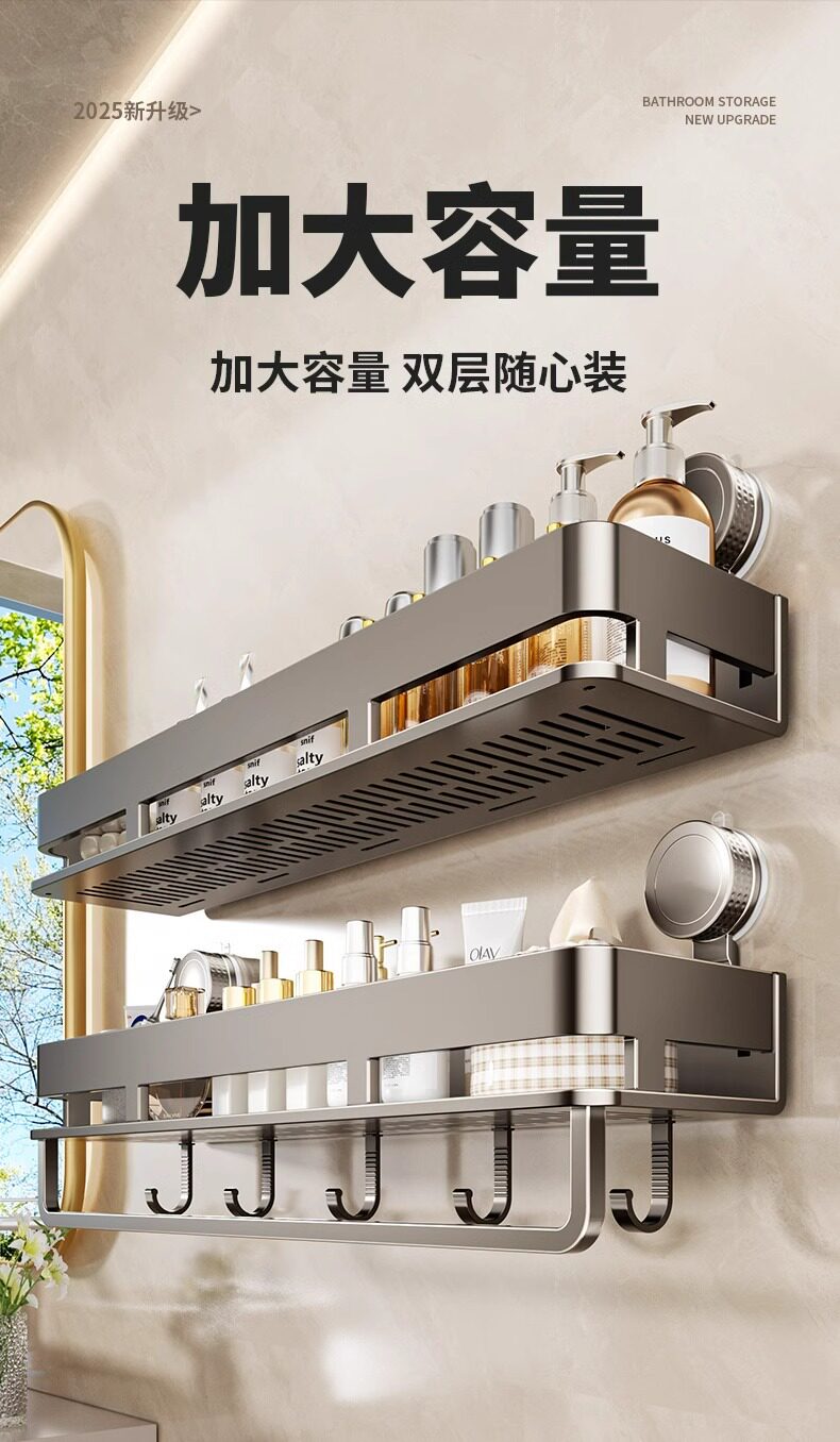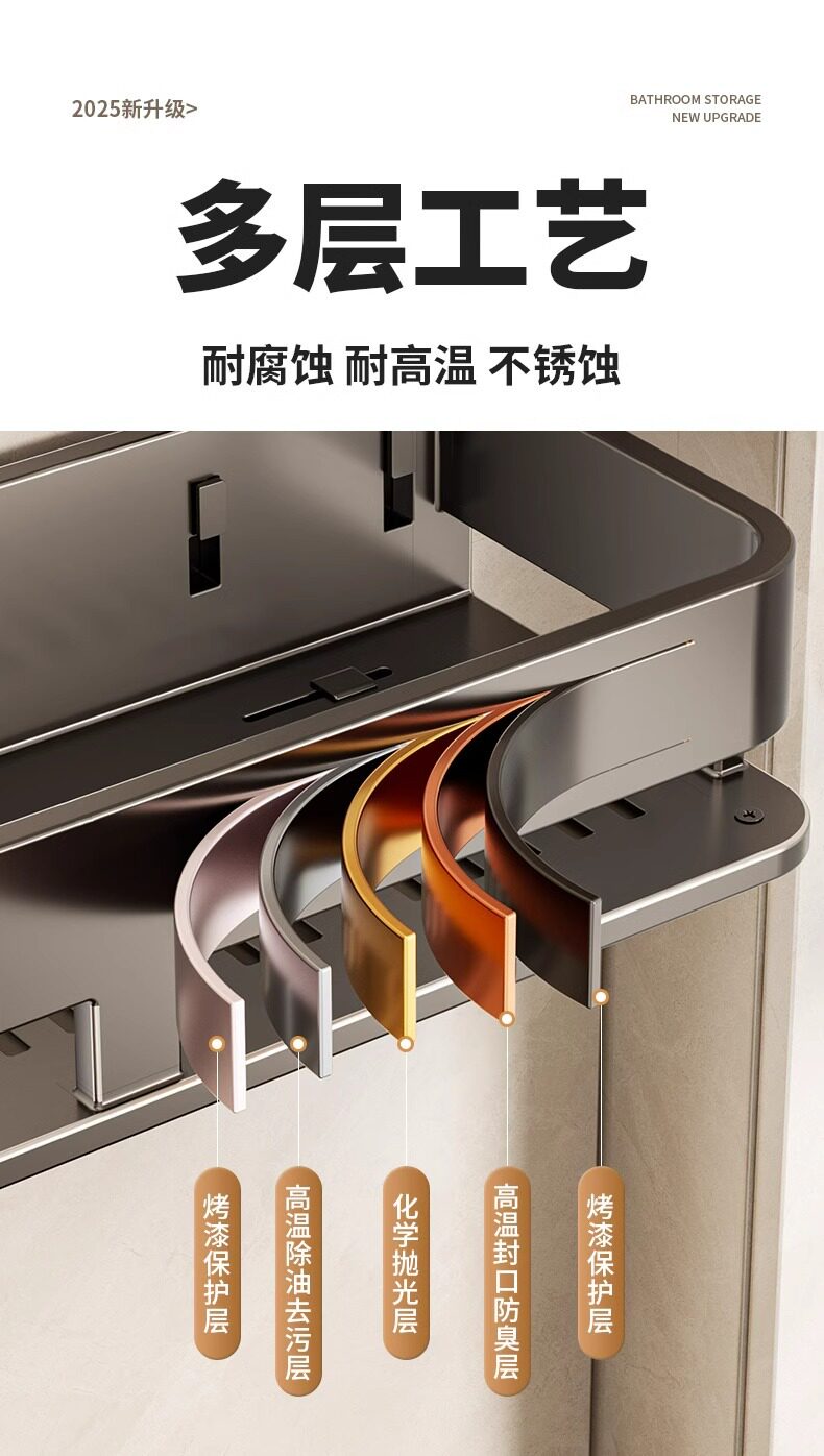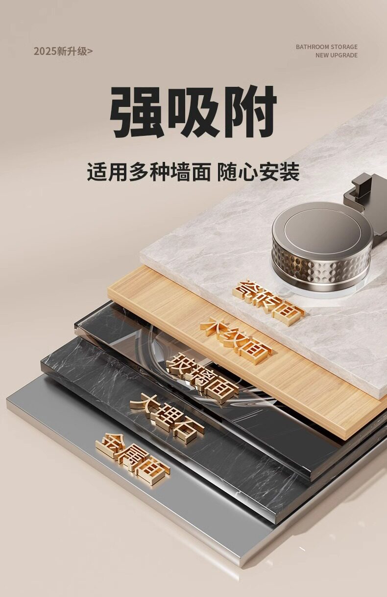 French Ziwoo Bathroom Shelf Suction Cup Rack No-Drill Toilet Washbasin Wall-Mounted Corner Storage