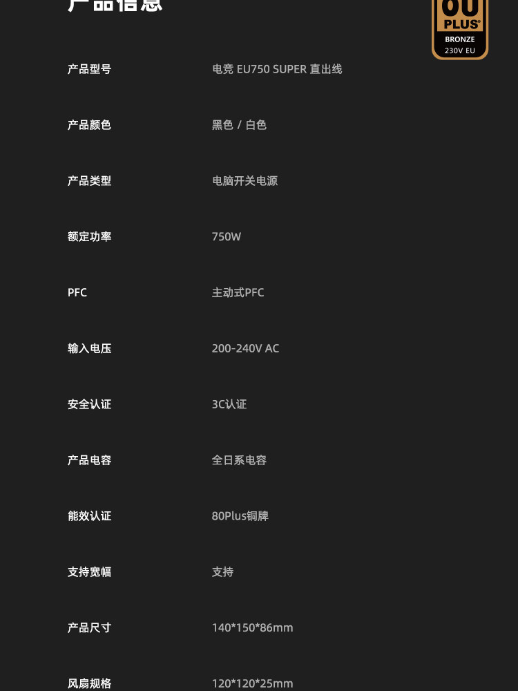 Color Classification Black Eu550W Bronze Direct/Japanese Capacitor,Black Eu650W Copper Medal Direct Output/Japanese Capacitor,White Eu650W Copper Medal Direct Output/Japanese Capacitor,Black Eu750W Bronze Direct/Japanese Capacitor Atx3.1,White Eu750W Copper Medal Direct Output/Japanese Capacitor Atx3.1,Black Eu850W Bronze Direct/Japanese Capacitor Atx3.1,White Eu850W Copper Medal Direct Output/Japanese Capacitor Atx3.1