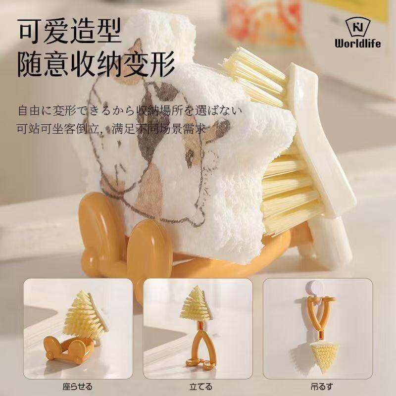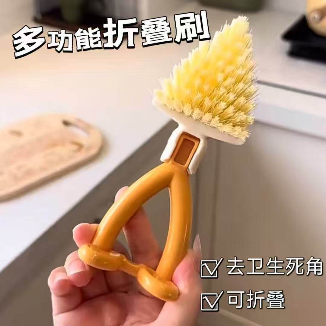 Household brushing Japanese soft-bristled foldable decontamination kitchen short-handled stove cleaning brush gap brush multi-function brush