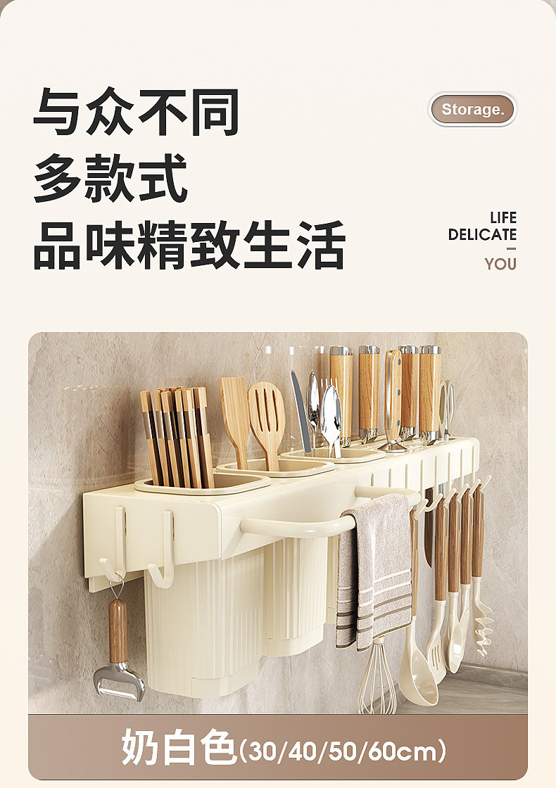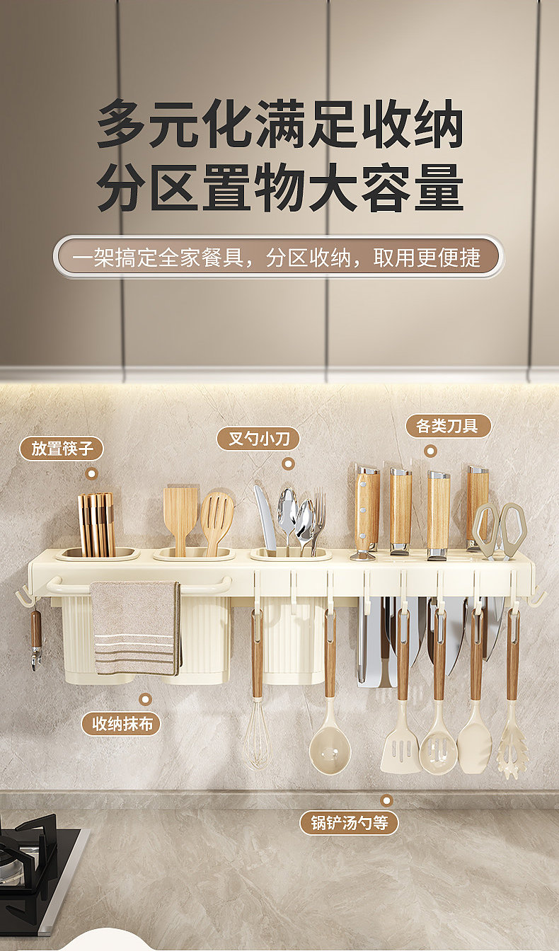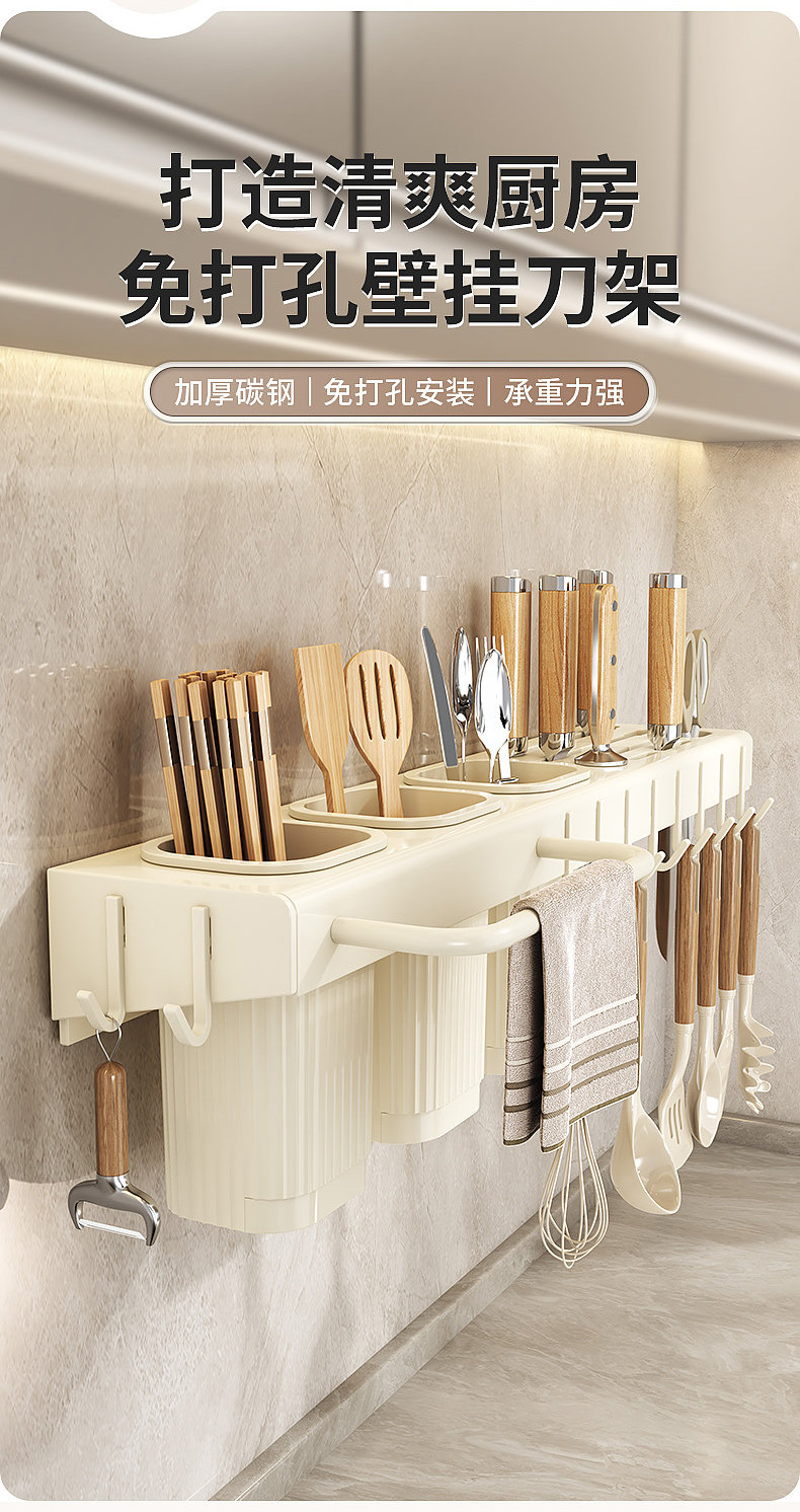 Multifunctional knife holder kitchen knife supplies storage rack wall-mounted punch-free chopstick cage integrated storage rack chopstick barrel