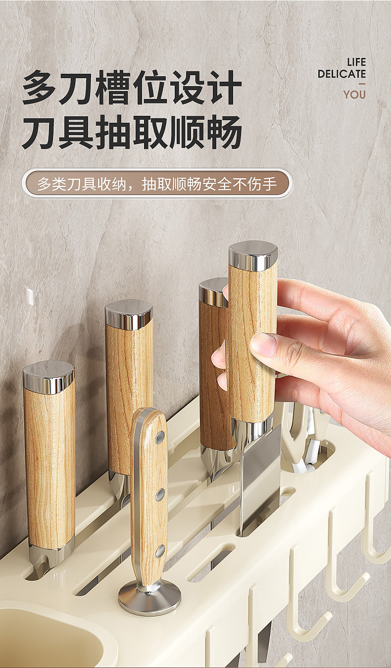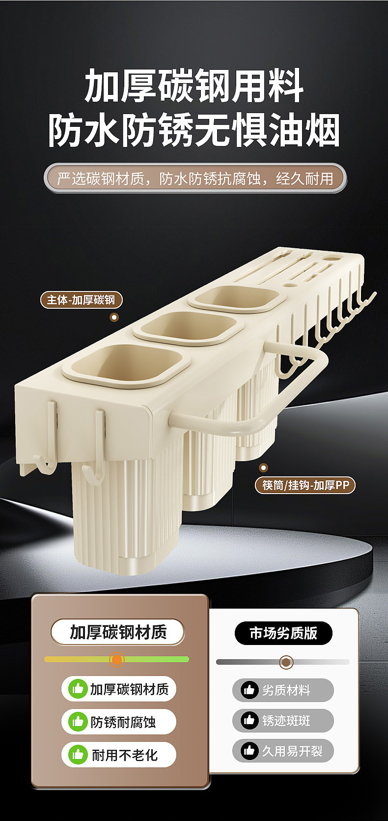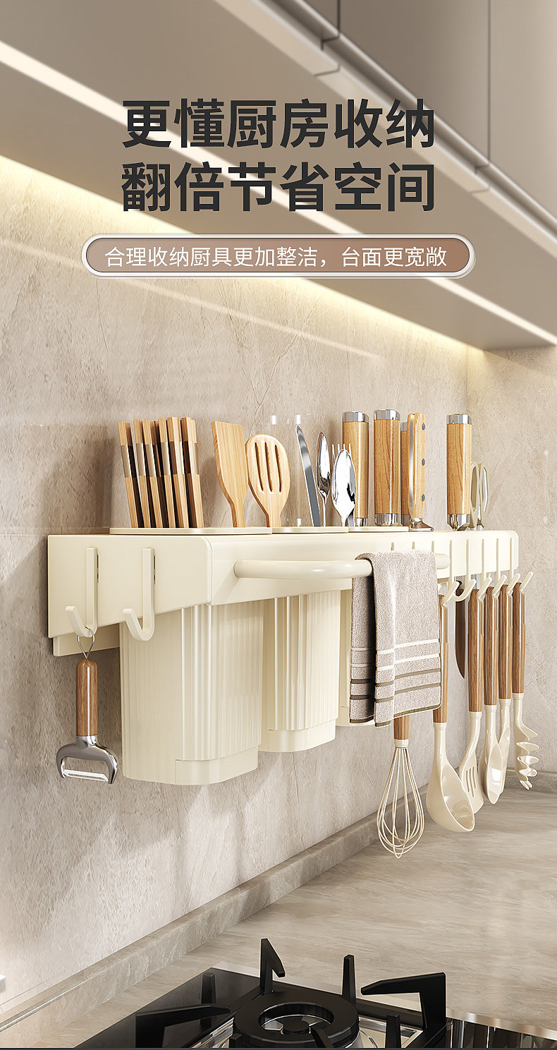 Multifunctional knife holder kitchen knife supplies storage rack wall-mounted punch-free chopstick cage integrated storage rack chopstick barrel