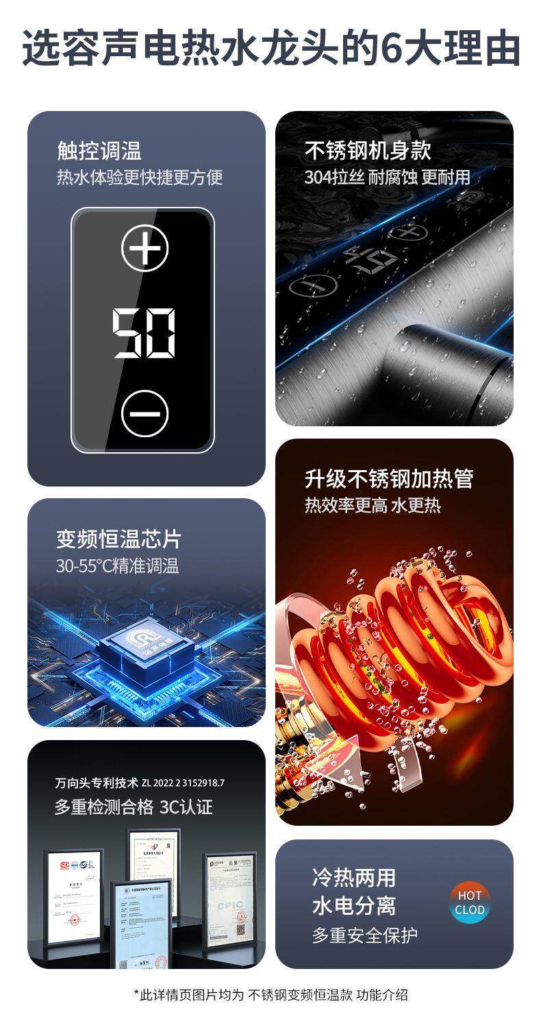 Rongsheng Electric Hot Water Faucet, Instant Heating, Kitchen Appliance, Fast Constant Temperature Water Heater, Household Dual-Use for Hot and Cold Water